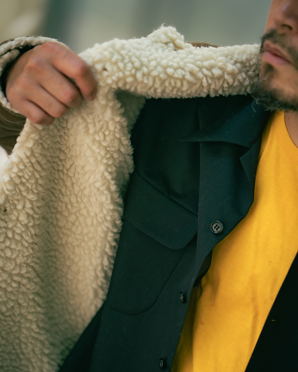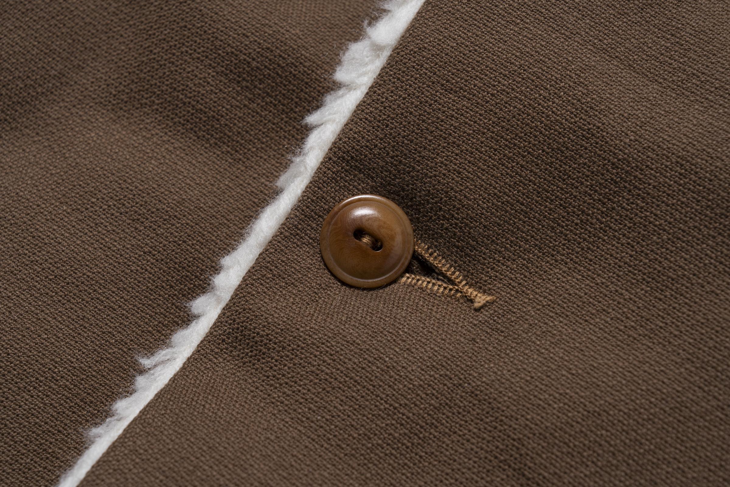당시의 많은 랜치 코트가 아크릴 안감 을 사용했던 것과 달리, 본 제품은 100% 울 라이닝 을 적용하여 묵직한 질감과 함께 탁월한 보온성 을 자랑합니다.