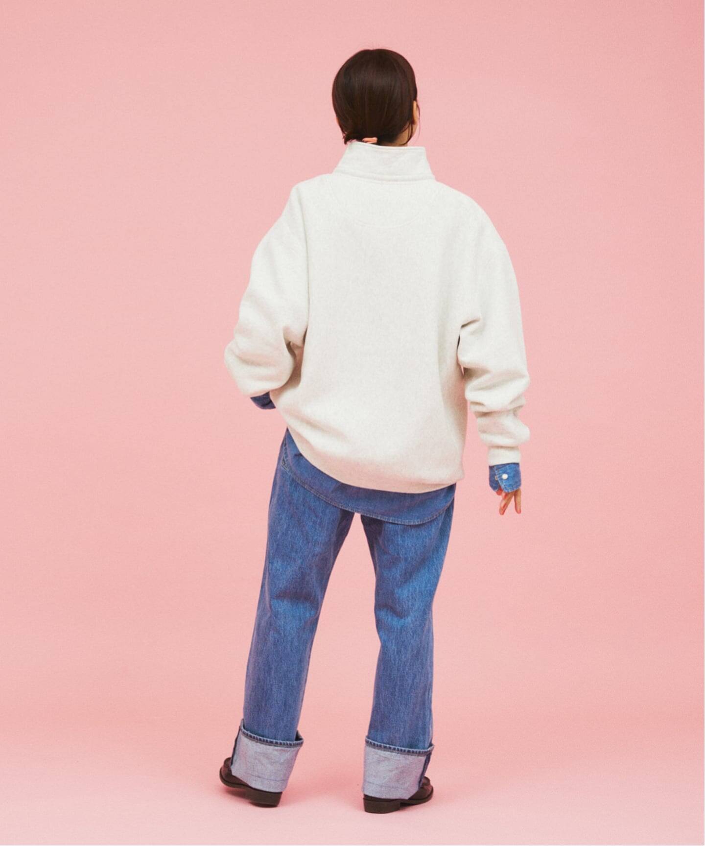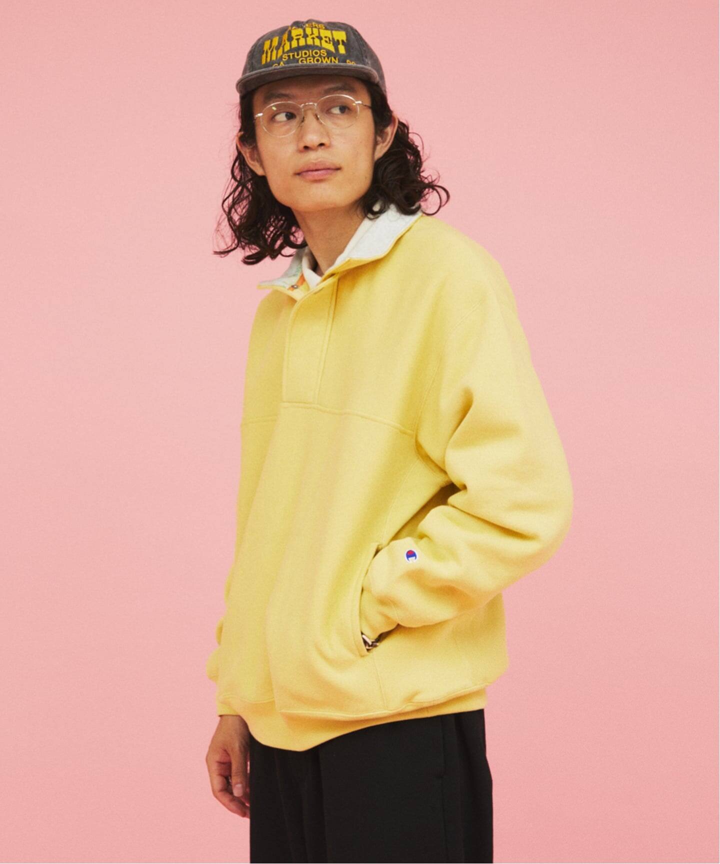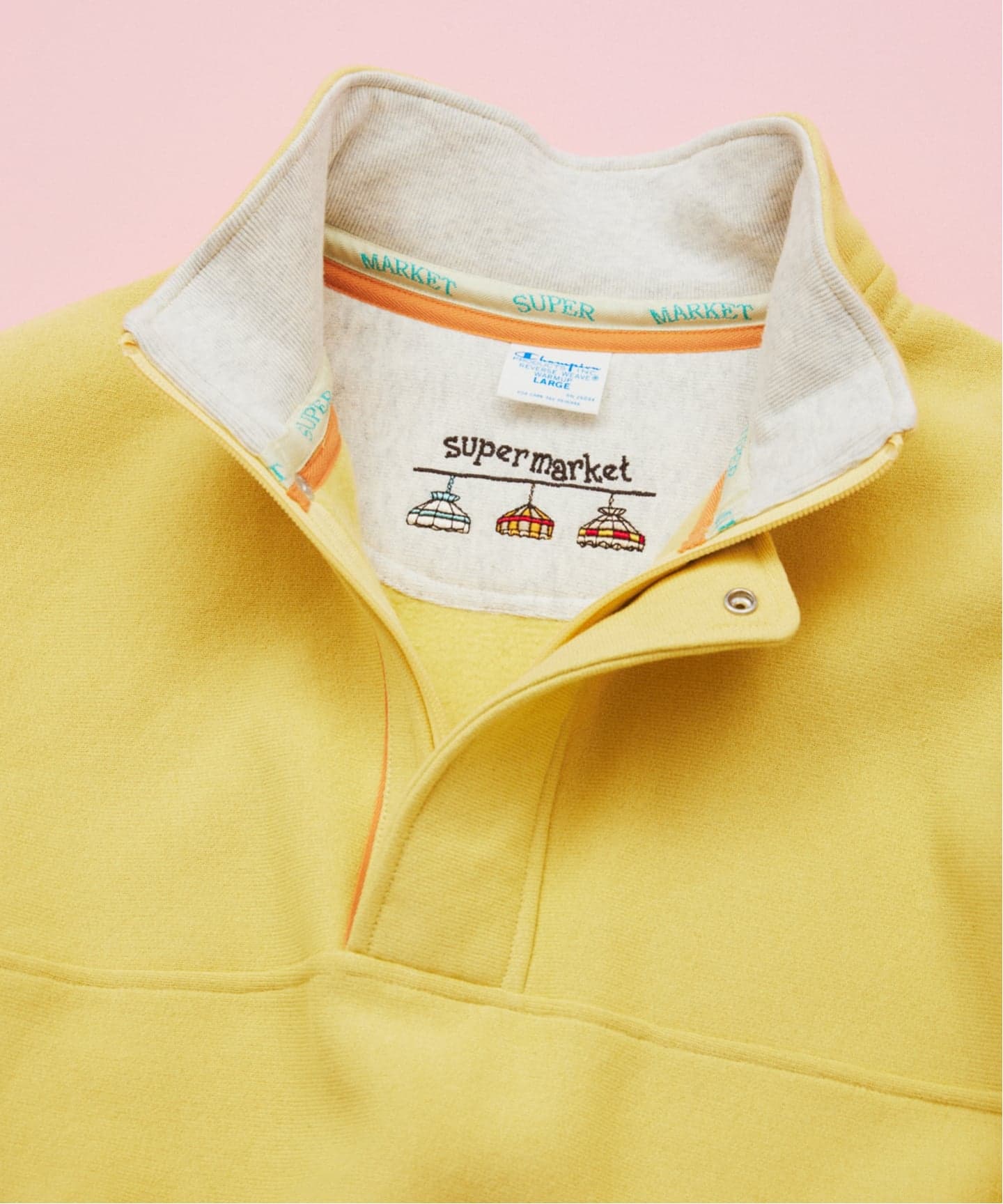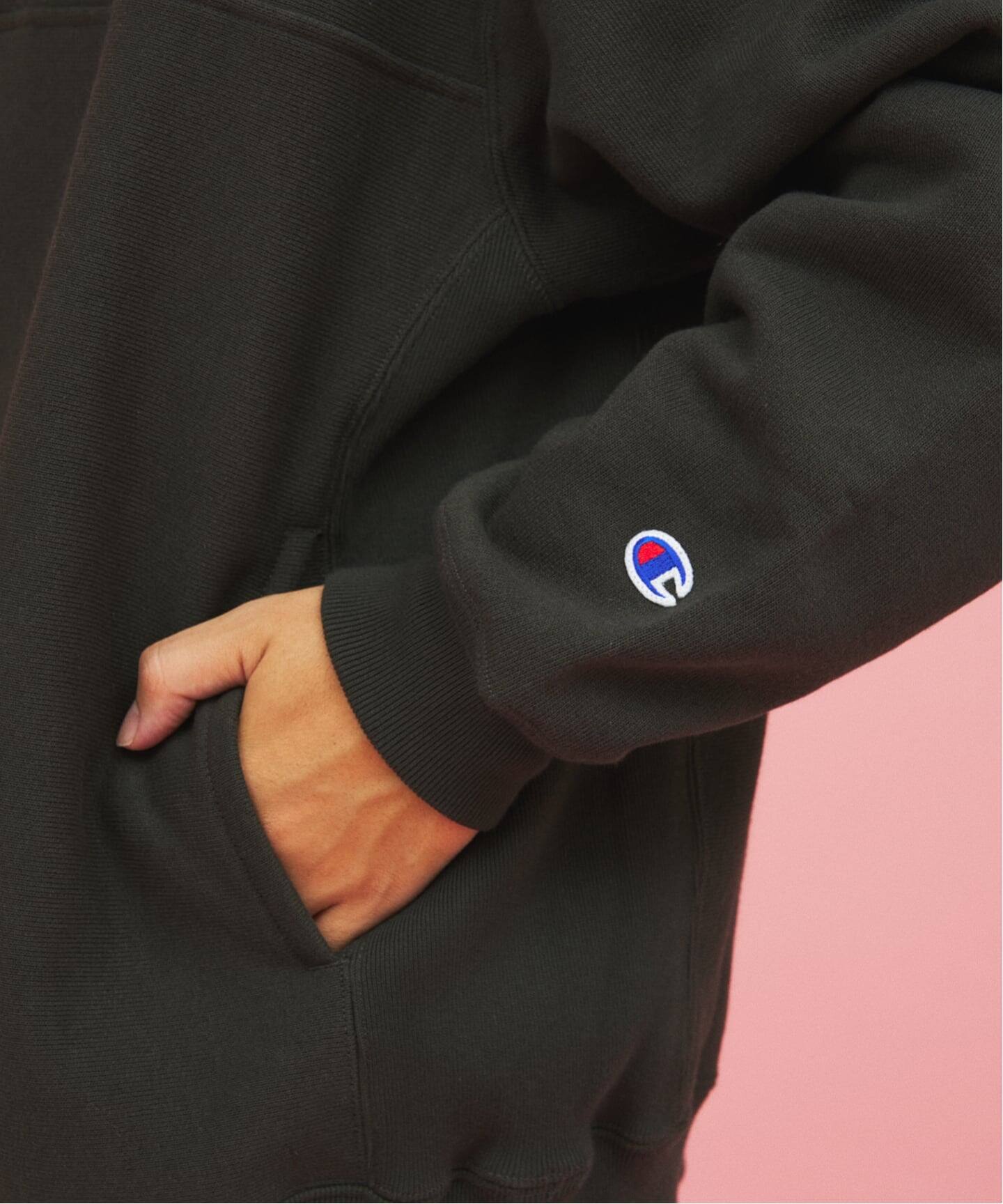 멕시코인이 모이는 잡다한 중고품에서 우연히 발견한 한 점이 이 디자인의 모티브입니다. 베이스는 Champion의 클래식한 리버스 위브입니다. 로고 등의 장식은 최소화하고, 내부에는 스테인드글라스 조명을 연상시키는 자수와 오리지널 테이프를 더했습니다.