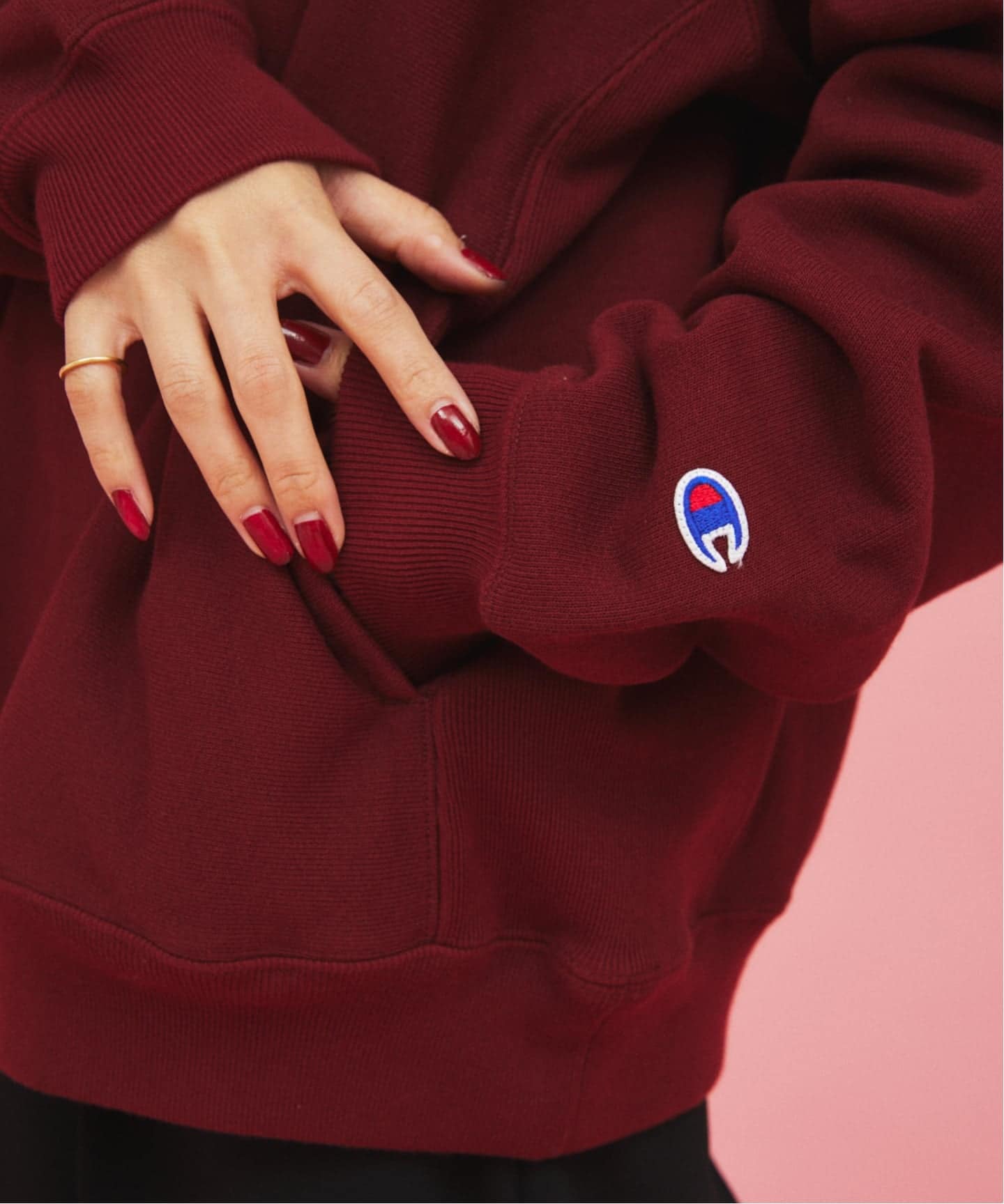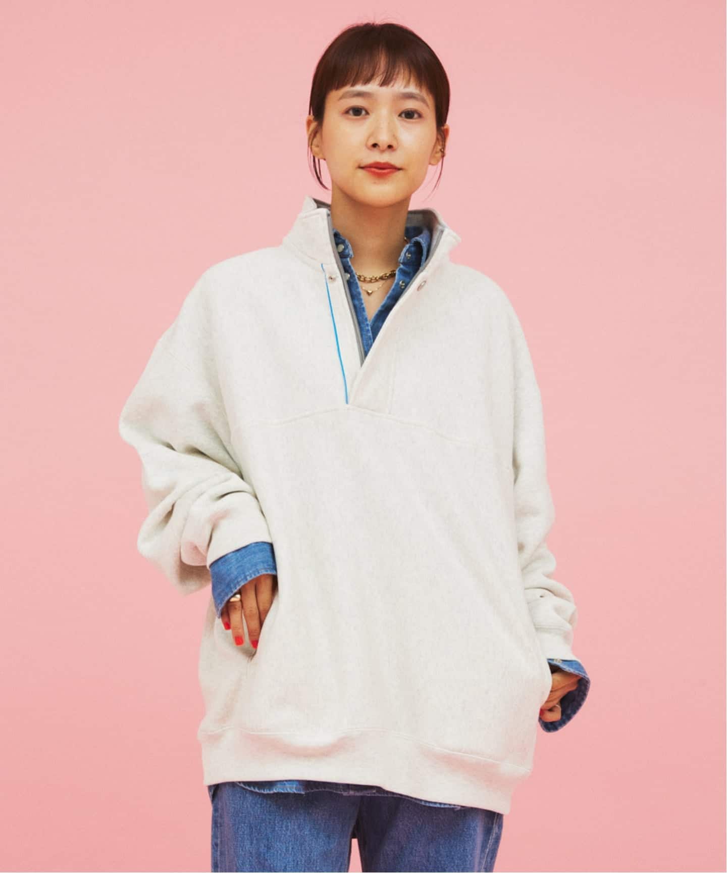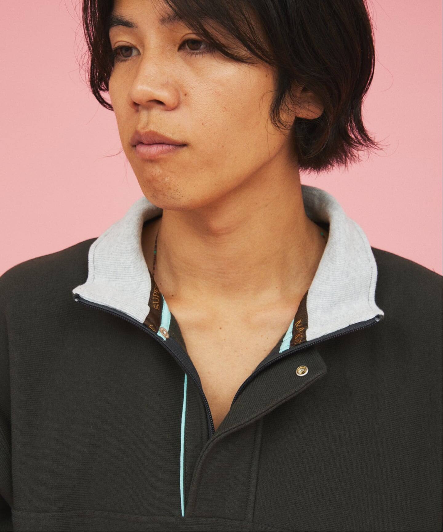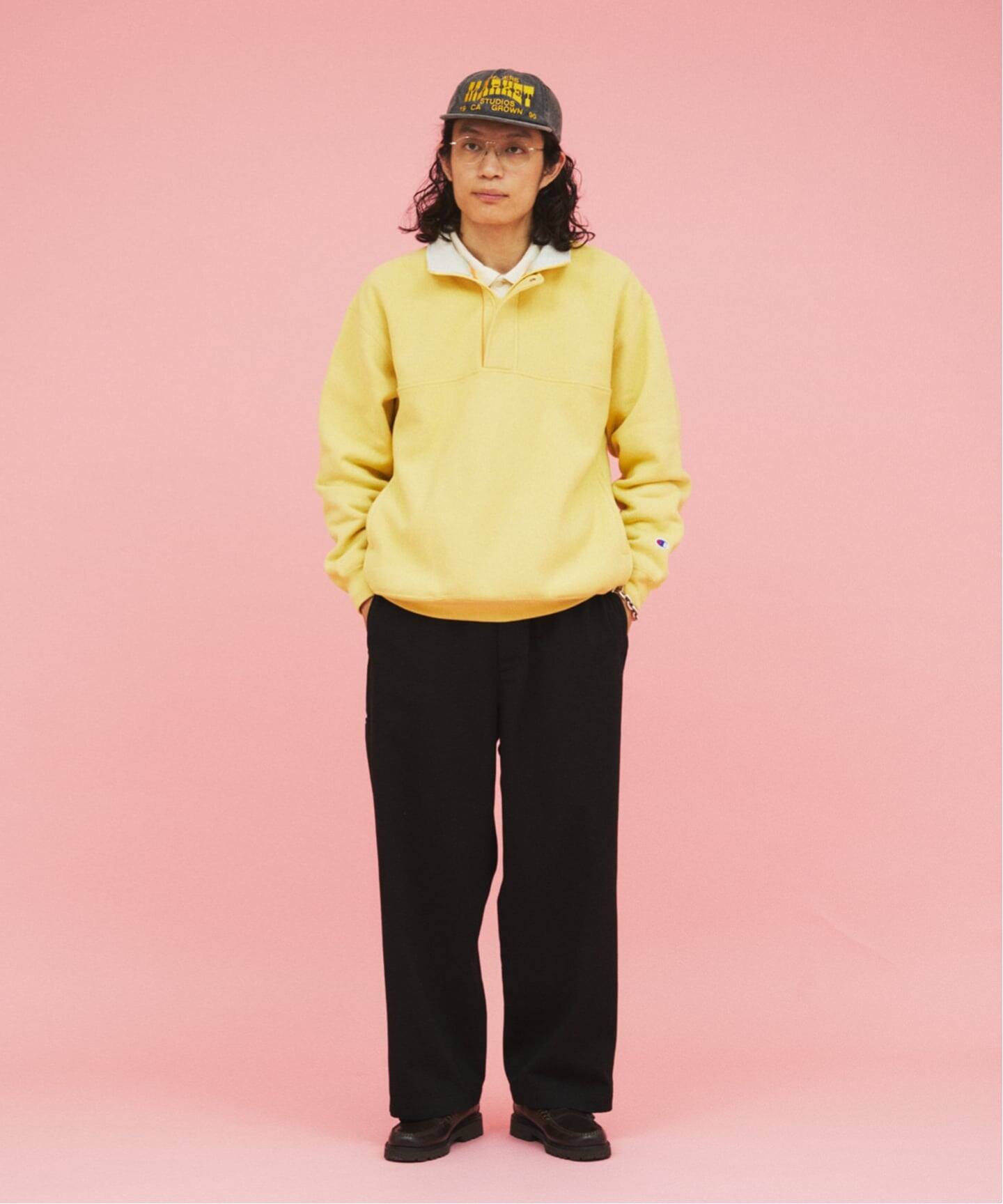 멕시코인이 모이는 잡다한 중고품에서 우연히 발견한 한 점이 이 디자인의 모티브입니다. 베이스는 Champion의 클래식한 리버스 위브입니다. 로고 등의 장식은 최소화하고, 내부에는 스테인드글라스 조명을 연상시키는 자수와 오리지널 테이프를 더했습니다.