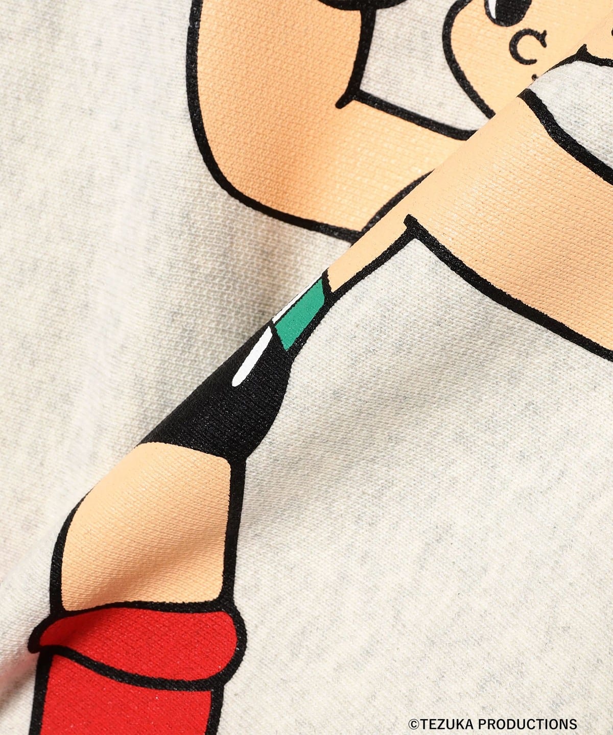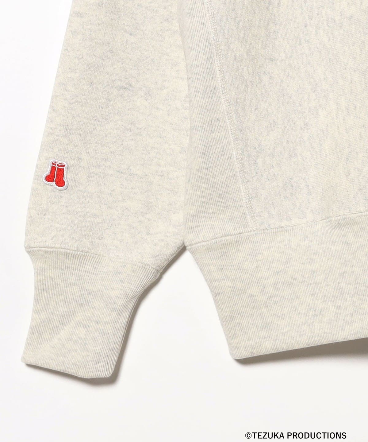 만화의 주인공 ‘아톰’이 ‘챔피언’의 대명사인 ‘리버스 위브(R)’의 스웨트 뒷면에 프린트되어 있습니다. 또, 프런트는 「ASTROBOY」의 이미지와 컬리지 로고를 디자인하고 있어, 오른쪽 소매에는 「ASTROBOY」가 착용하고 있는 부츠의 패치가 있습니다. 폭과 어깨가 넉넉한 릴렉스한 핏입니다. 11.5oz 소재로 탄력 있는 원단감이 특징입니다.