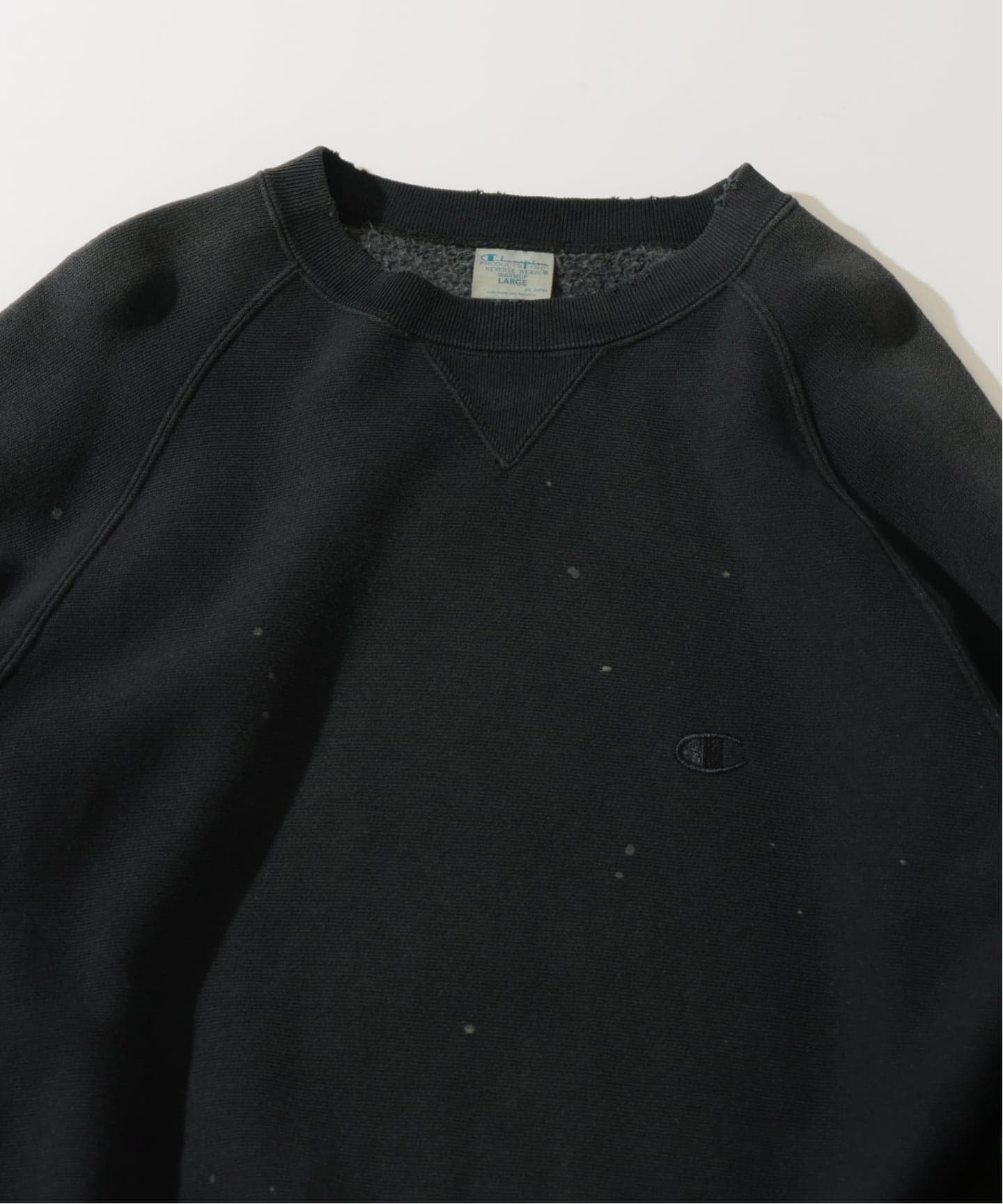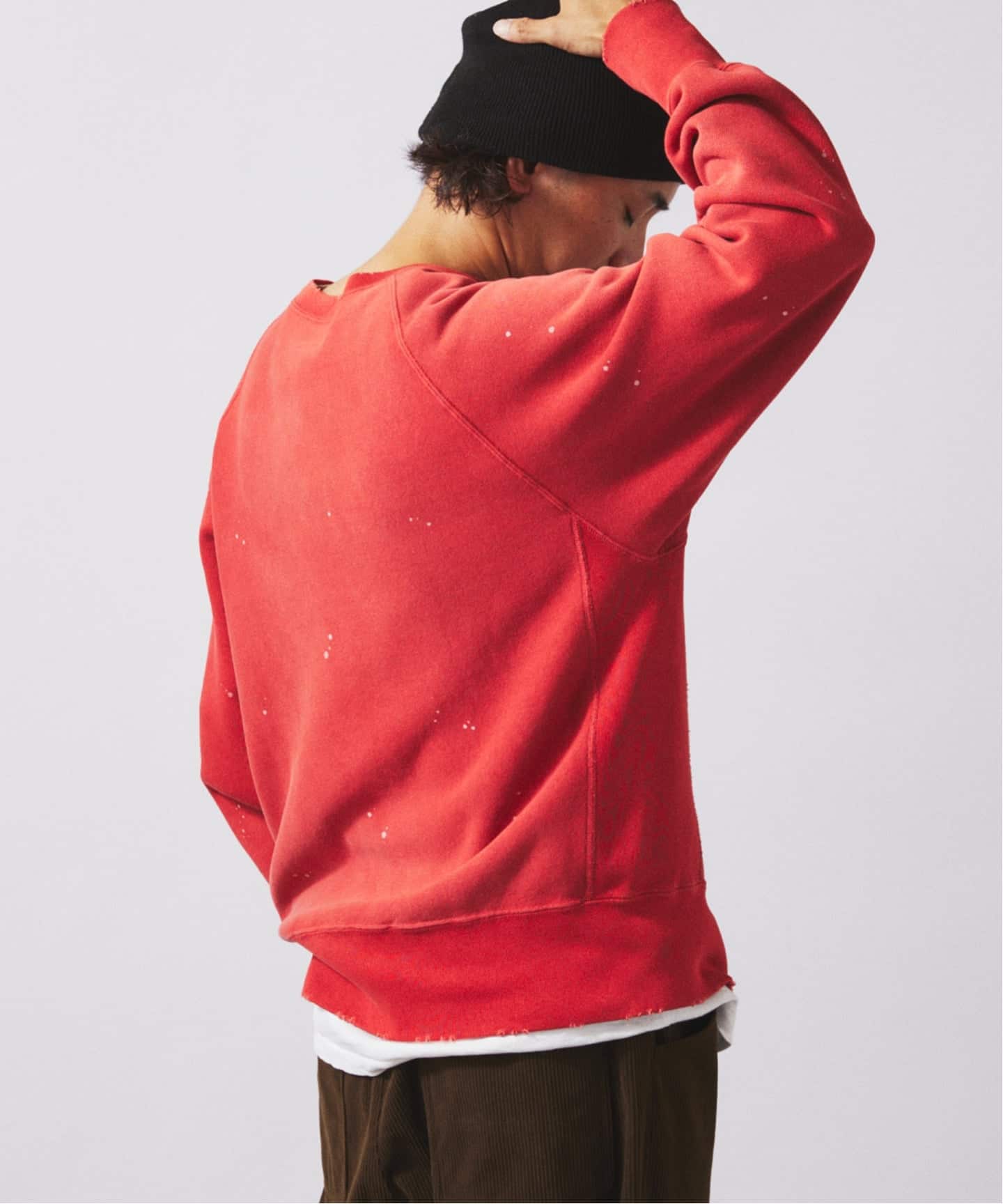 염색과 페인트, 페이드 가공으로 빈티지한 느낌의 스웨트 티.