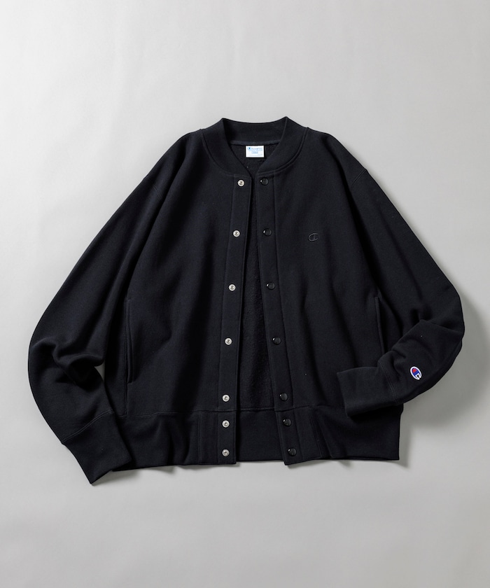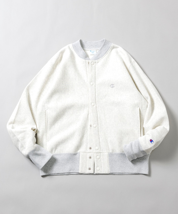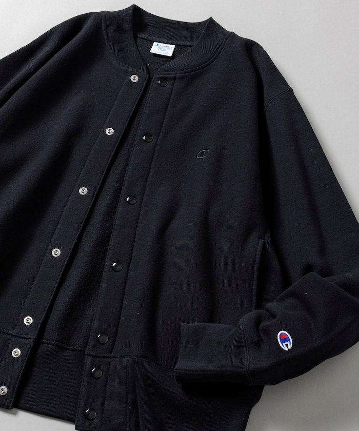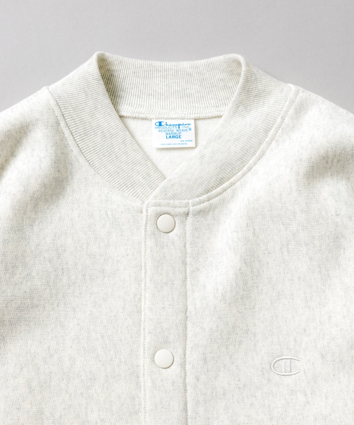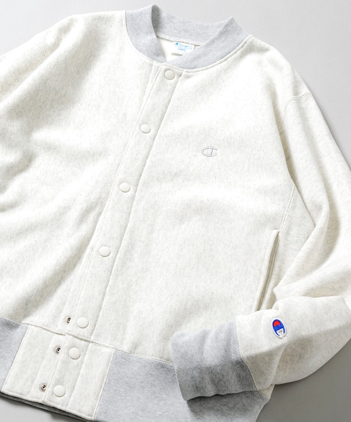 챔피언의 대표적인 리버스 위브 방식을 사용한 노칼라 재킷. 왼쪽 가슴과 소매에는 로고 자수가 있습니다.