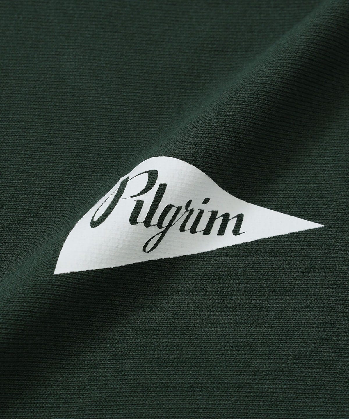가슴 부분에 Pilgrim을 상징하는 페넌트 플래그 로고 프린트가 있는 후드 티