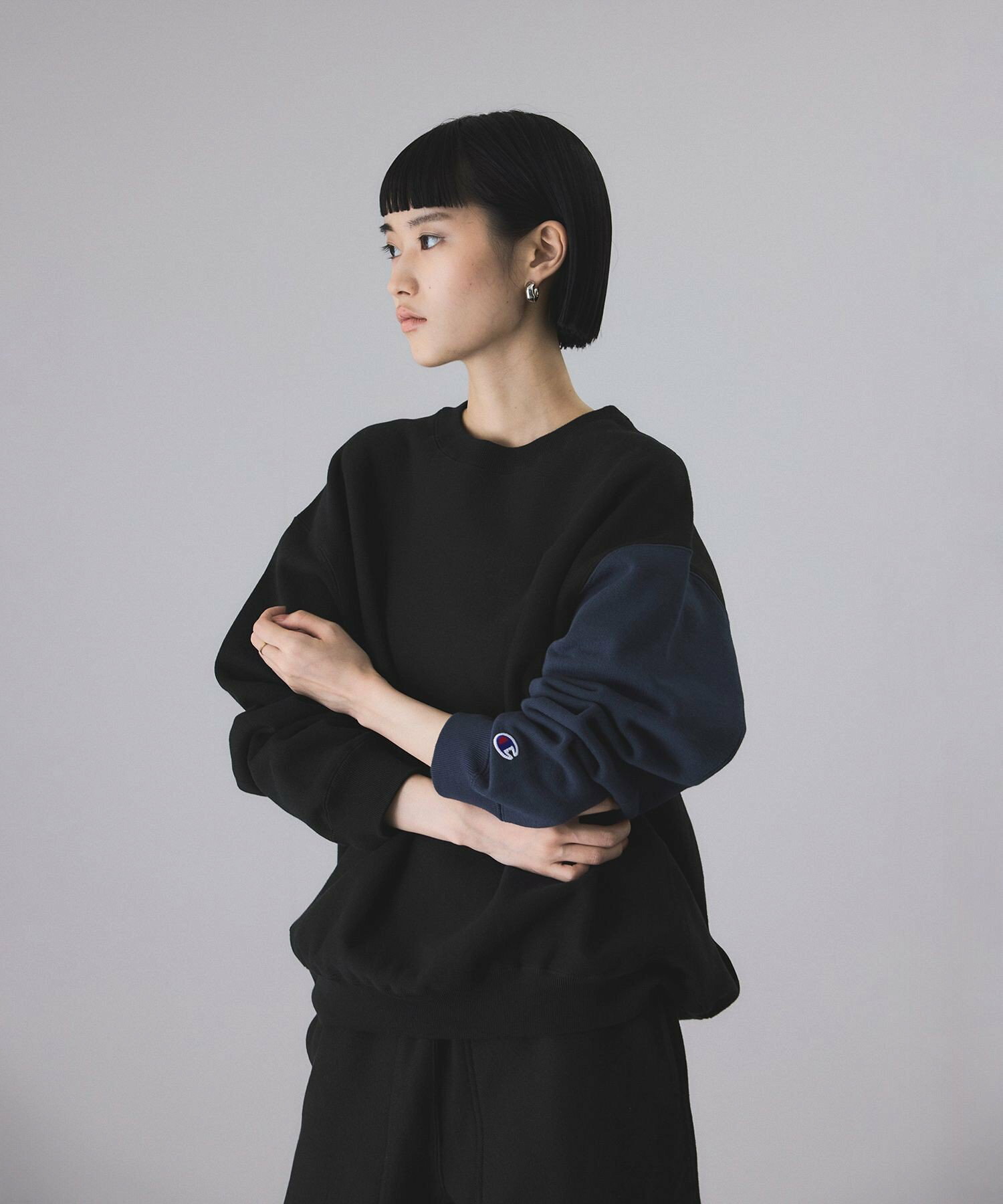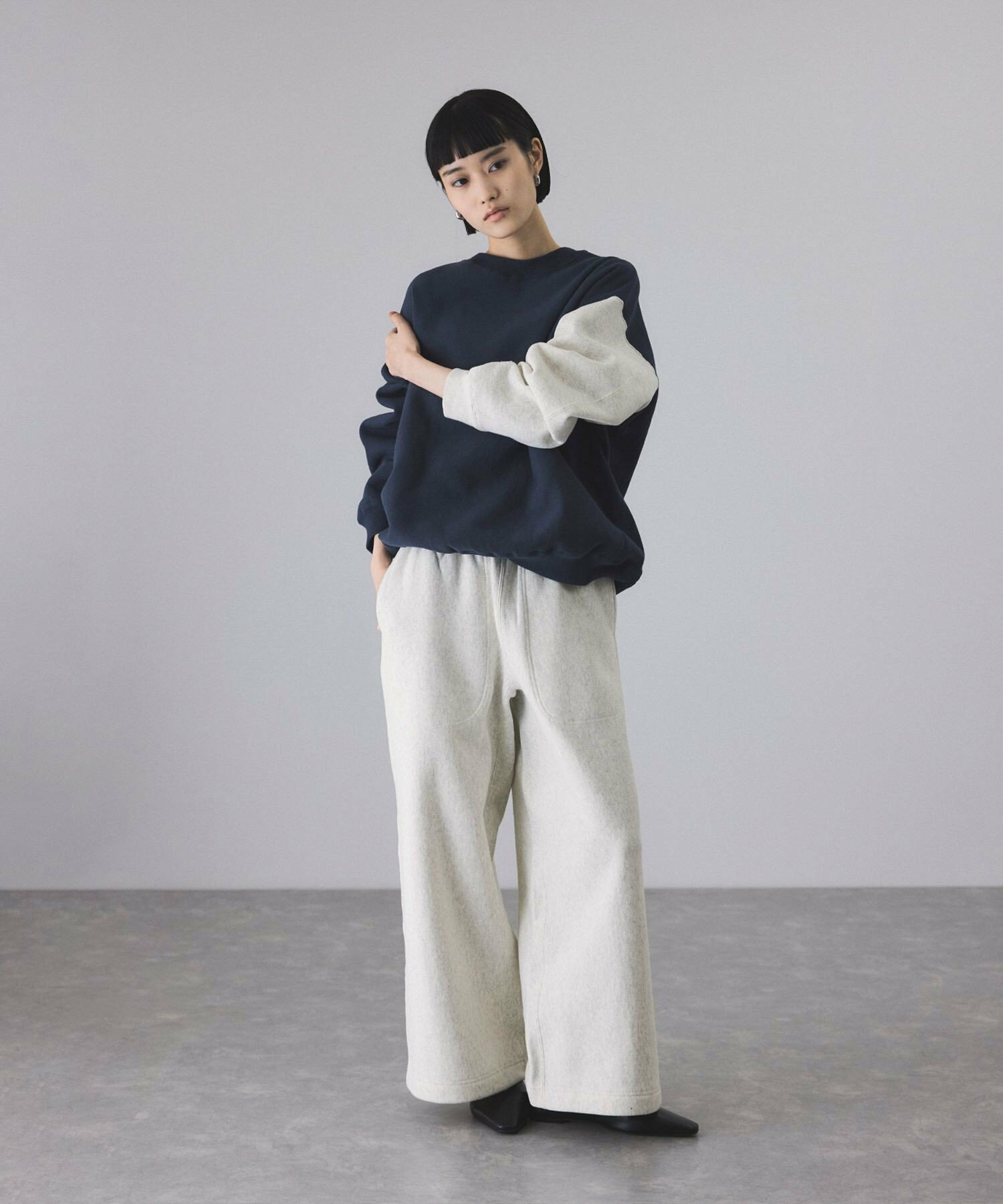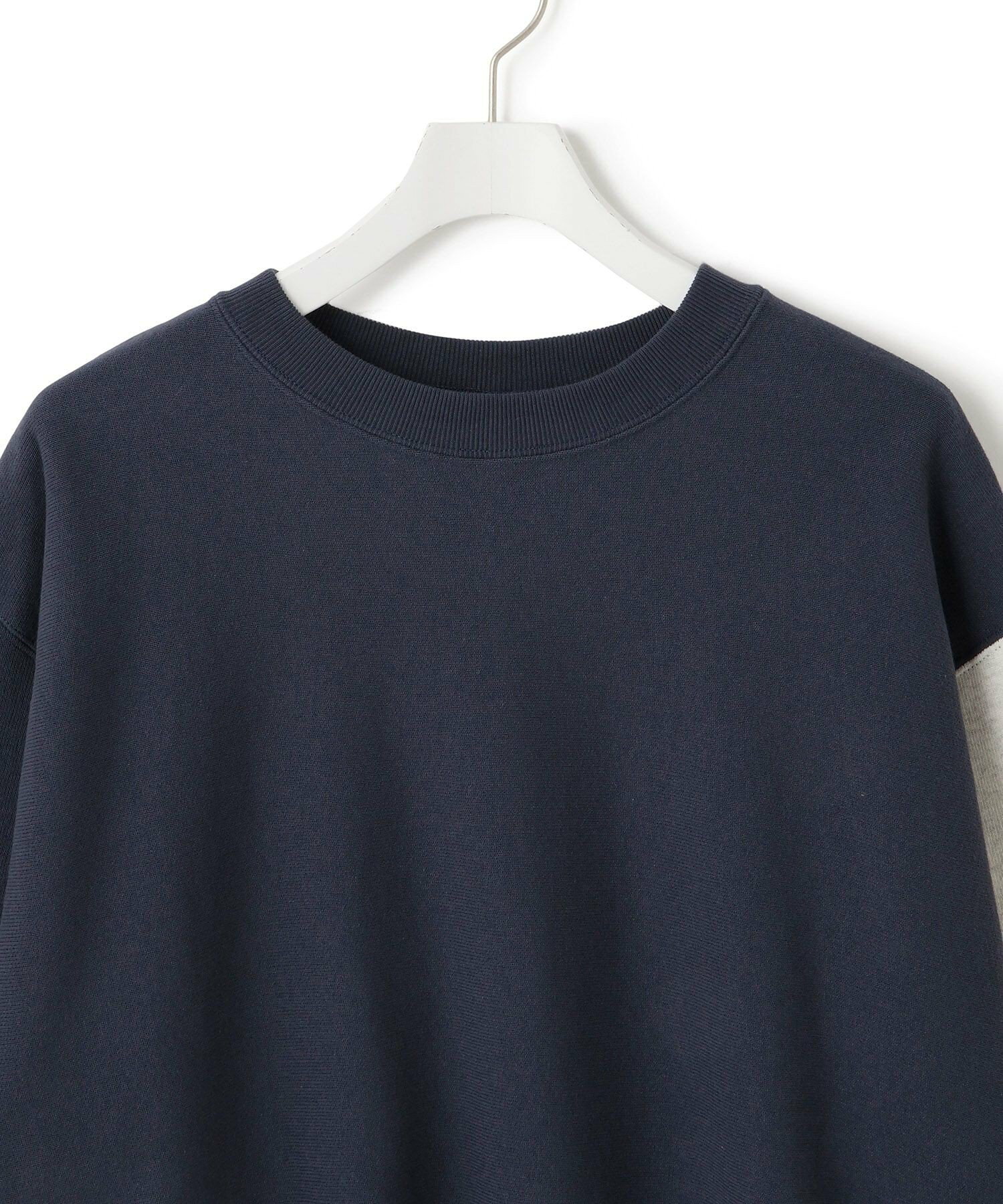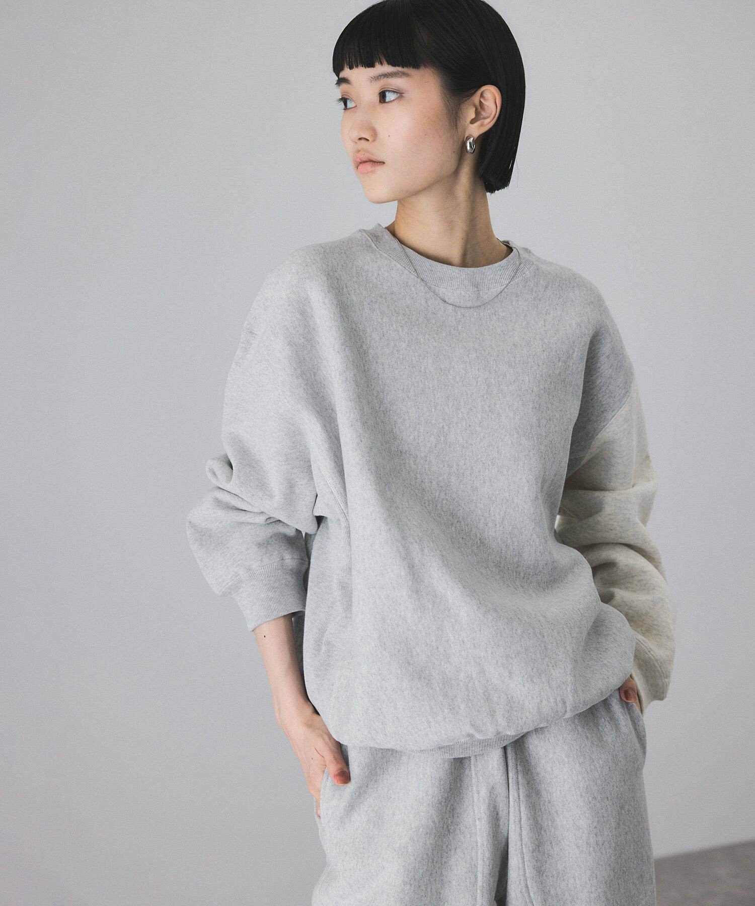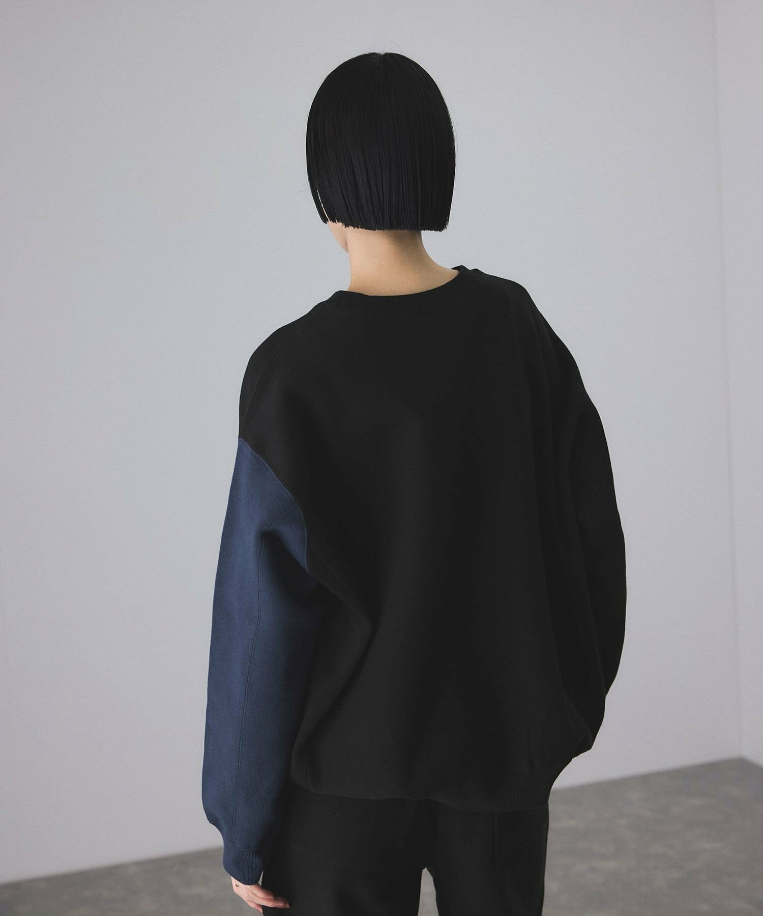 바디와 소매의 컷팅 전환 디테일 이 포인트인 스웨트셔츠입니다.