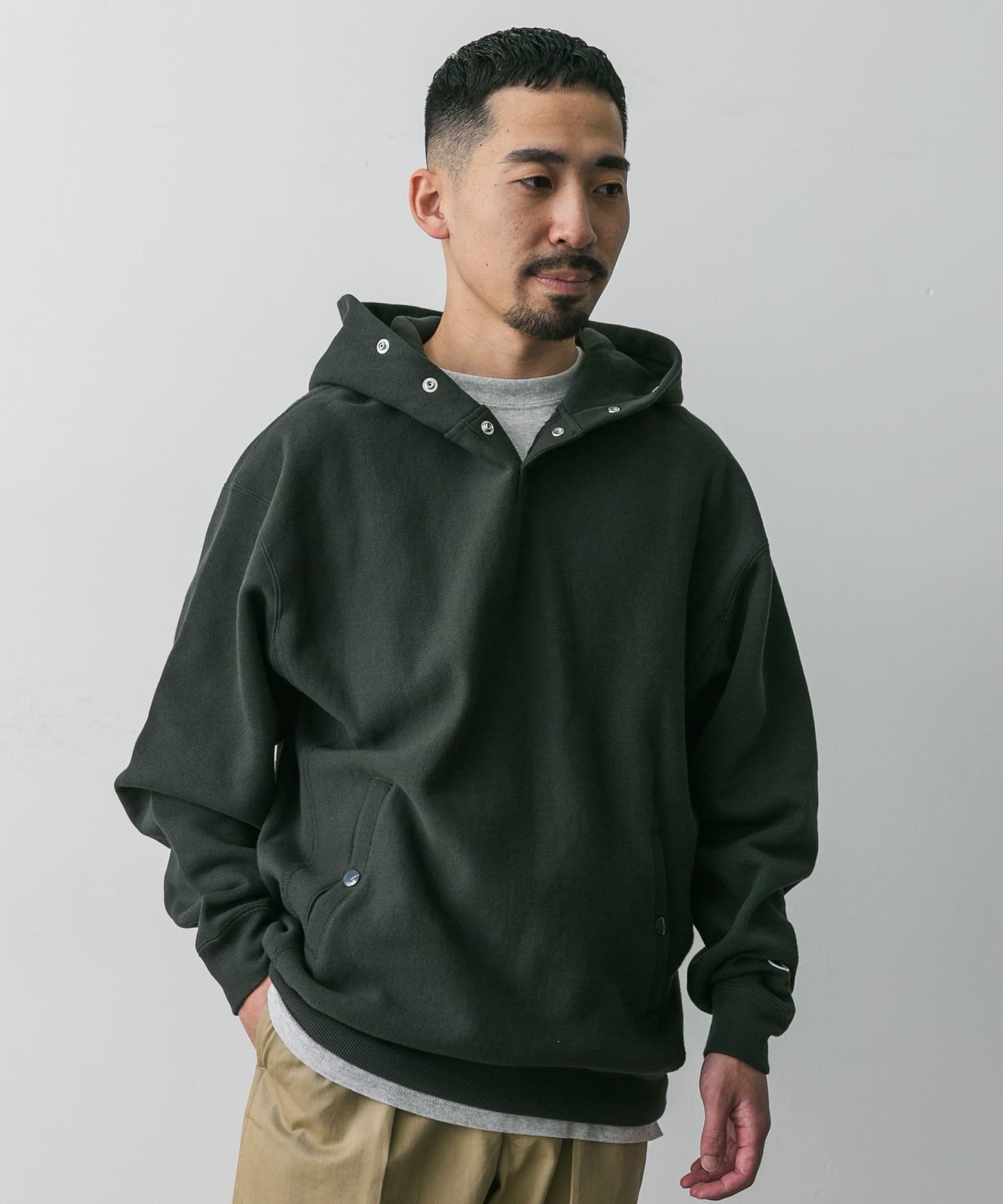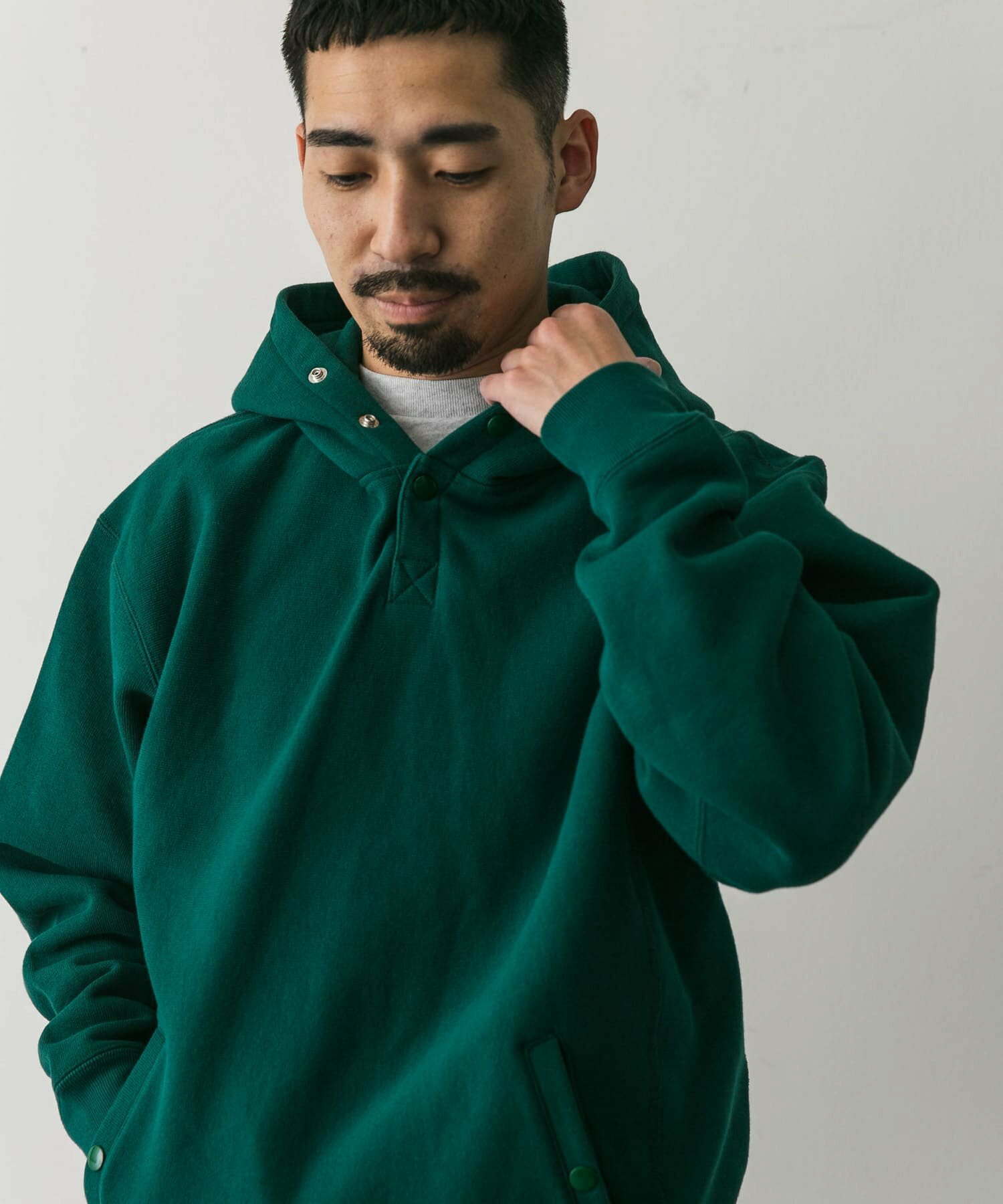 매시즌 인기의 리버스위브 시리즈. 스냅 버튼이 있는 헤비급 파커로 다양한 컬러가 준비되어 있습니다. 왼쪽 팔목에 로고 패치와 C자형 포켓이 있으며 부드러운 기모 안감으로 보온성이 뛰어납니다.