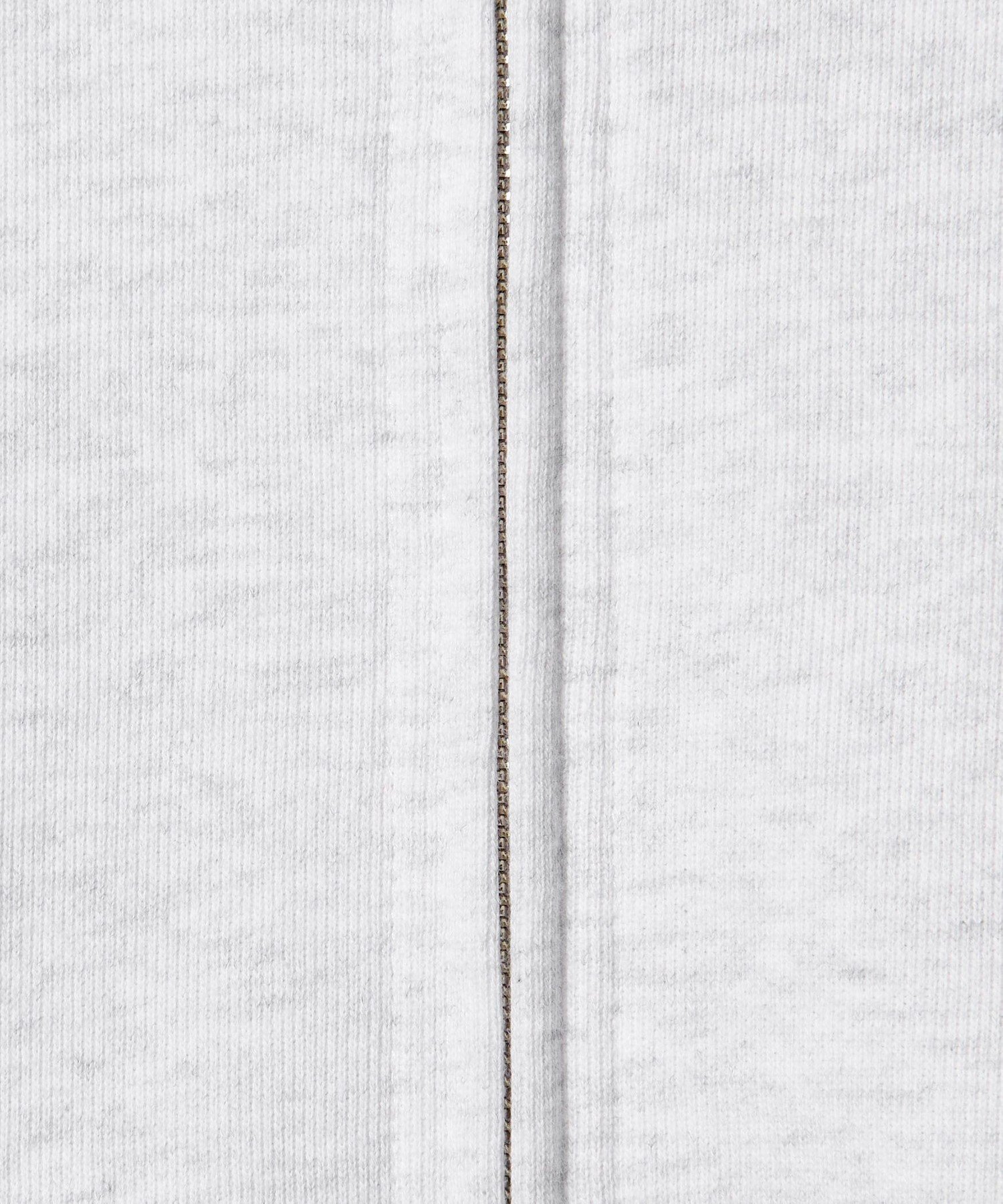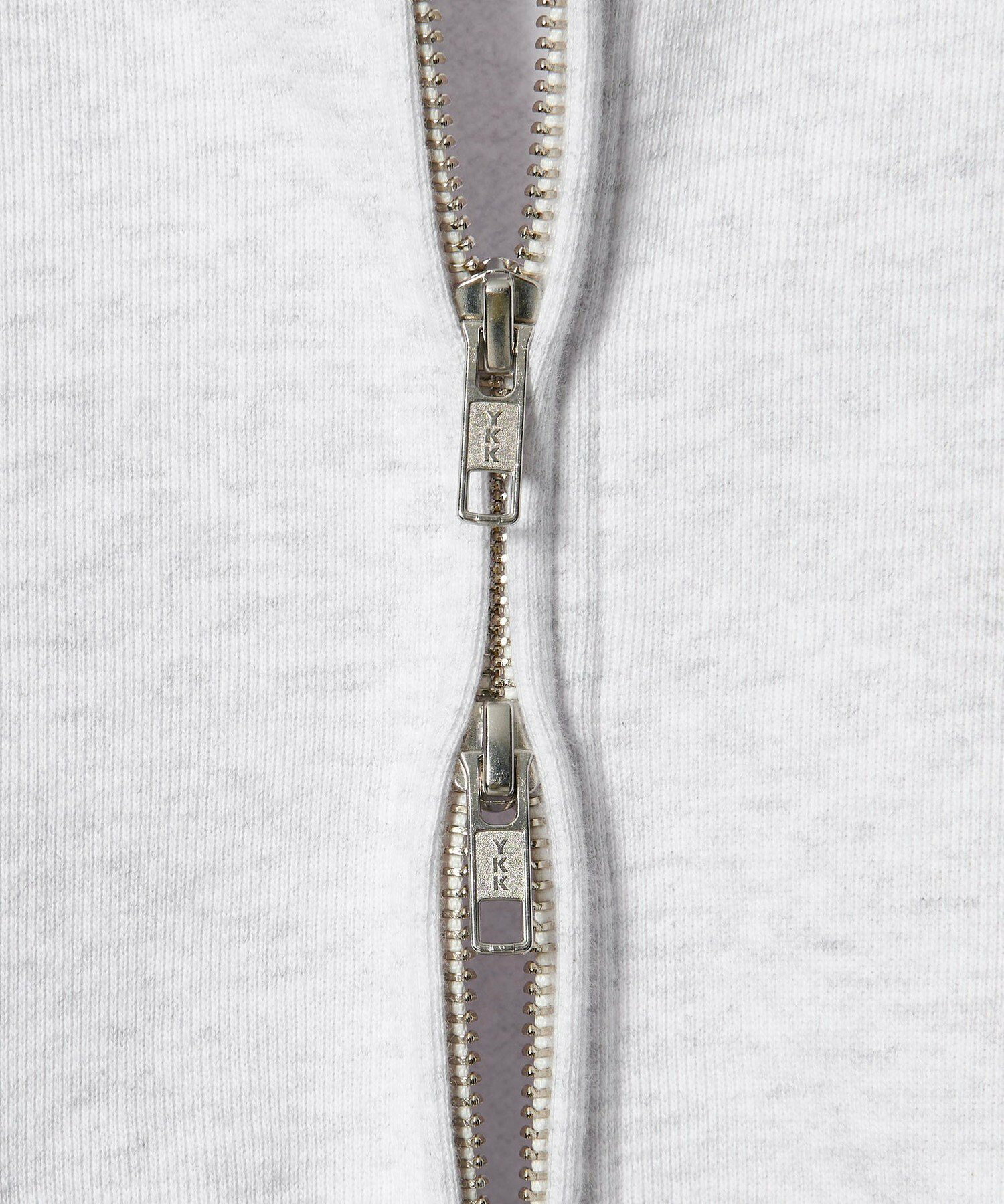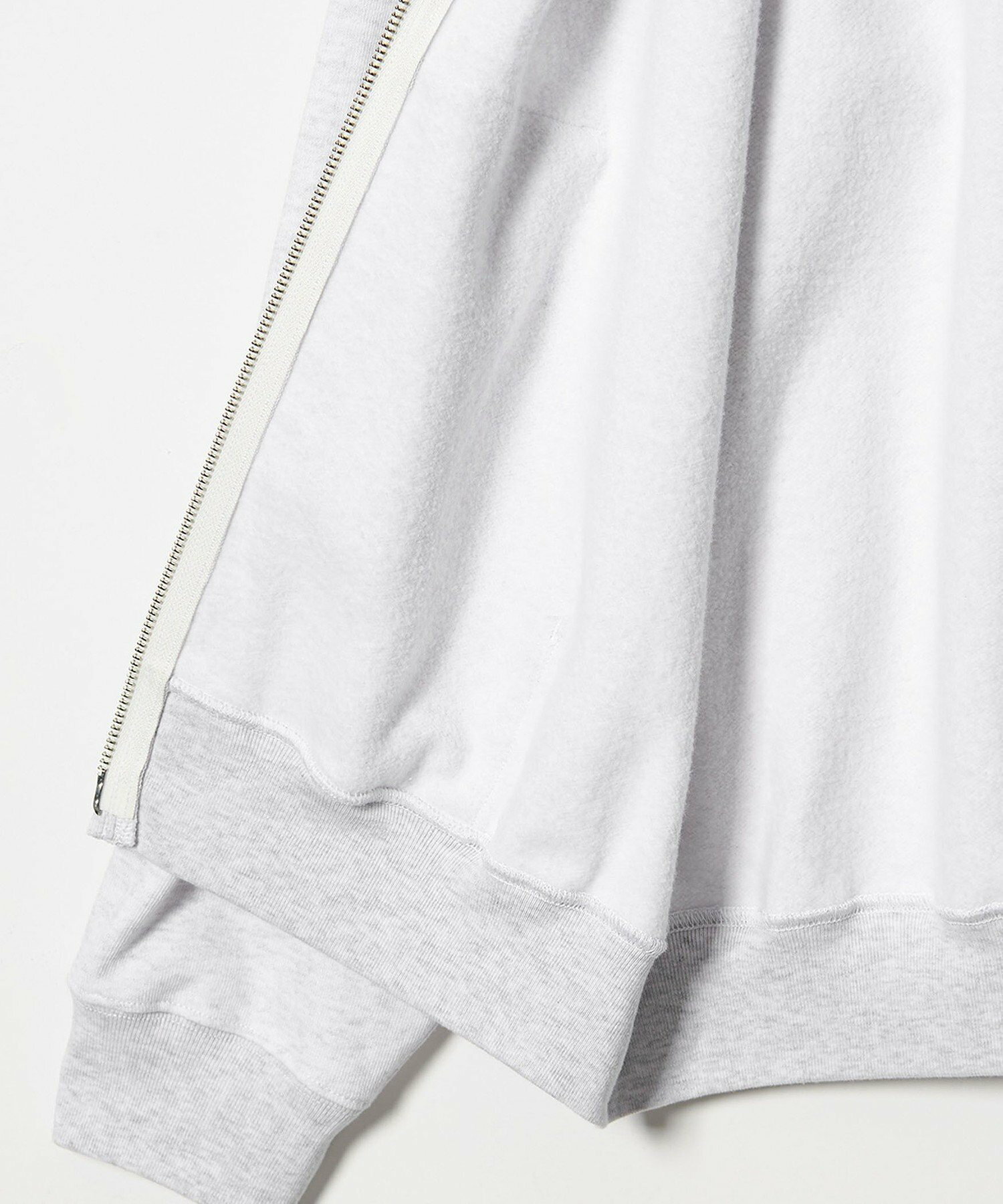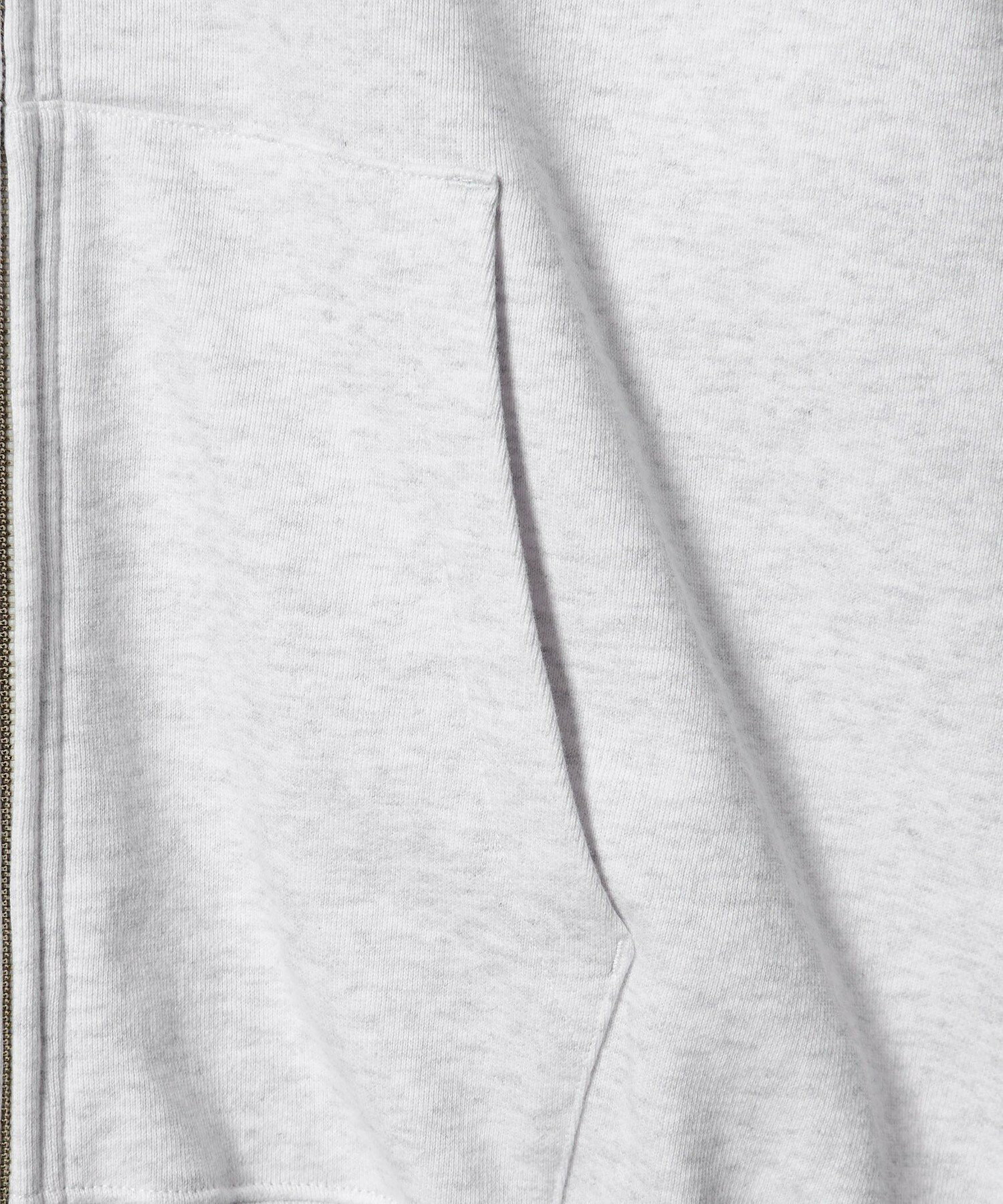 본체는 너무 얇지도 두껍지도 않은 절묘한 원단 질감이며 미세 기모 처리 하여 부드러운 느낌입니다. 왼쪽 가슴에 브랜드 로고 자수가 있습니다.