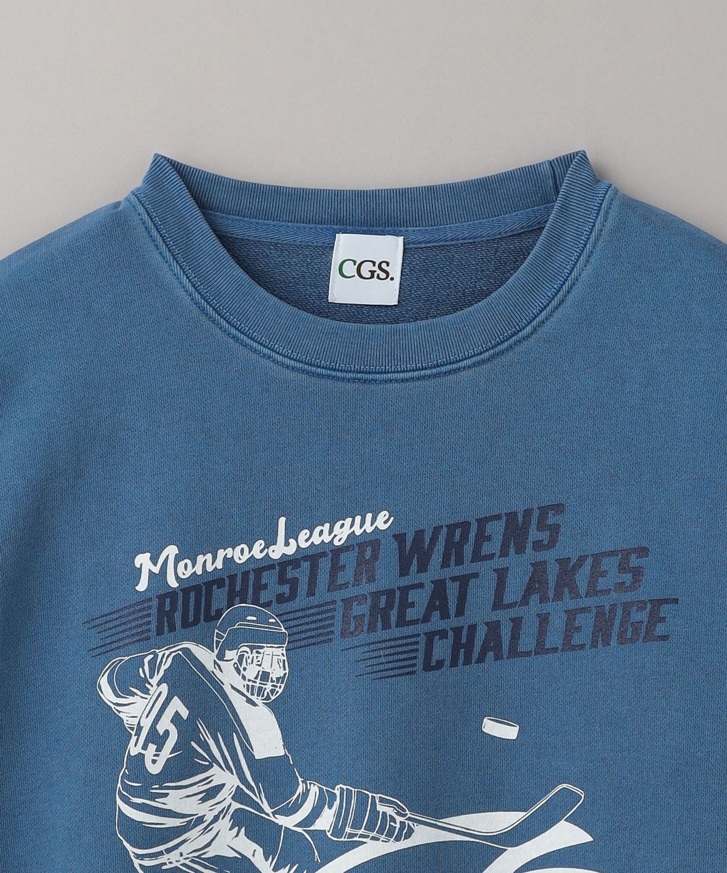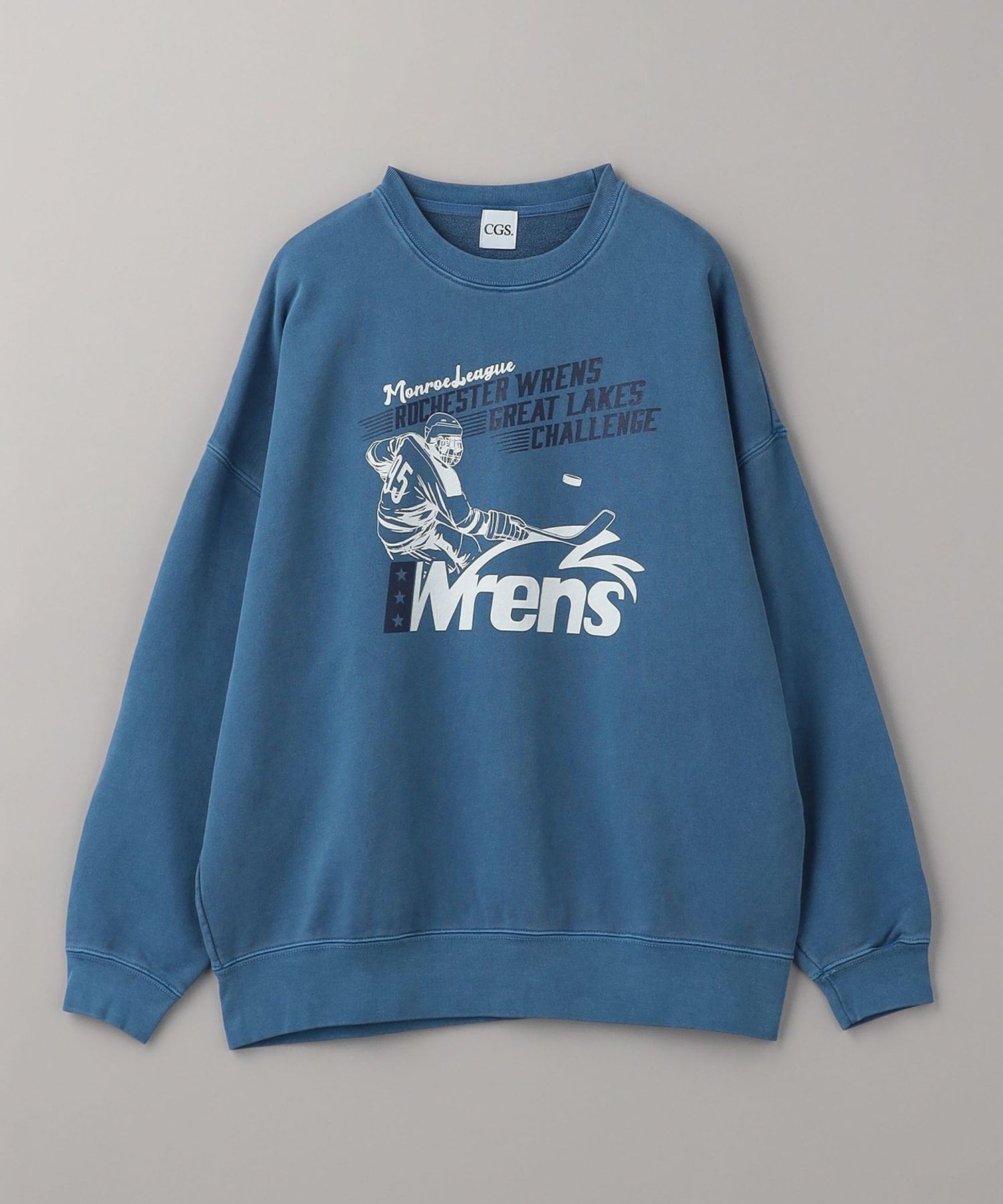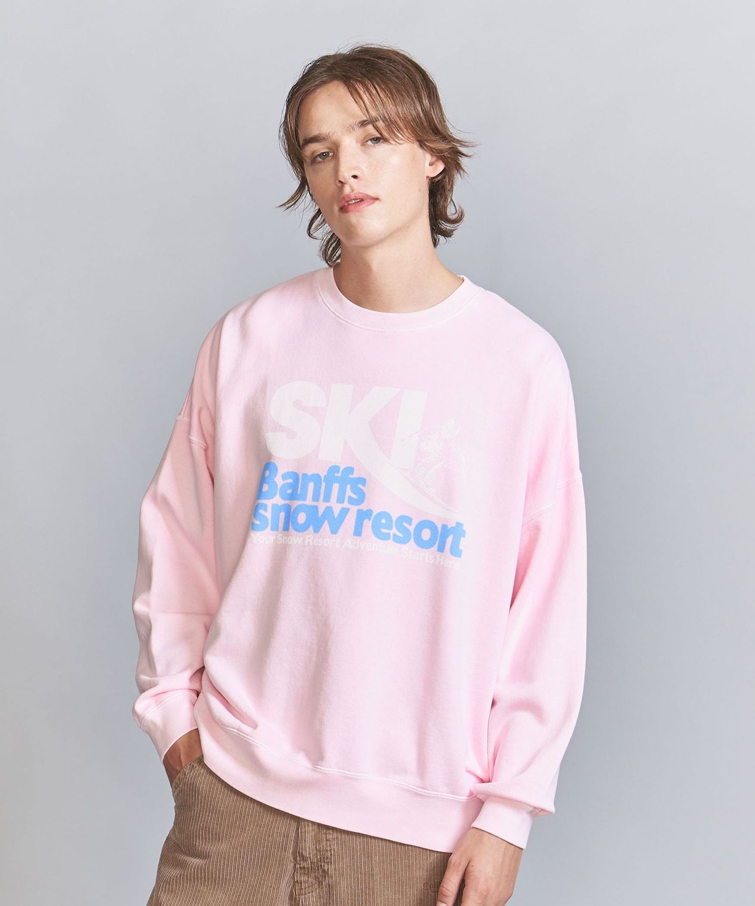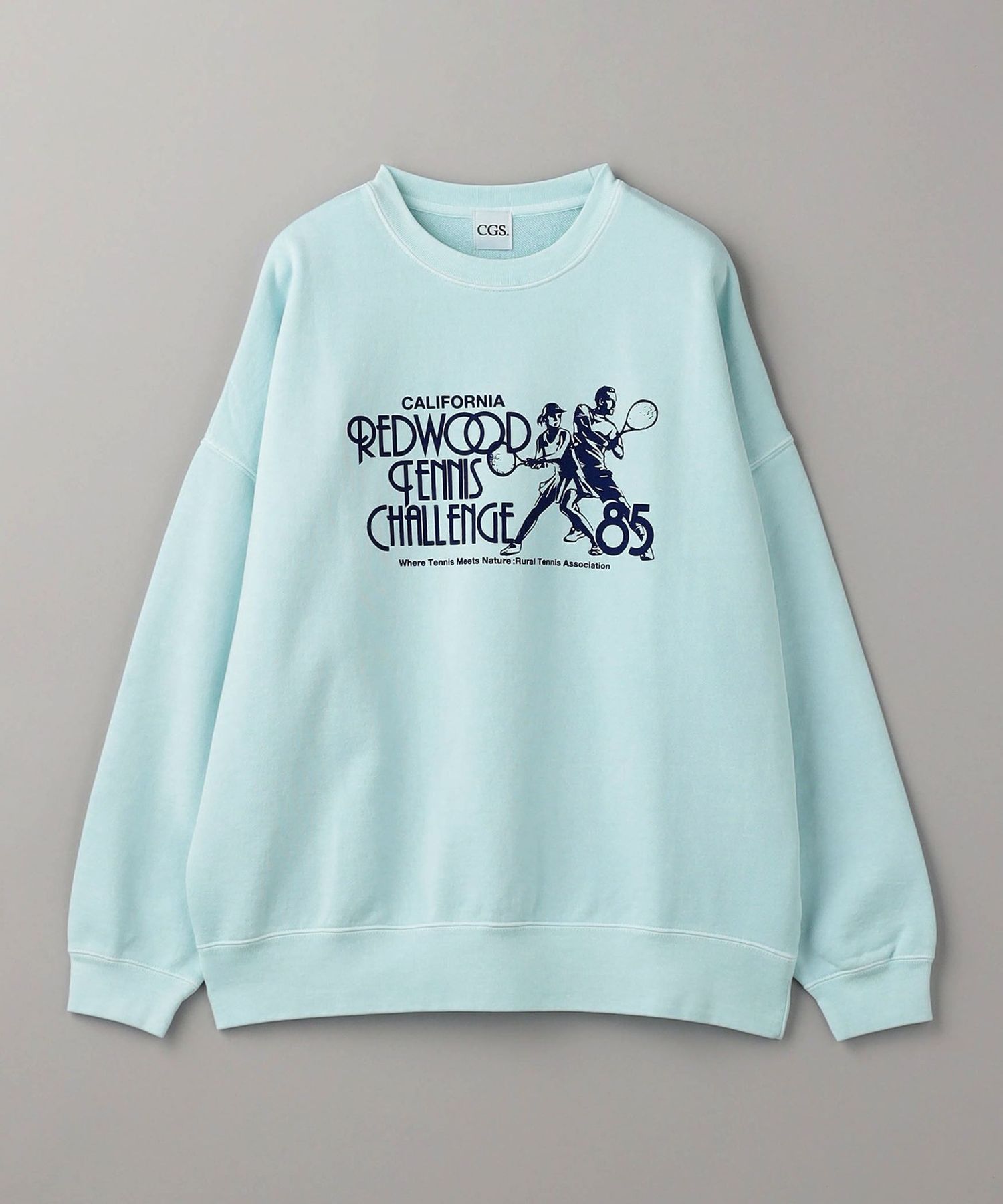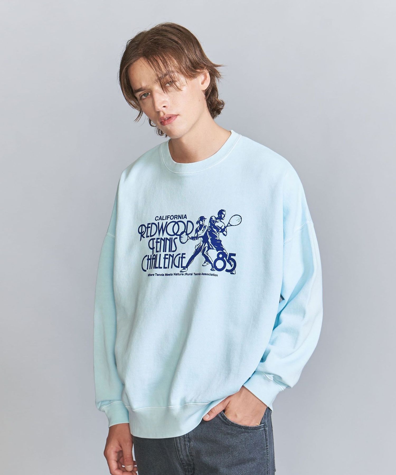클래식 스포츠인 테니스, 스키, 아이스하키의 프린트가 특징인 크루넥 스웨트셔츠
