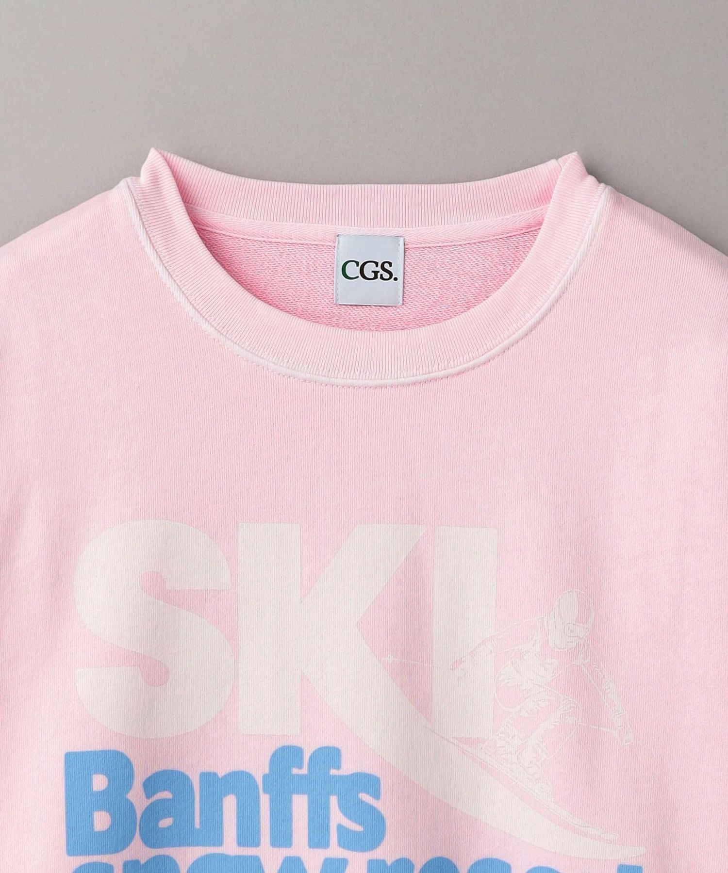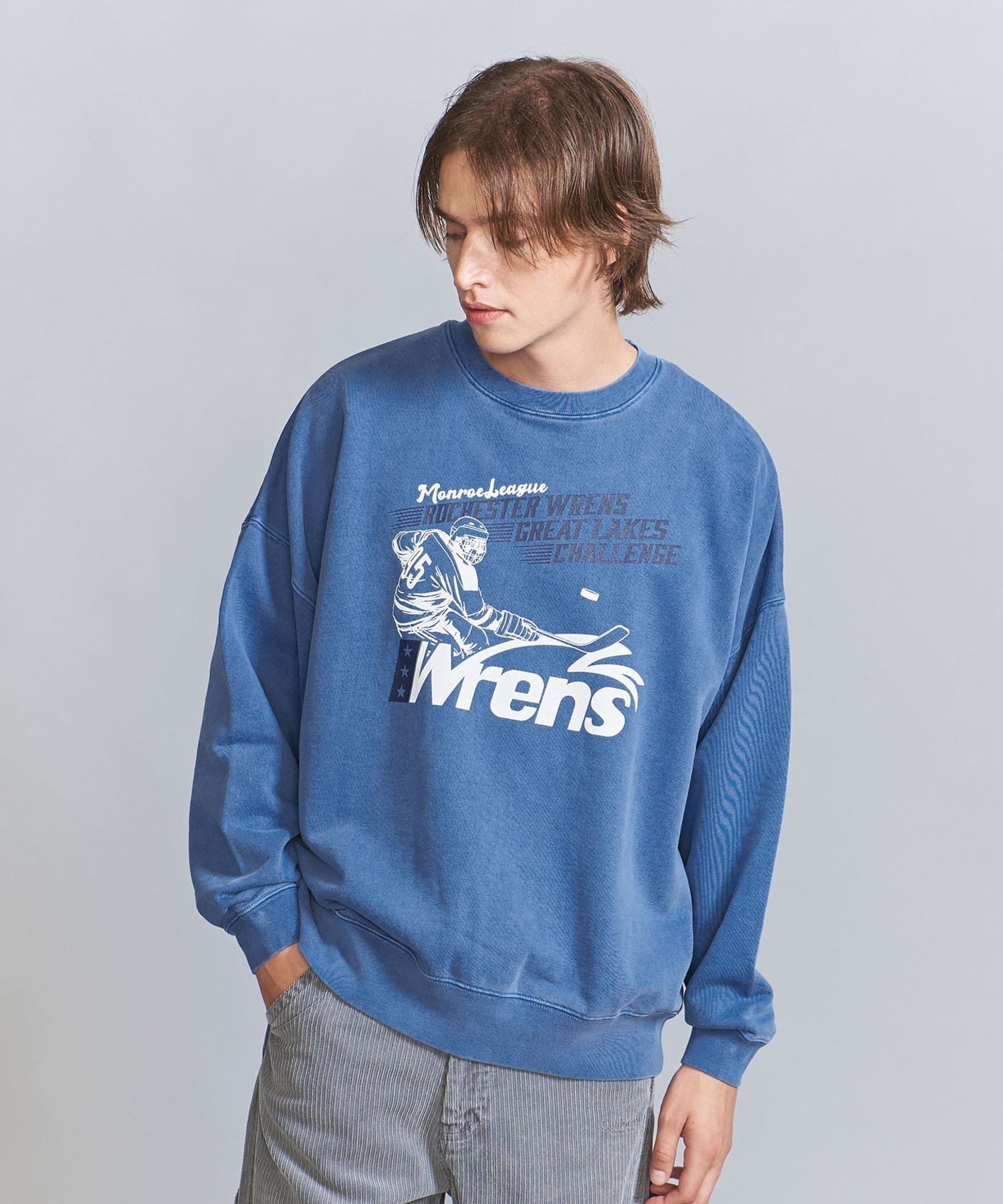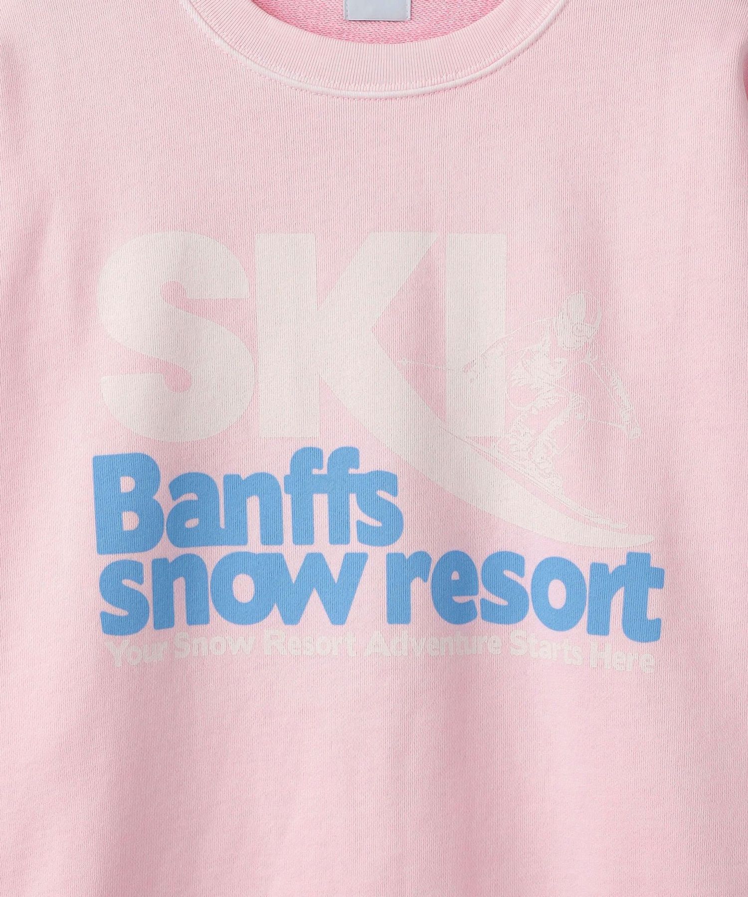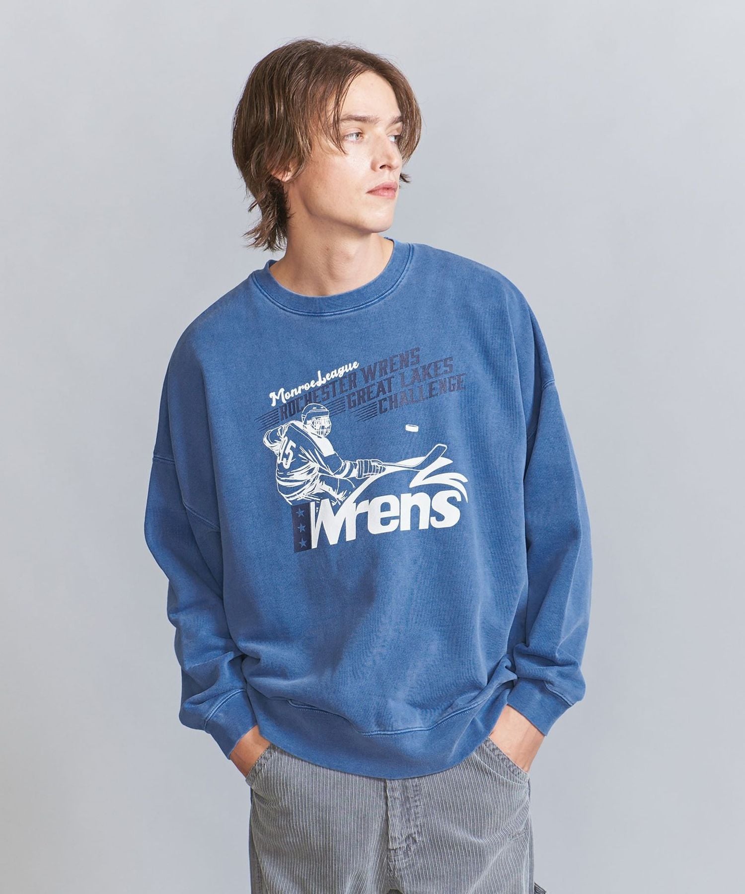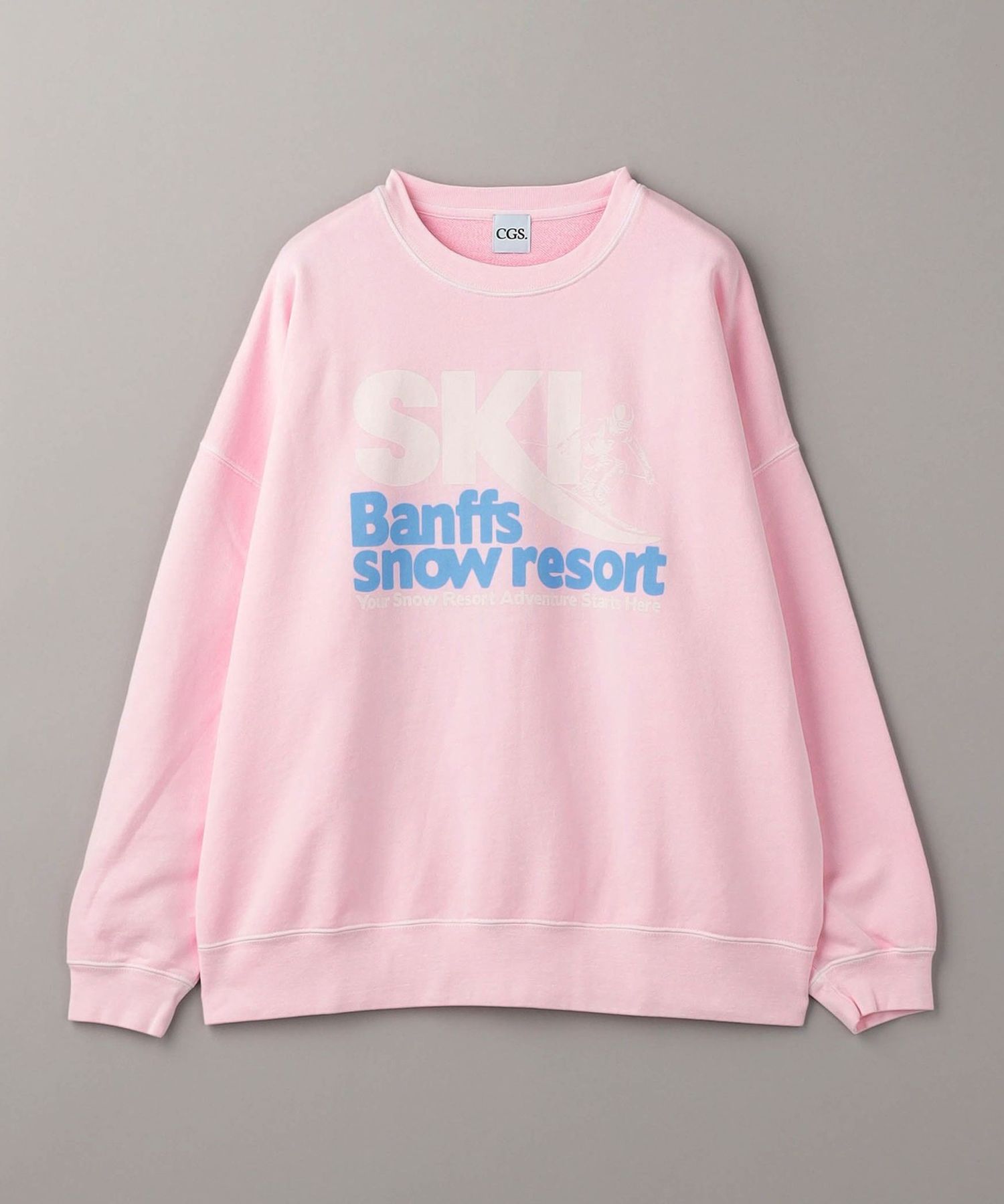 클래식 스포츠인 테니스, 스키, 아이스하키의 프린트가 특징인 크루넥 스웨트셔츠