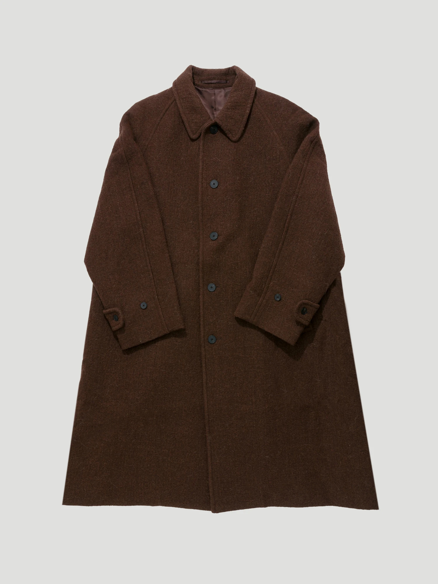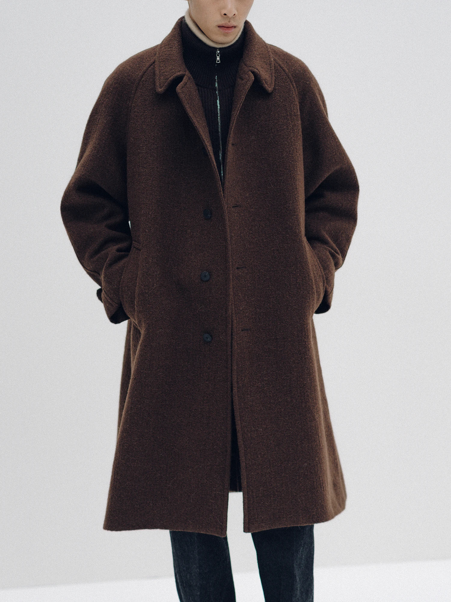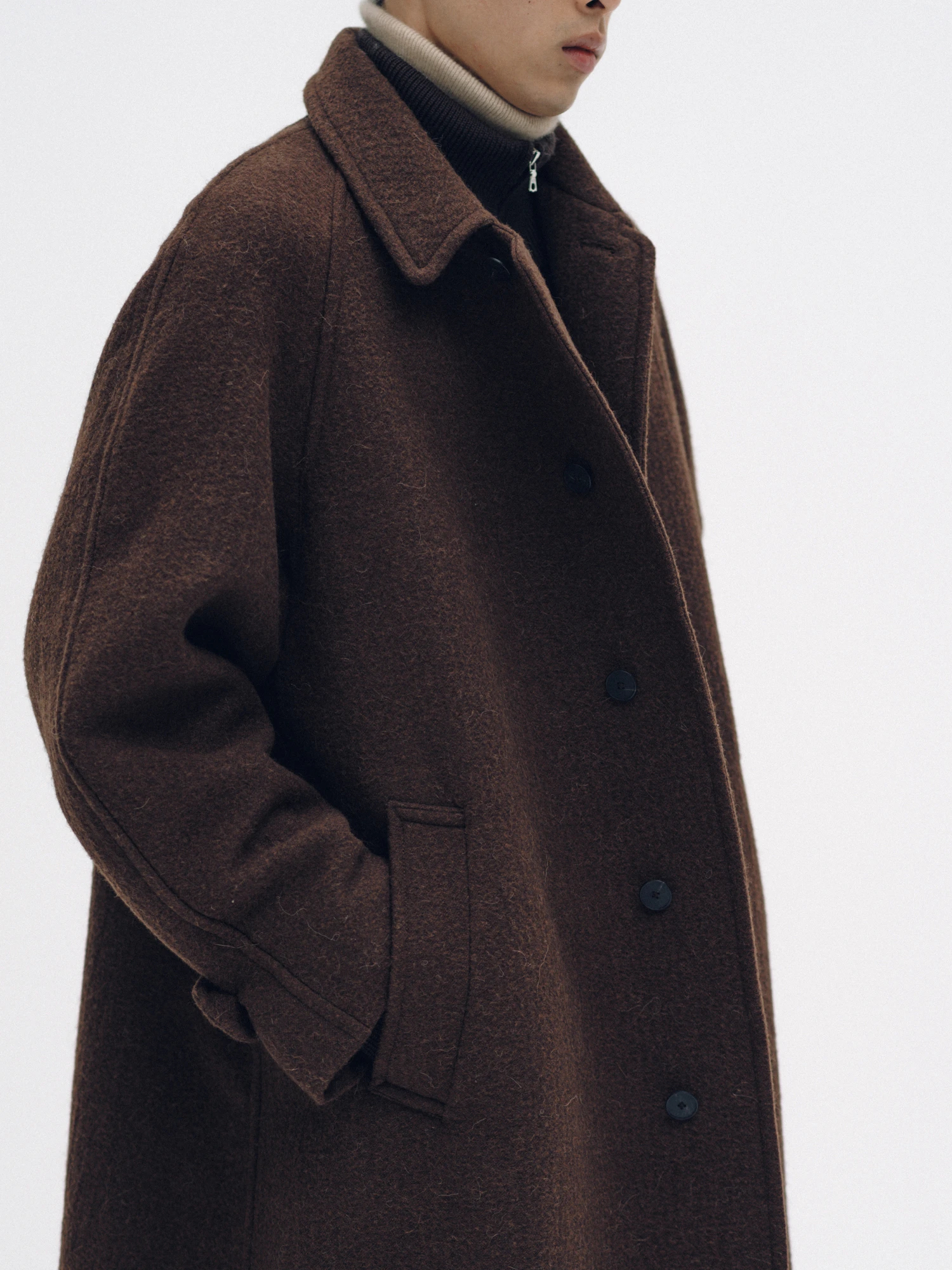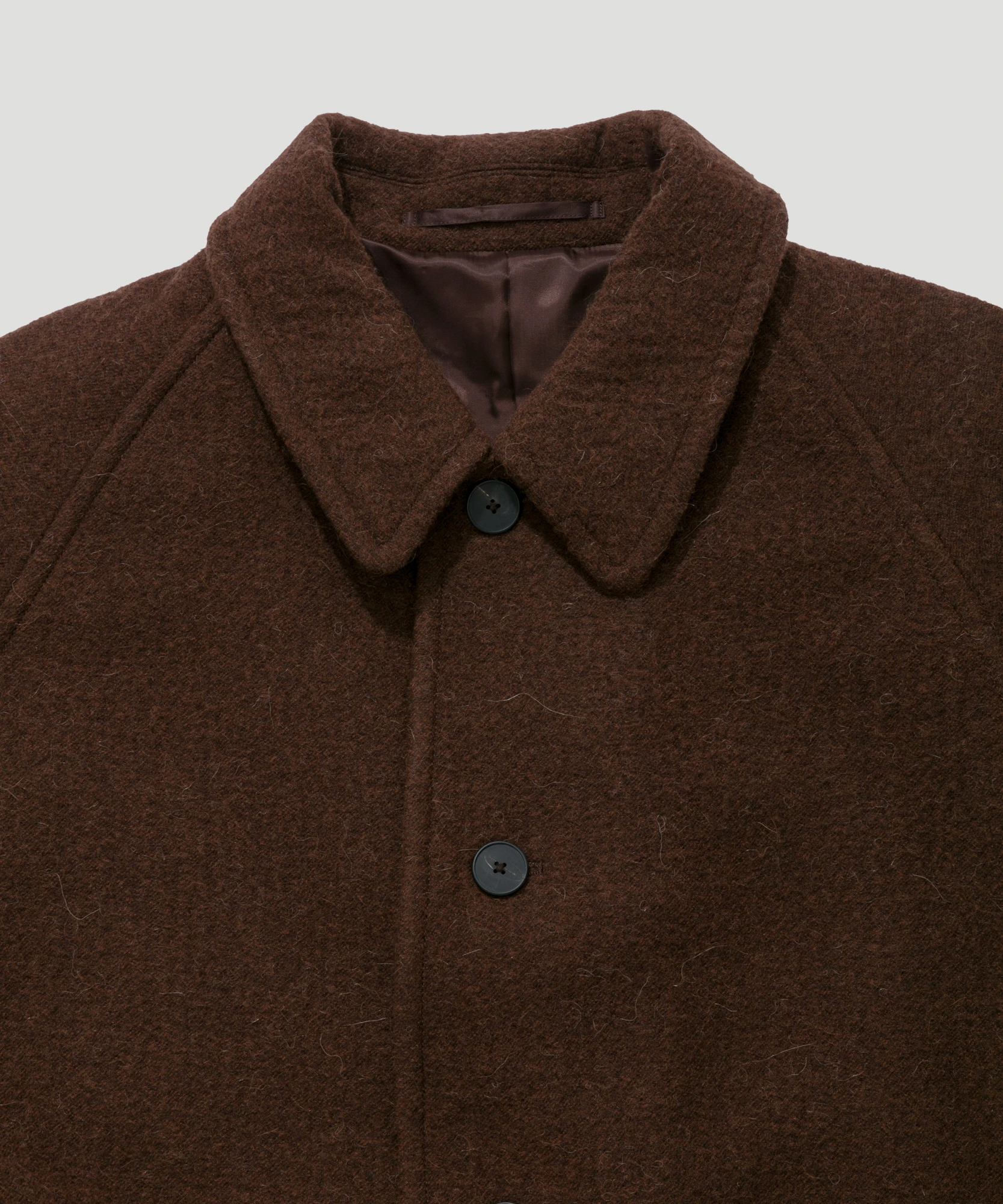 라마 알파카와 메리노 울을 혼합해 천천히, 그리고 밀도 있게 직조한 더블 클로스 원단 으로 제작한 코트입니다. 원단은 충분히 펠트 가공되어, 적당한 볼륨감과 따뜻한 착용감 을 동시에 선사합니다.