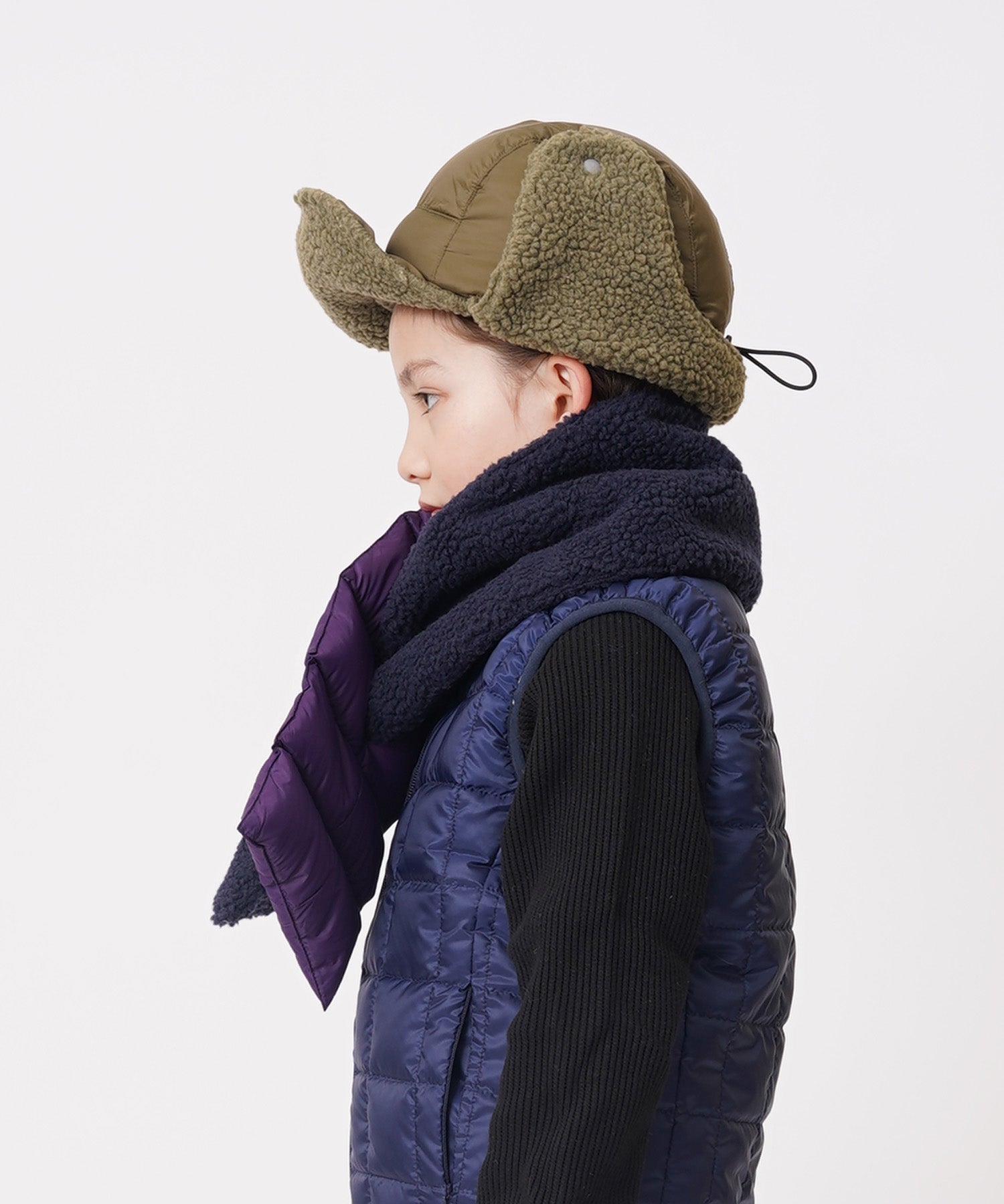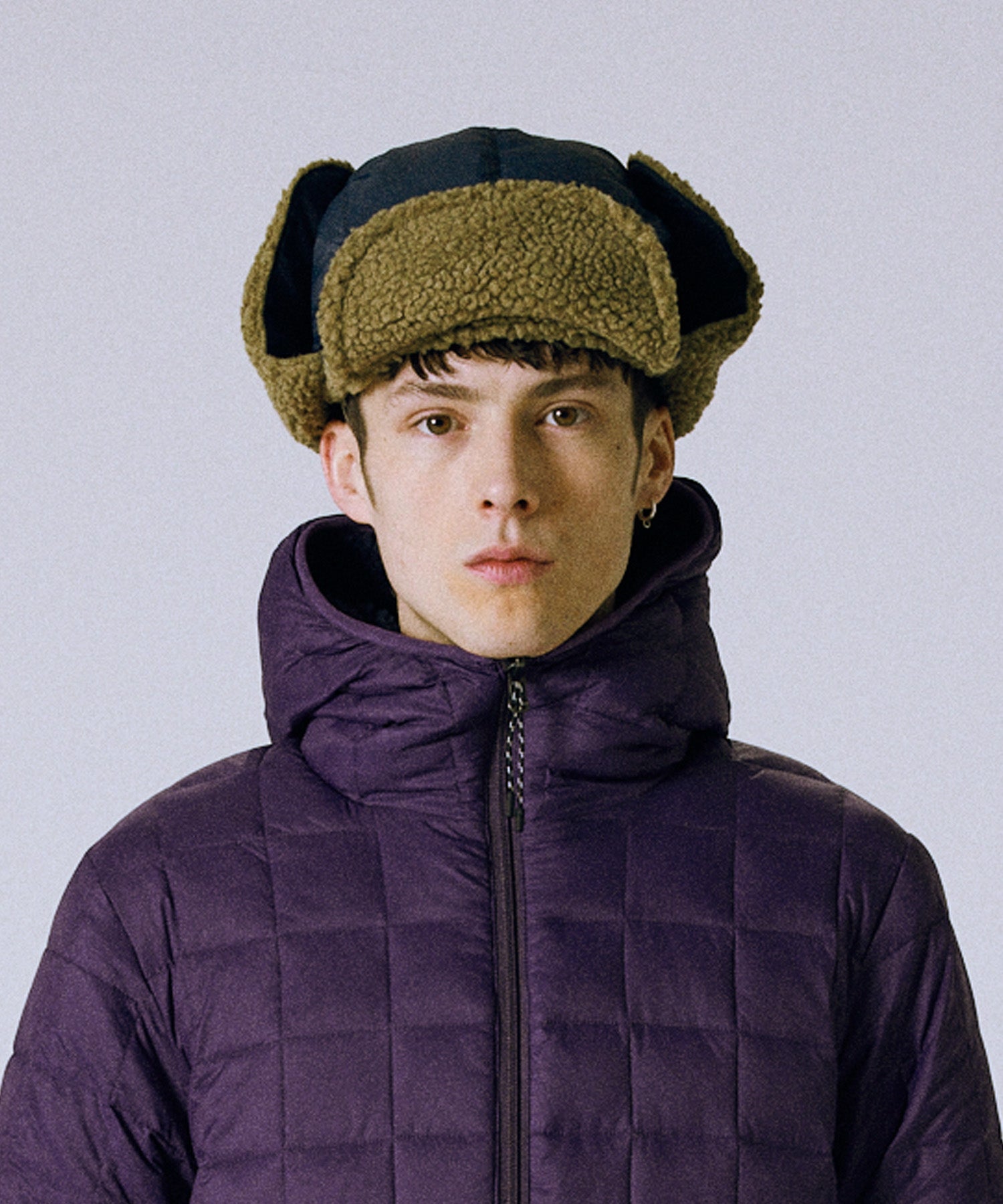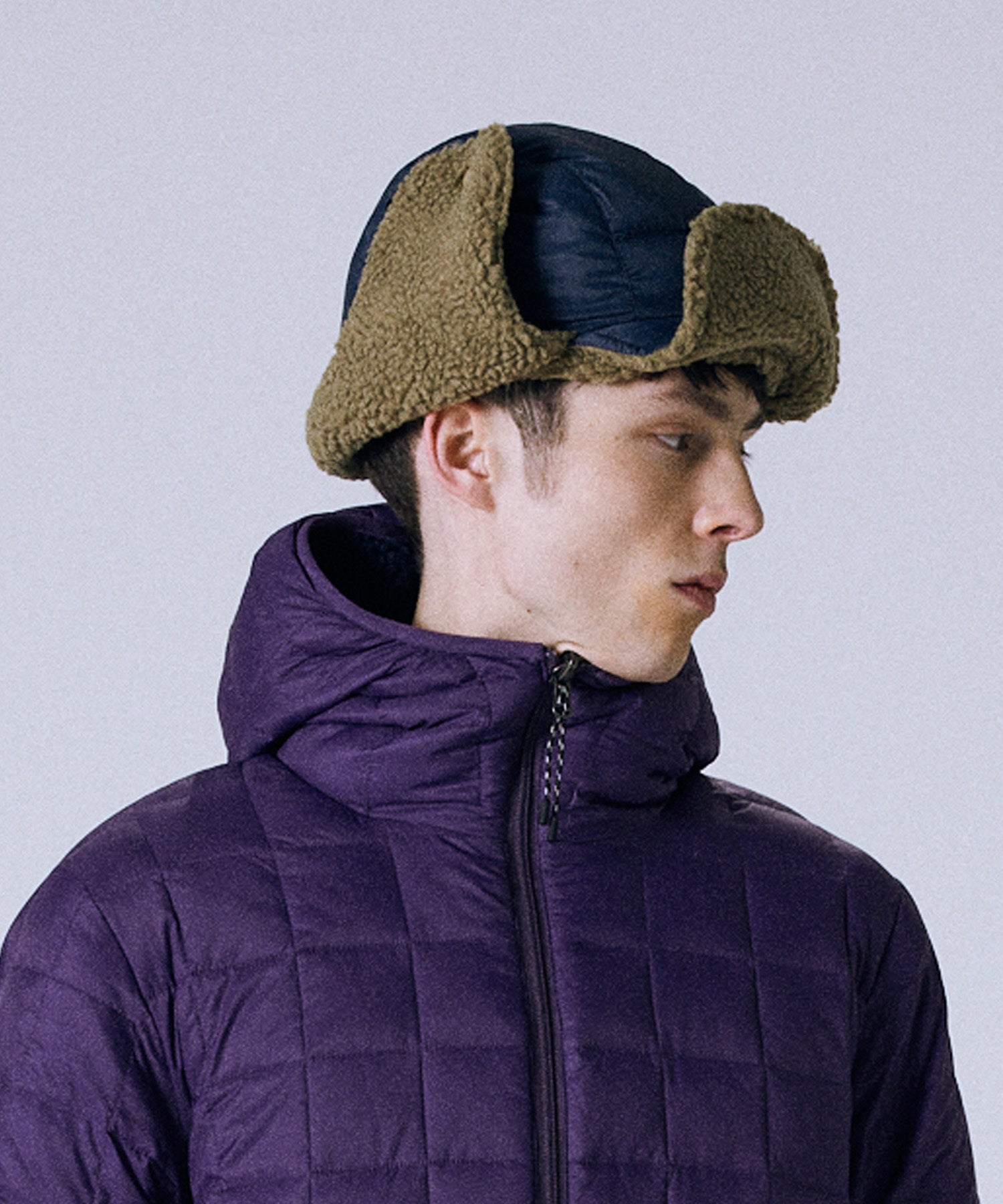 앞면은 나일론과 다운, 뒷면은 보아 소재로 매우 따뜻하고 귀를 덮을 수 있어 추운 날씨에 좋은 아이템입니다.