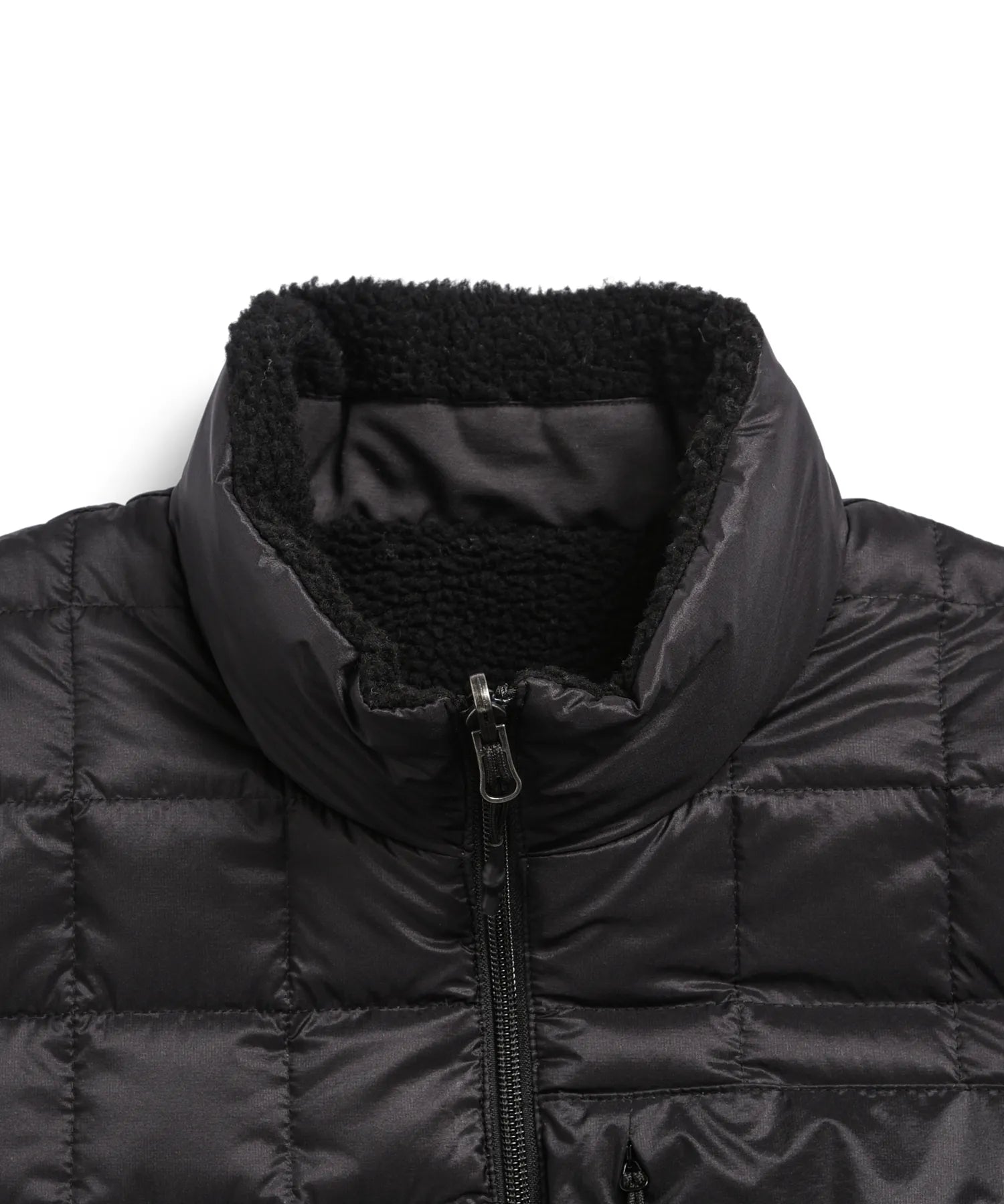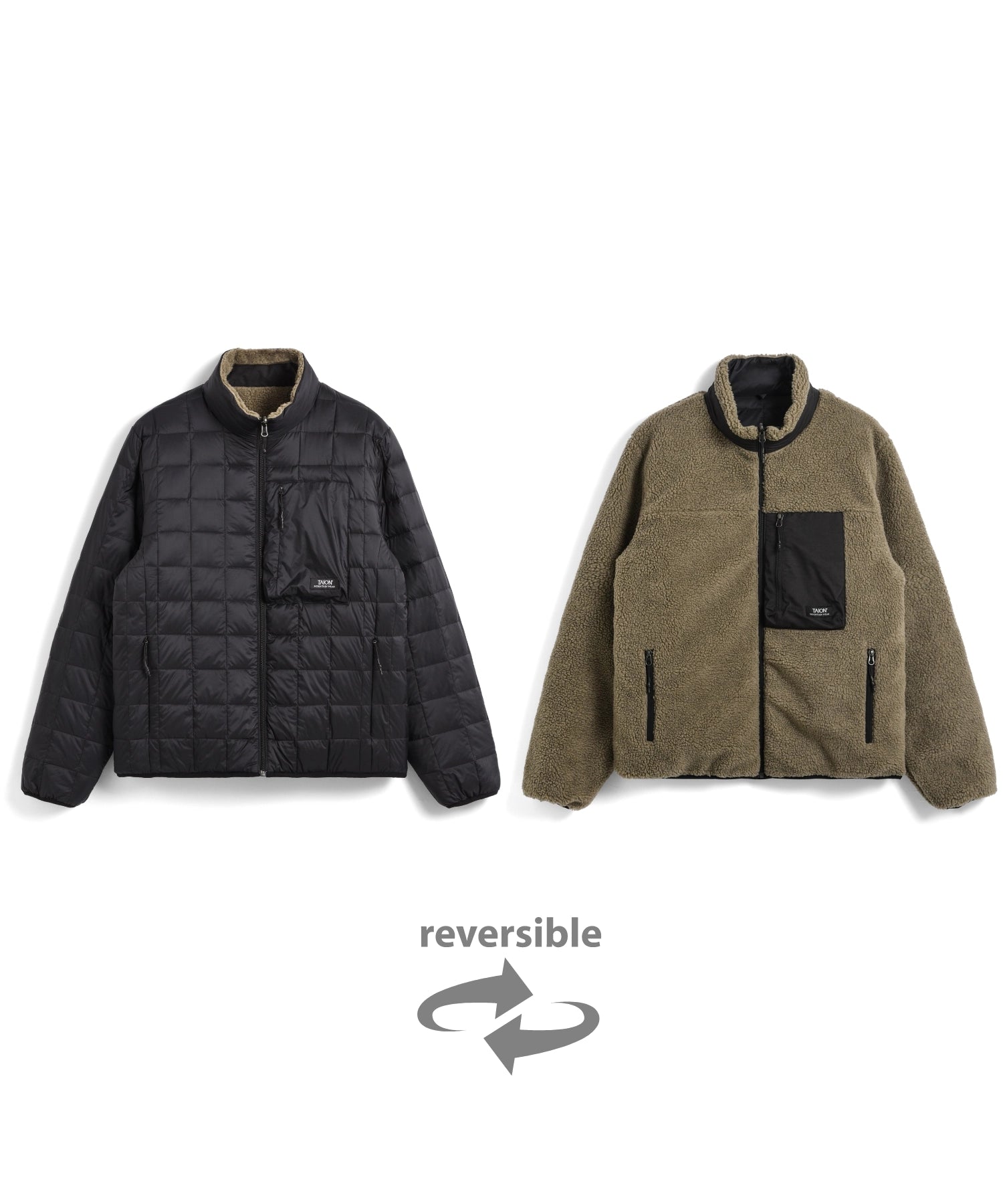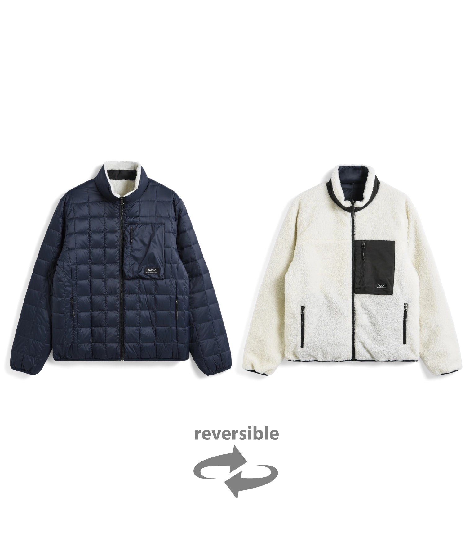 앞면에 다운, 뒷면에 라이트 보어가 있는 리버시블 재킷입니다. 기능적인 가슴 포켓이 있습니다.