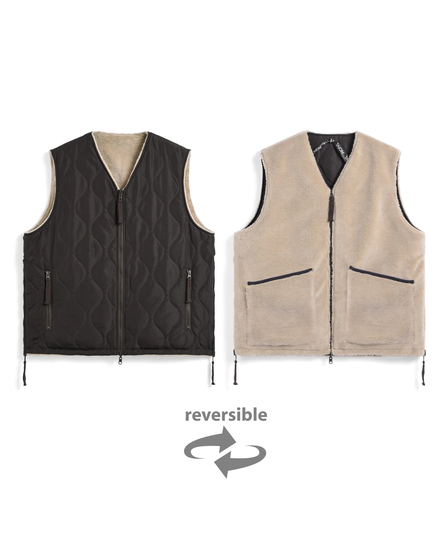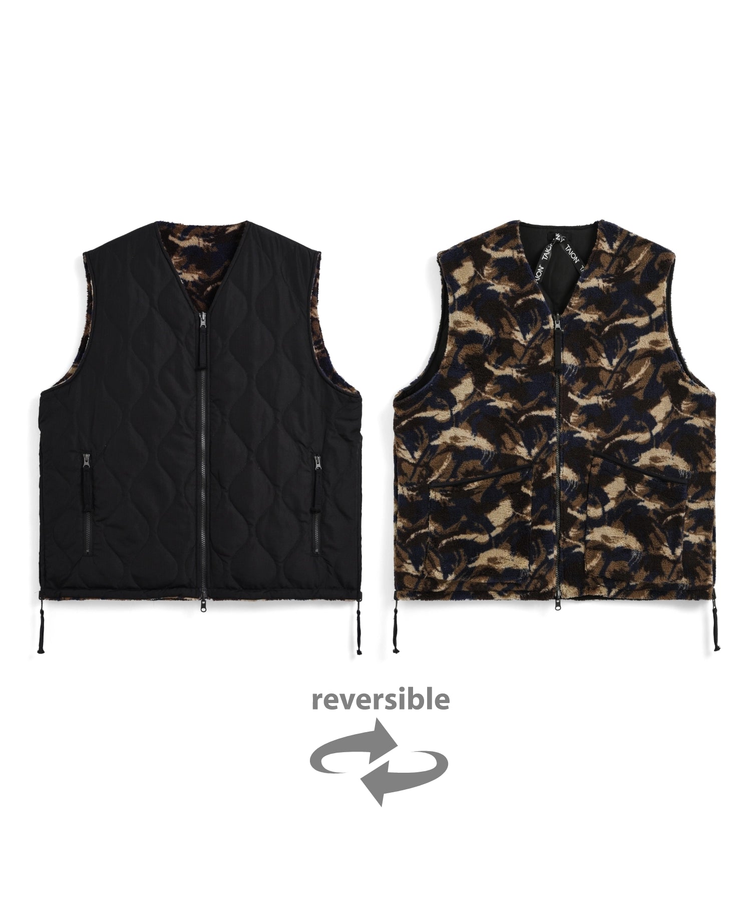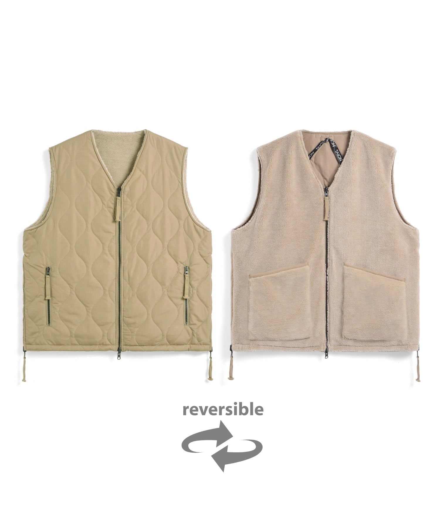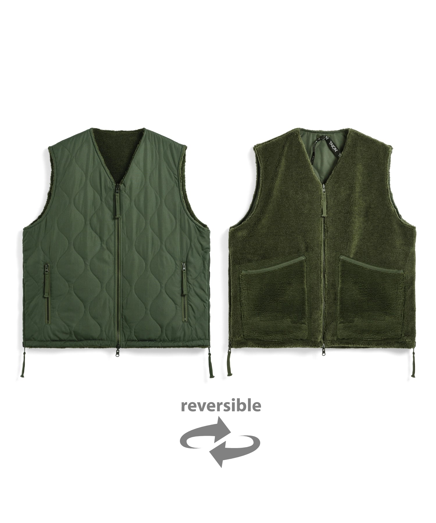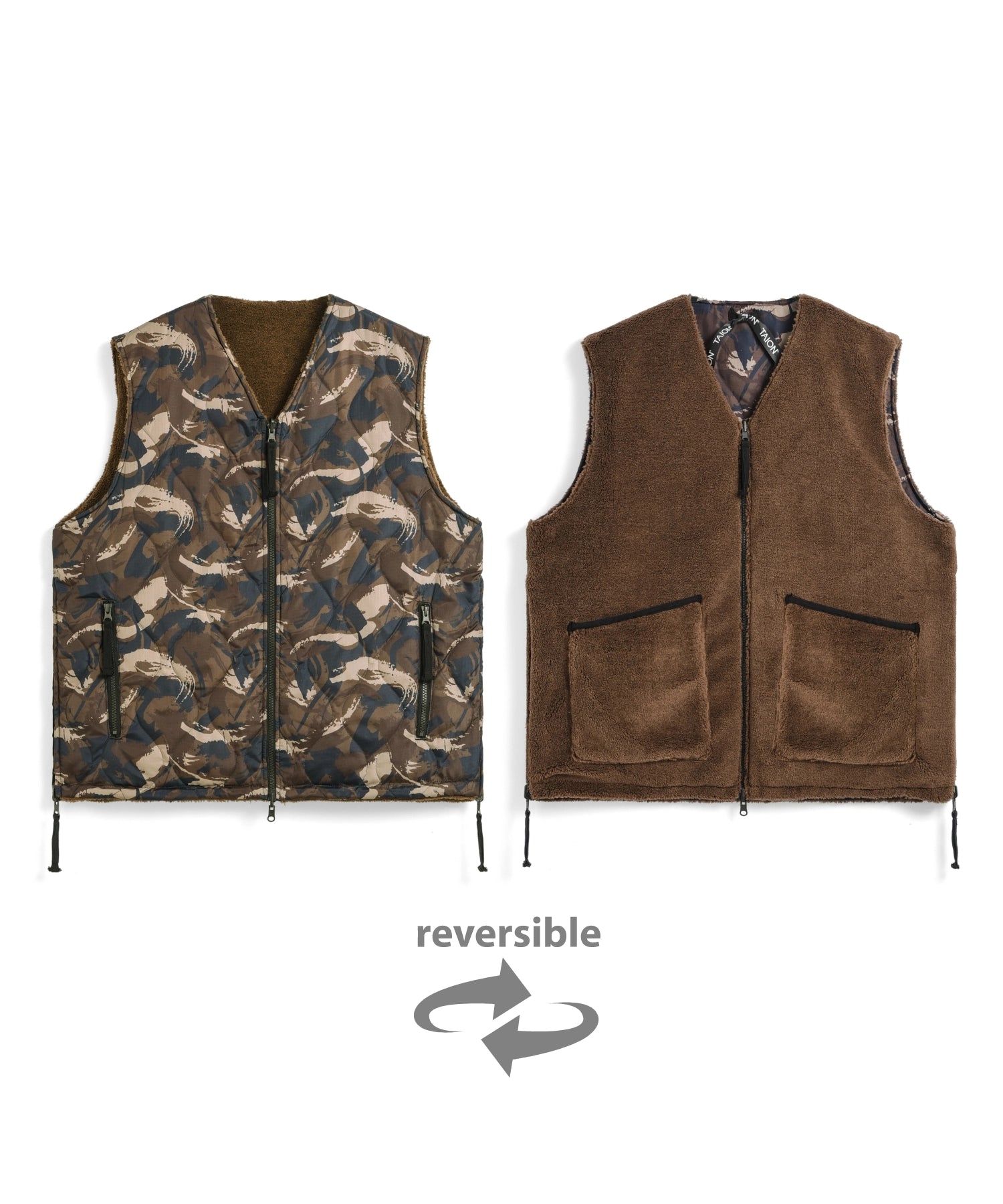 보온성과 활용도를 모두 갖춘 리버서블 밀리터리 베스트입니다. 겉면은 5mm 립스탑 원단으로 내구성이 우수하고 800FP 고품질 덕다운을 사용해 단열성이 뛰어납니다. 안감은 부드럽고 포근한 마이크로 보아 원단을 사용하여, 따뜻하고 포근한 착용감입니다.