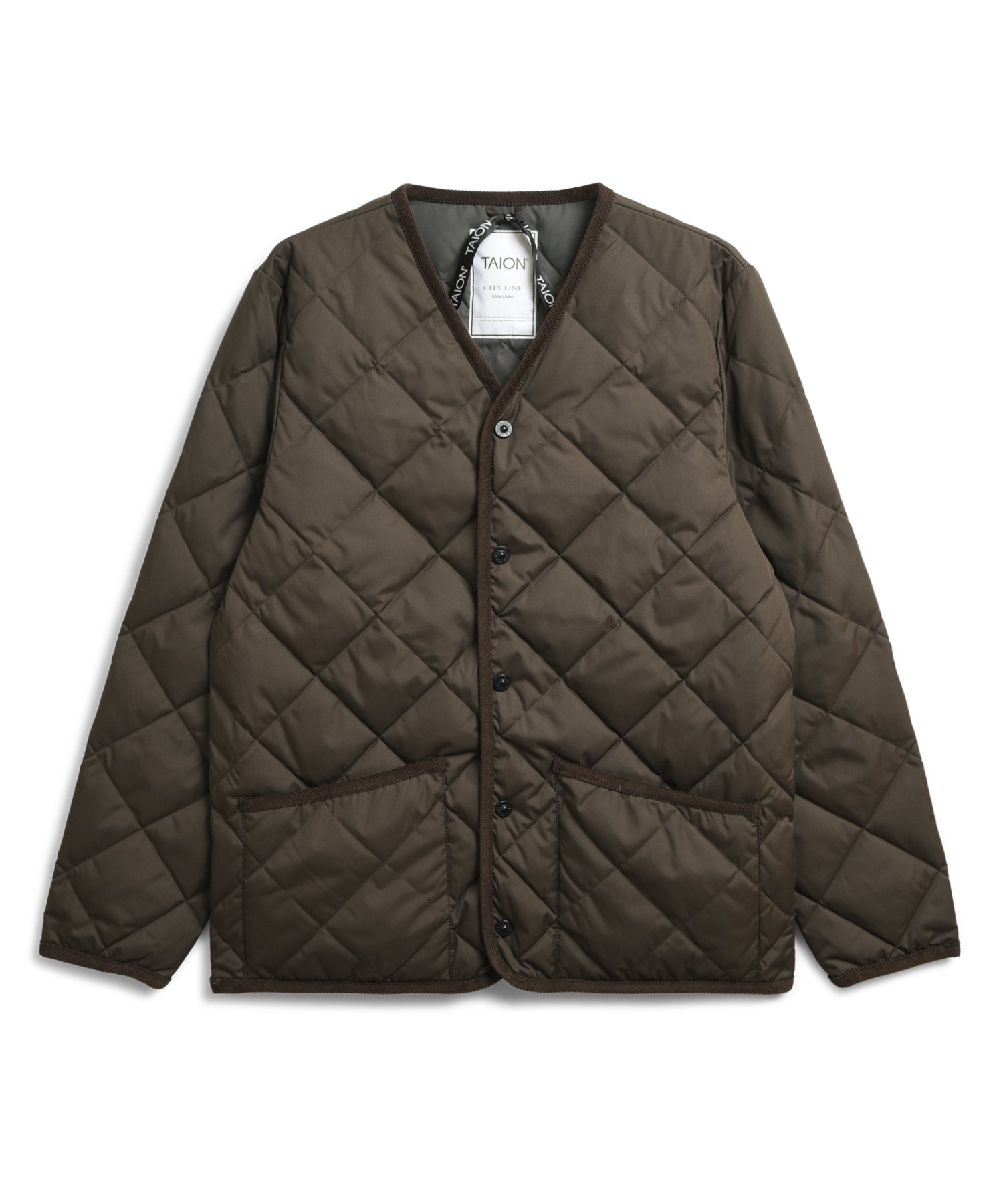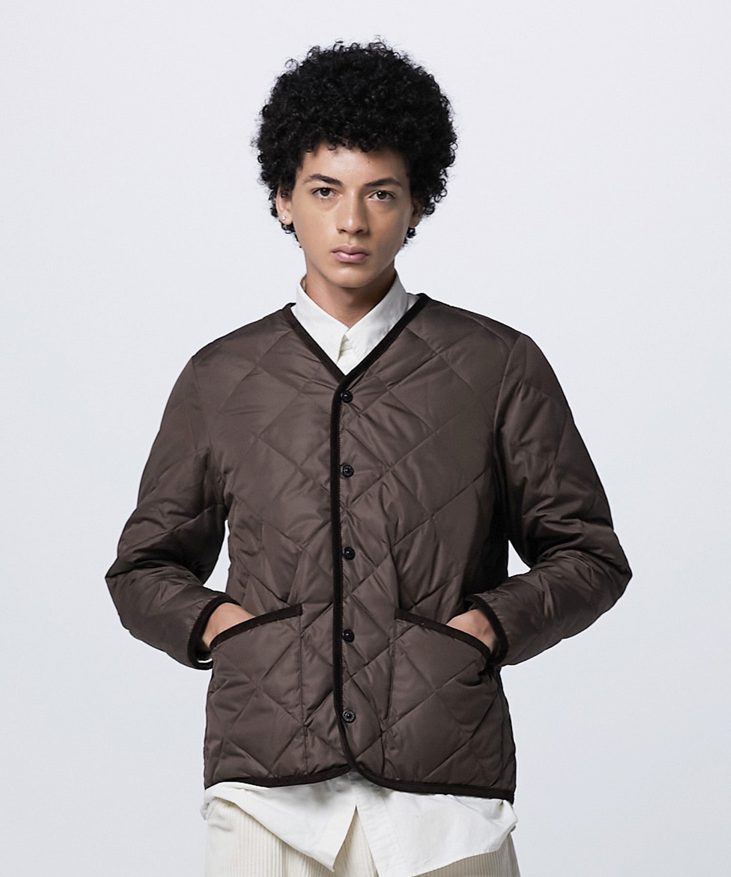 셔츠 위에 겹쳐 입거나 코트 안의 이너로 입기를 추천합니다. 씨티라인은 편안한 텐션 원단에 사선 퀼트를 추가하고 코듀로이 원단으로 파이핑 처리를 한 디자인입니다.