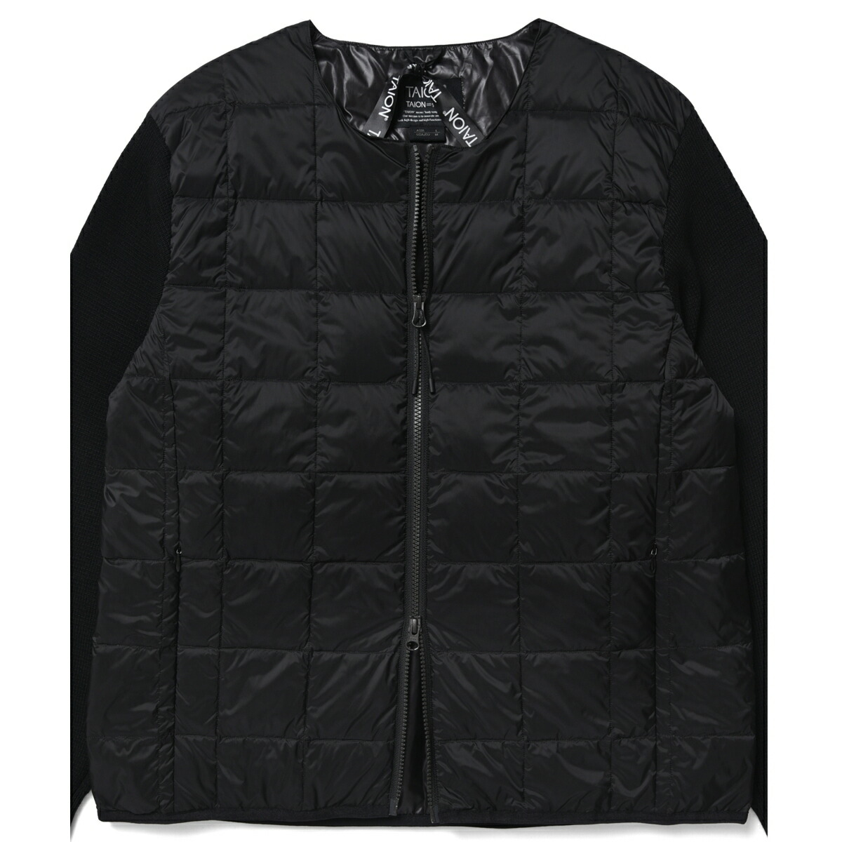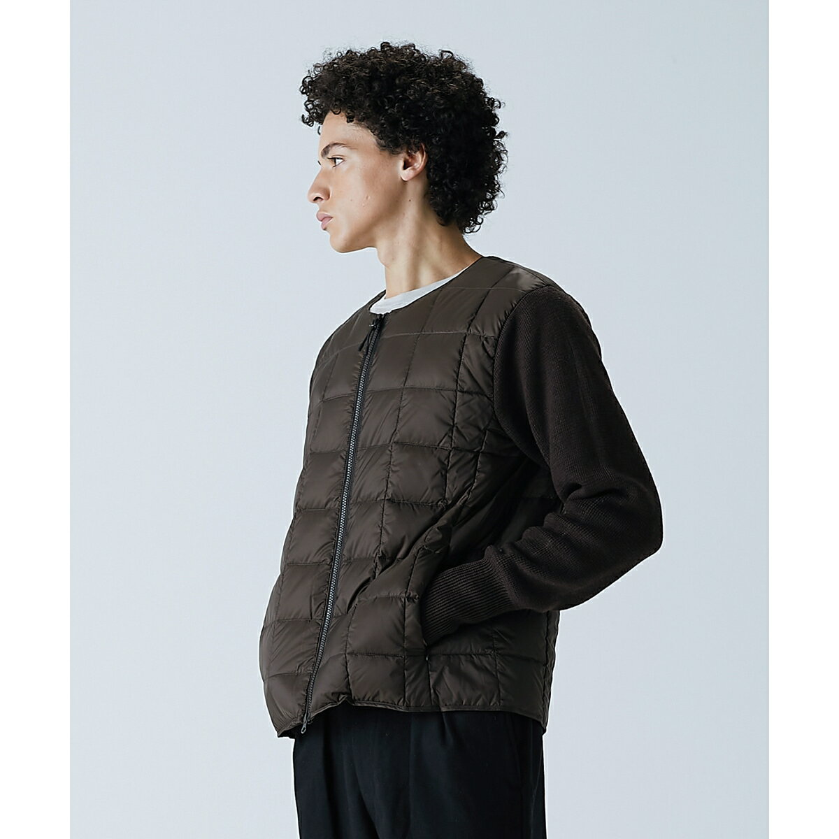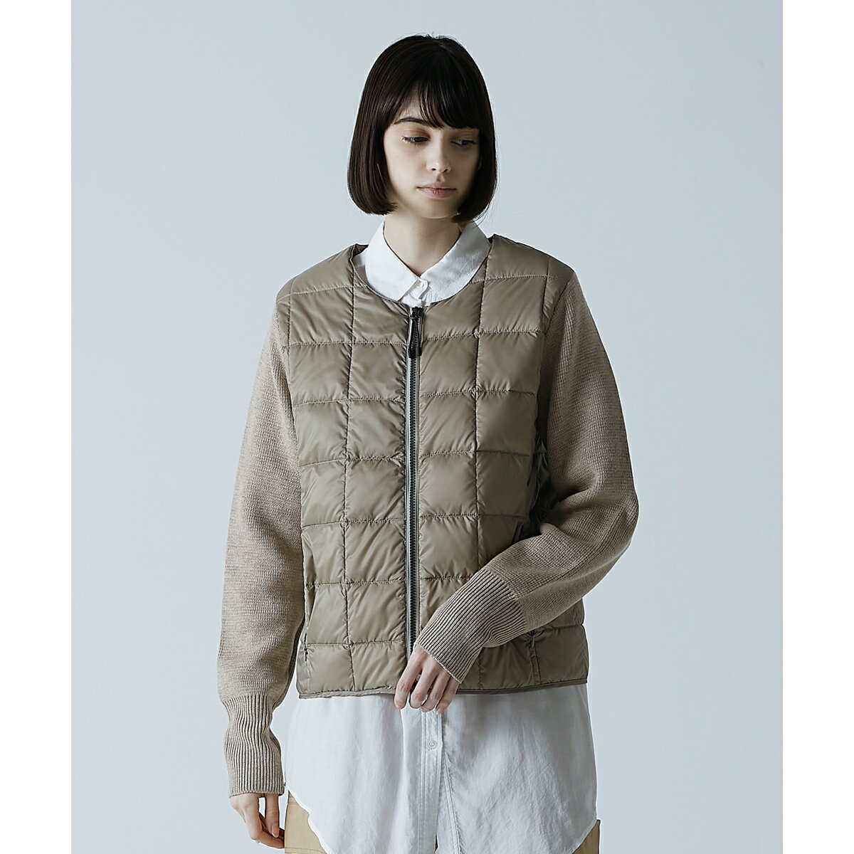 니트 소매가 달려 가디건처럼 입을 수 있는 이너다운입니다.