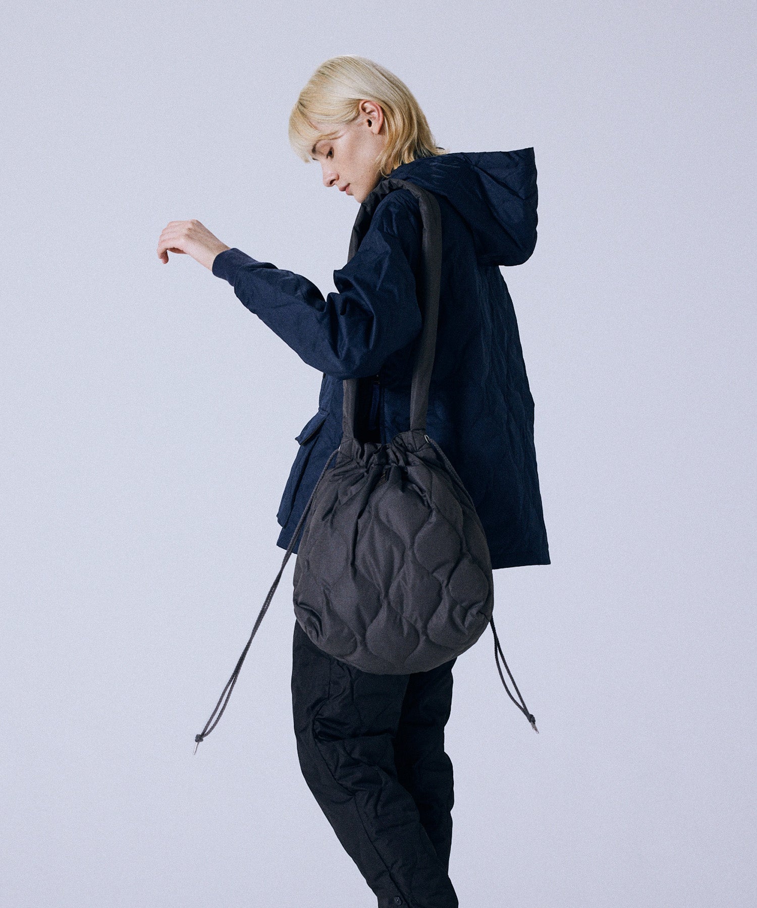 가방 입구를 잡아 당겨 실루엣을 조절할 수 있습니다.