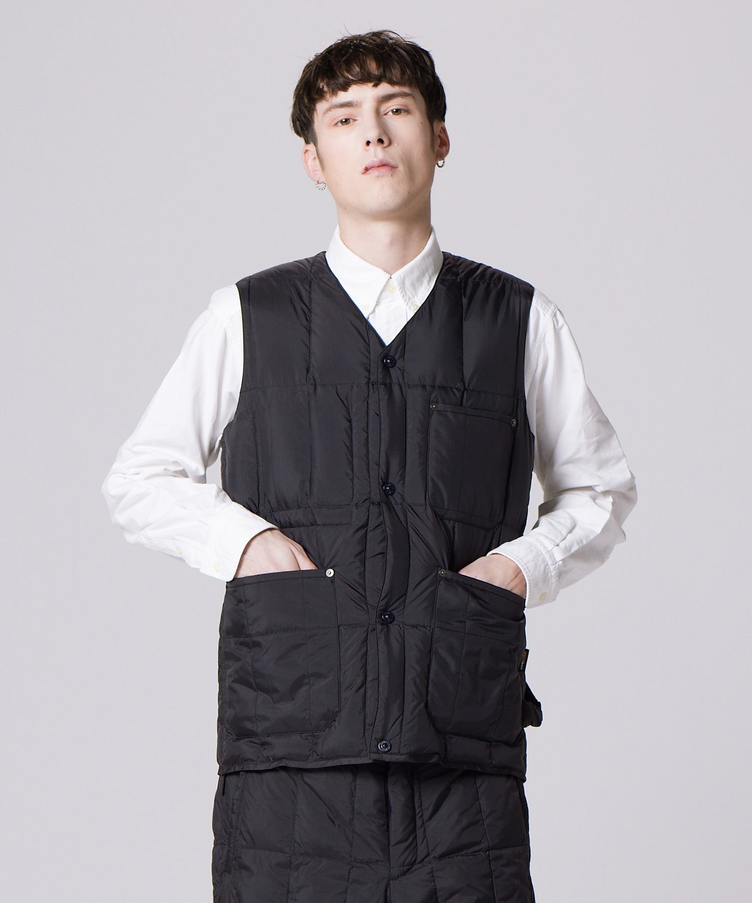 타이온 워크 브이넥 버튼 다운 패딩 조끼