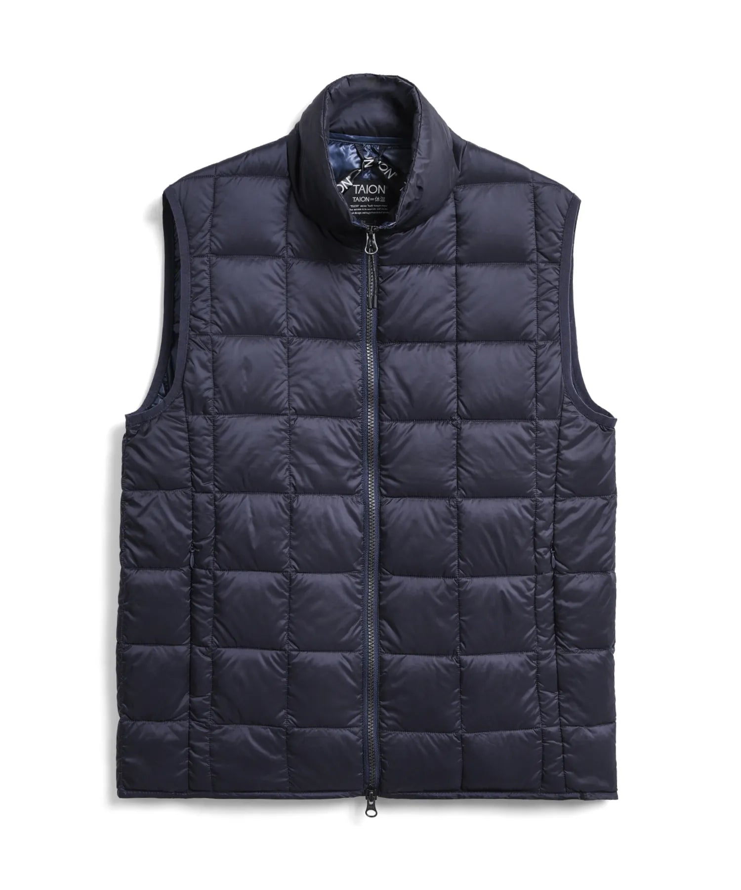TAION의 클래식 베이직 이너 다운은 T셔츠나 셔츠, 스웨트 셔츠 등, 재킷이나 코트 속에도 부담없이 입을 수 있는 가볍고 따뜻하고 심플한 디자인이 특징입니다.