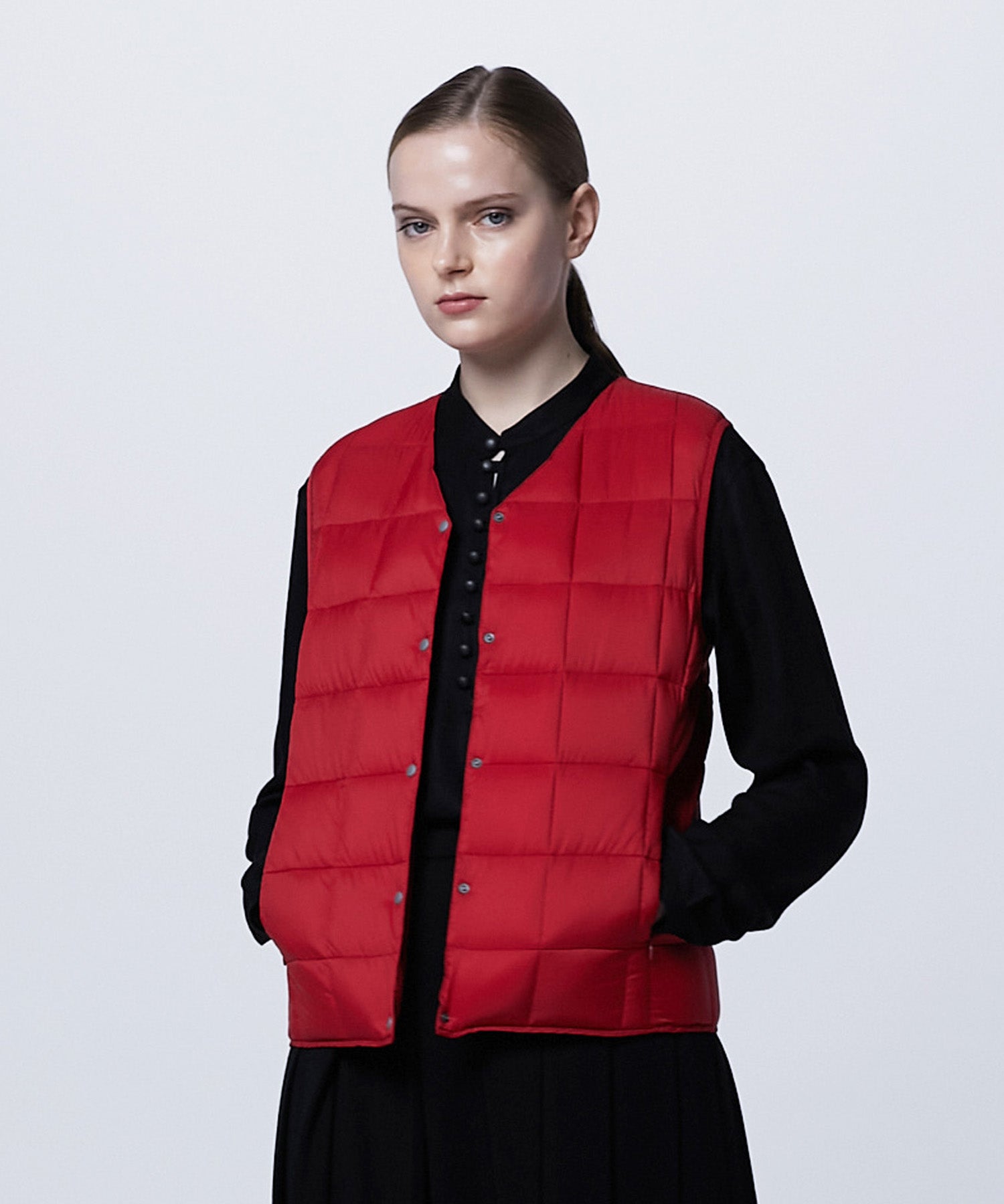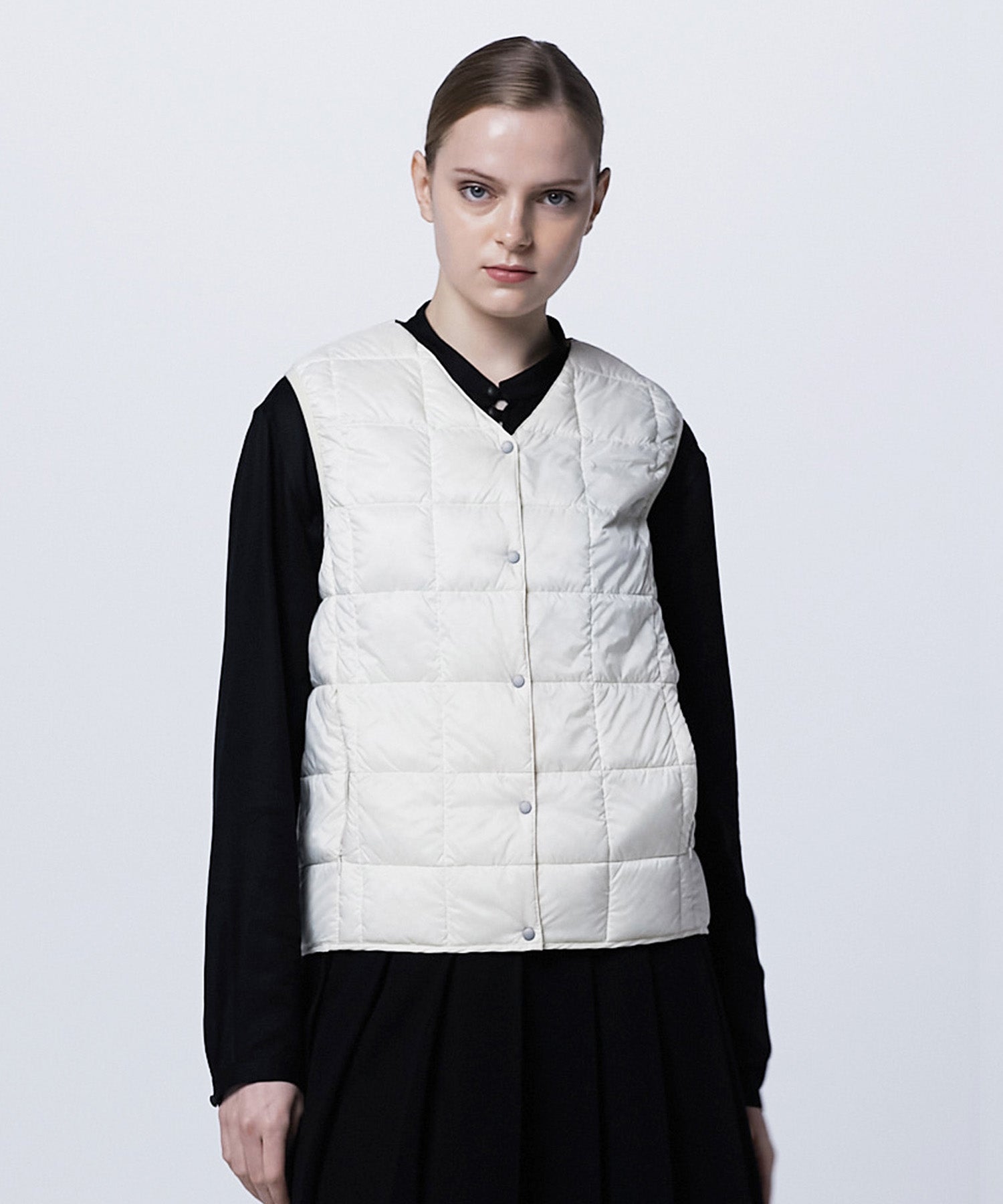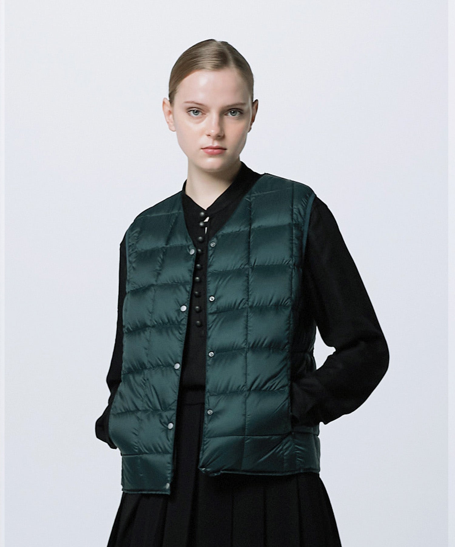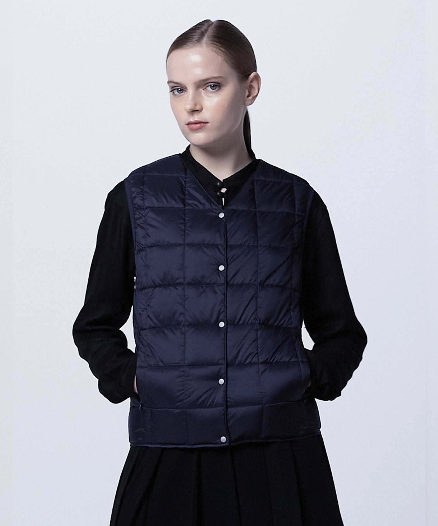 타이온의 베이직 이너 다운으로 가볍고 따뜻하며 입기 쉬운 디자인으로 재킷과 코트는 물론 타셔츠, 후드티 위에 입을 수 있습니다. 허리부분을 약간 강조하여 여성스러운 실루엣입니다. 이너다운의 특성으로 약간 타이트하게 만들어졌습니다. 여유롭게 착용하고 싶다면 한 사이즈 업을 추천합니다.