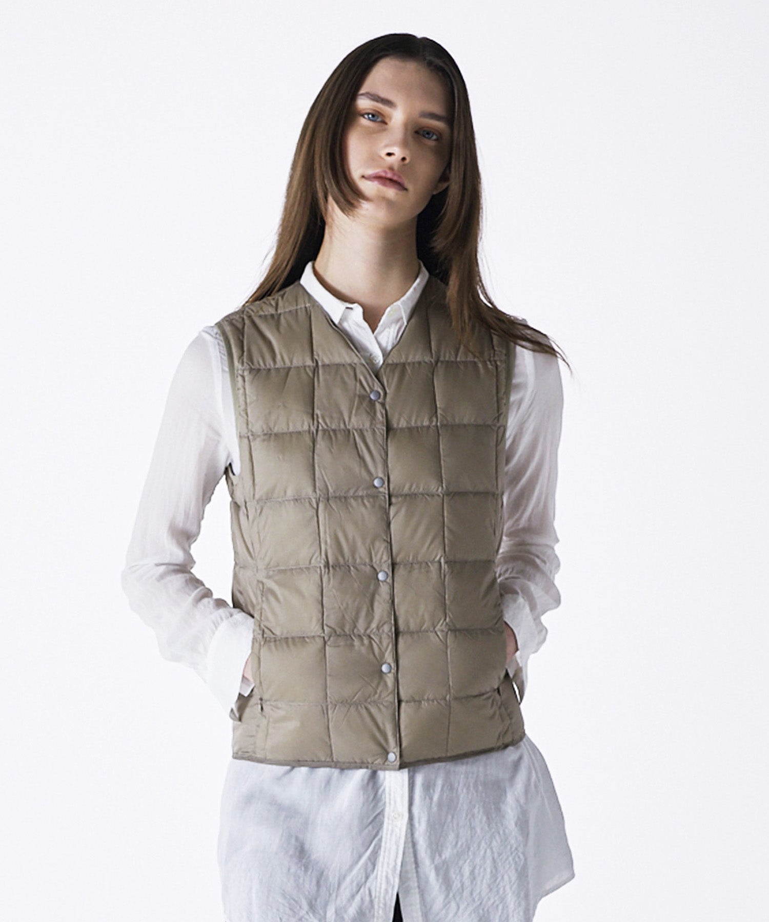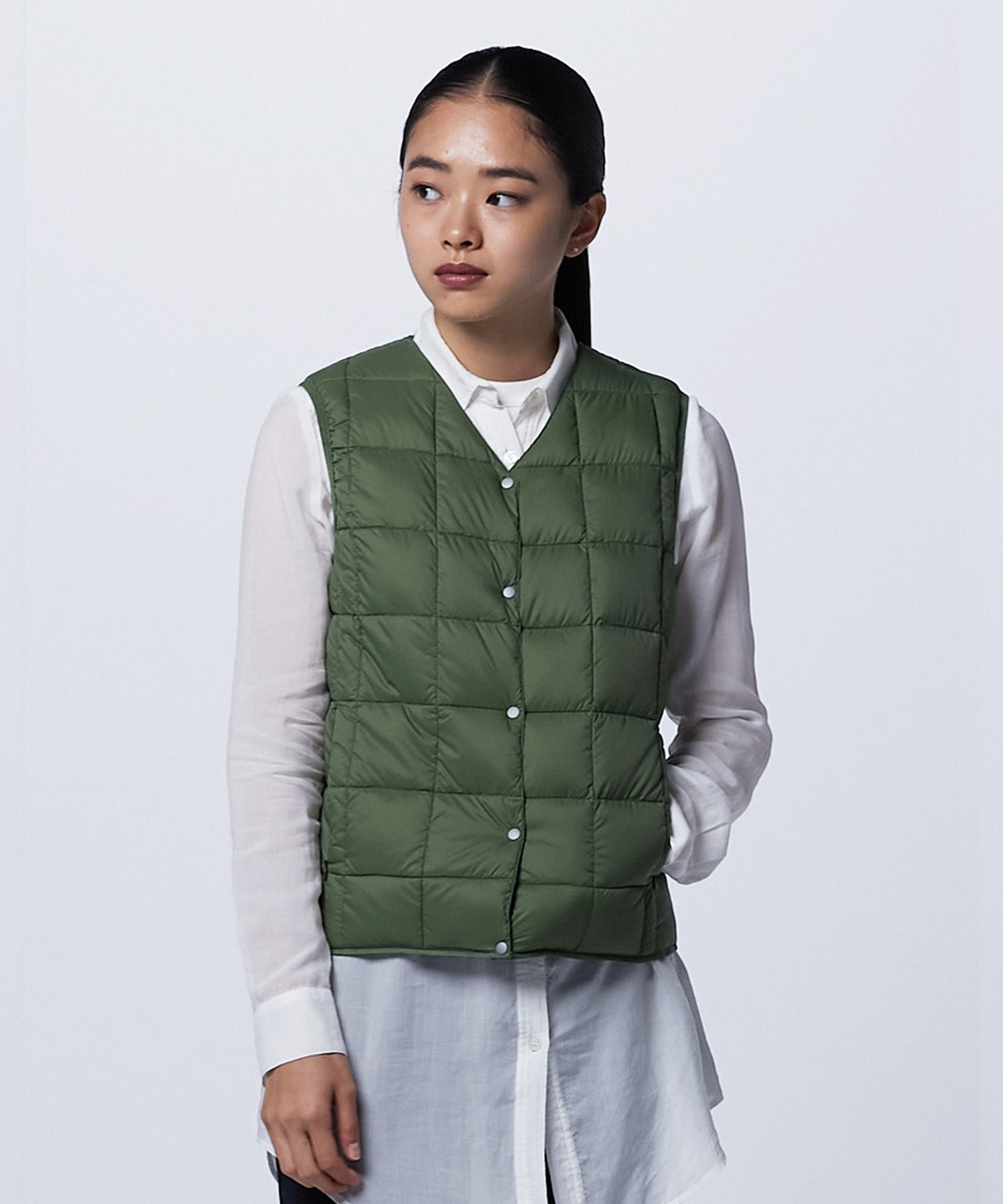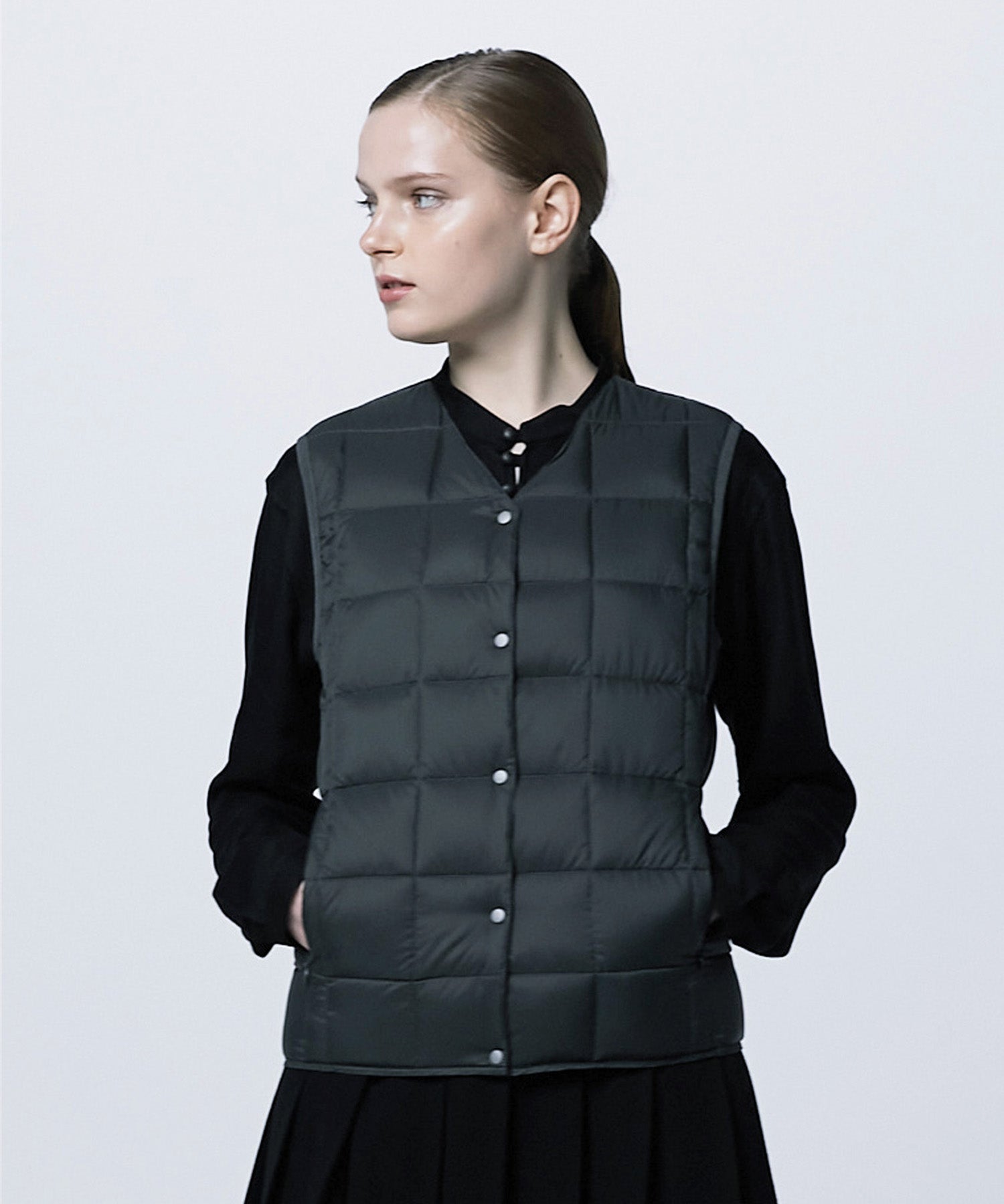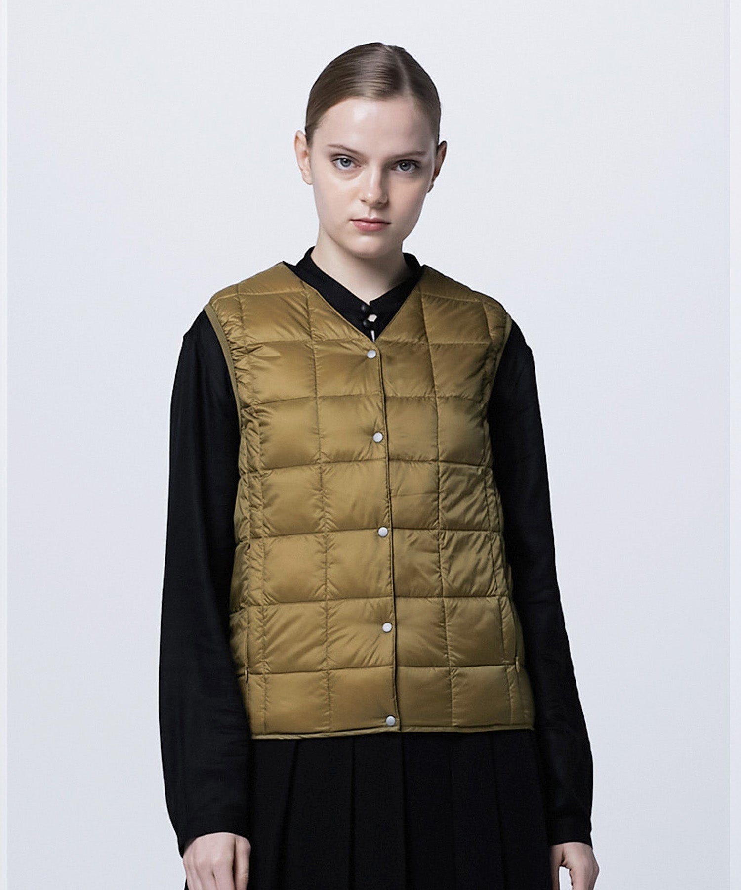 타이온의 베이직 이너 다운으로 가볍고 따뜻하며 입기 쉬운 디자인으로 재킷과 코트는 물론 타셔츠, 후드티 위에 입을 수 있습니다. 허리부분을 약간 강조하여 여성스러운 실루엣입니다. 이너다운의 특성으로 약간 타이트하게 만들어졌습니다. 여유롭게 착용하고 싶다면 한 사이즈 업을 추천합니다.