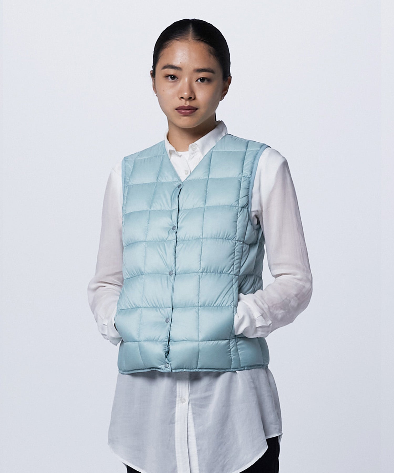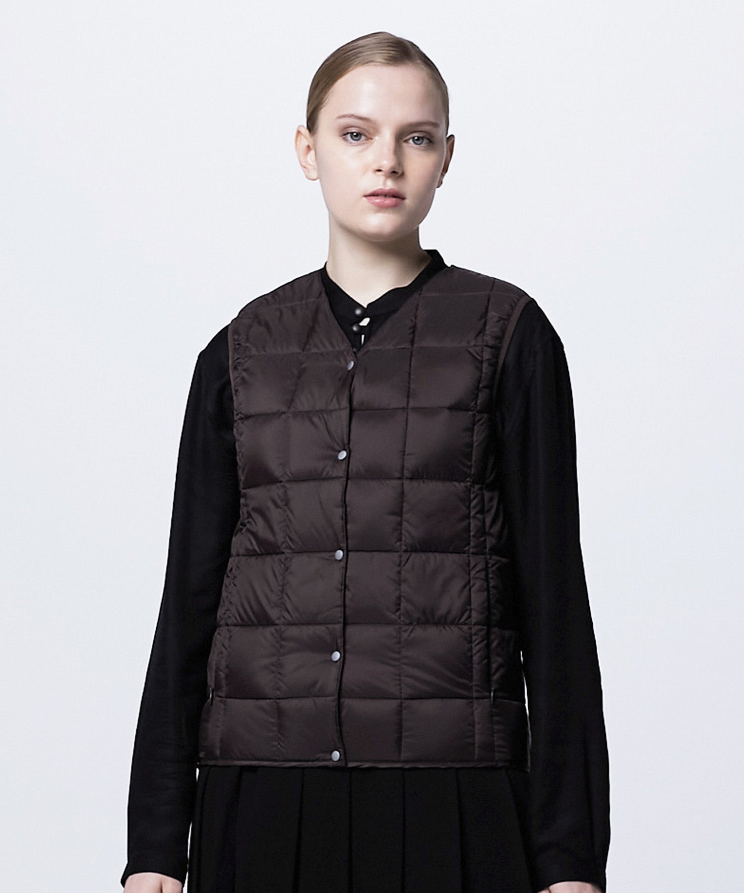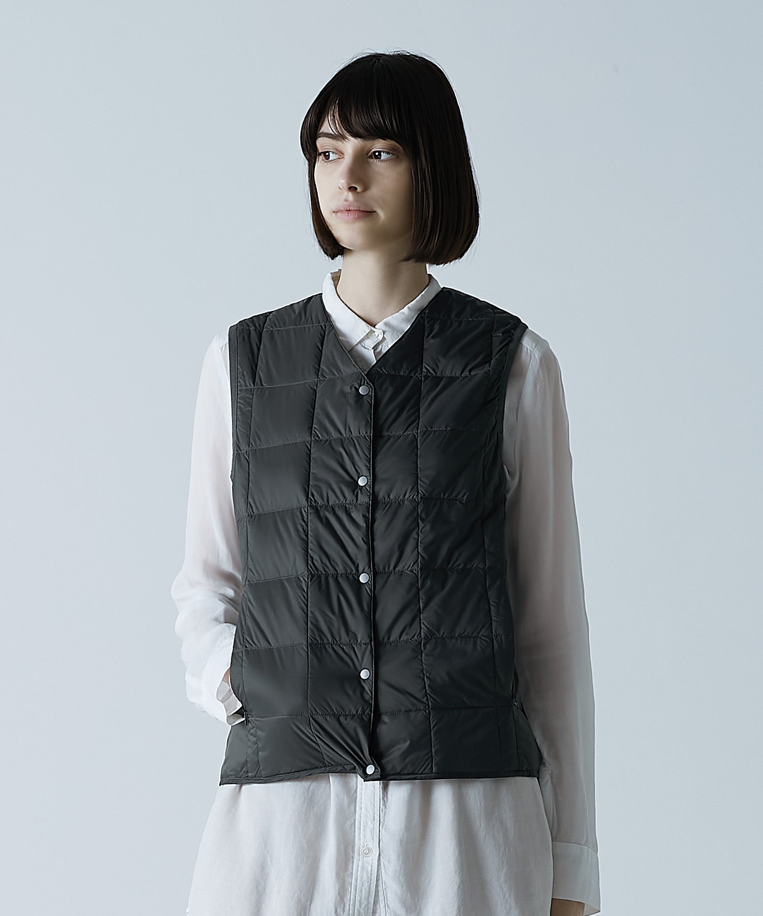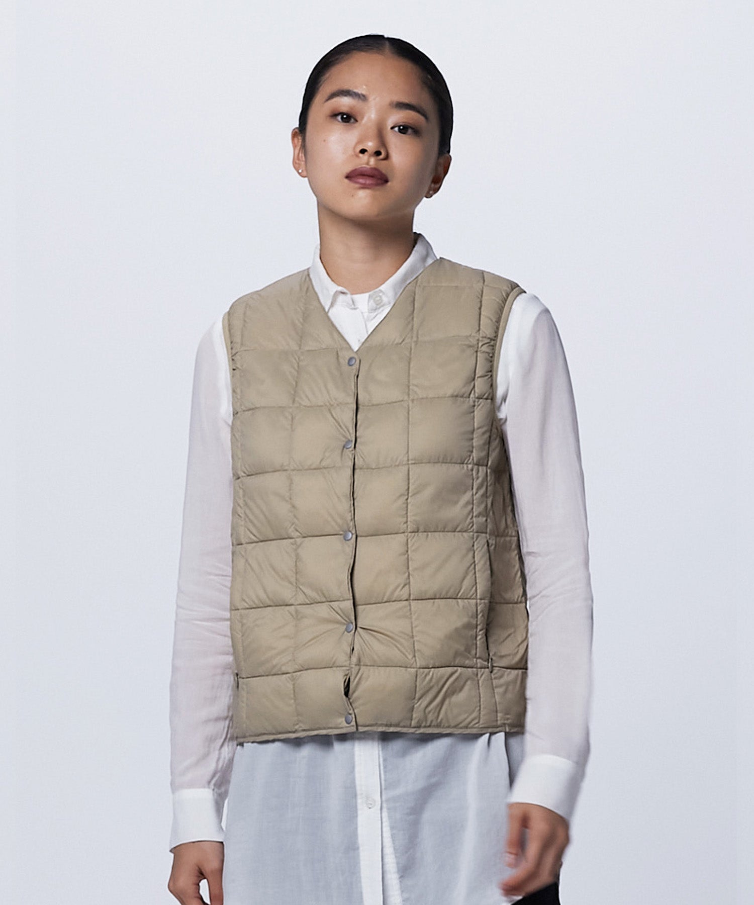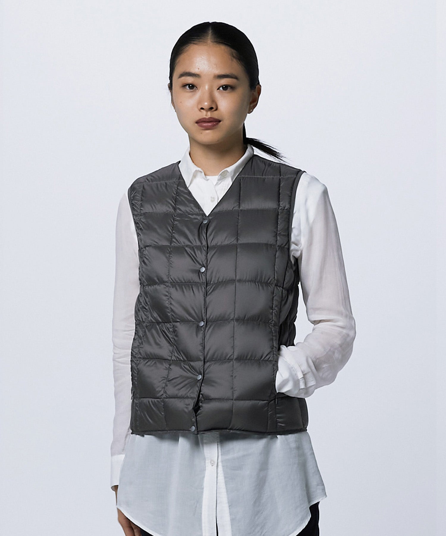 타이온의 베이직 이너 다운으로 가볍고 따뜻하며 입기 쉬운 디자인으로 재킷과 코트는 물론 타셔츠, 후드티 위에 입을 수 있습니다. 허리부분을 약간 강조하여 여성스러운 실루엣입니다. 이너다운의 특성으로 약간 타이트하게 만들어졌습니다. 여유롭게 착용하고 싶다면 한 사이즈 업을 추천합니다.