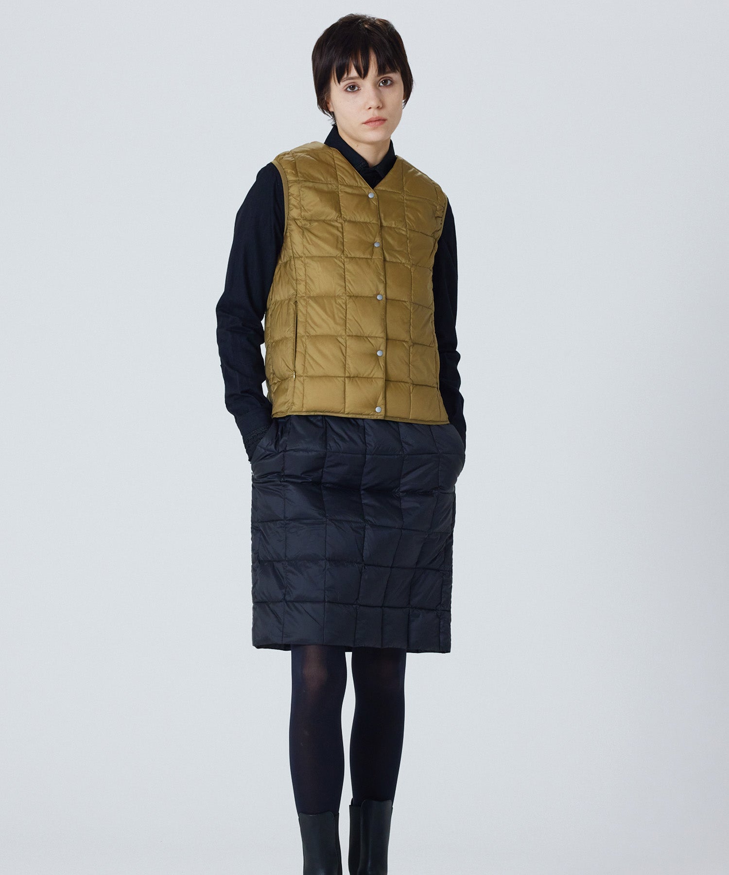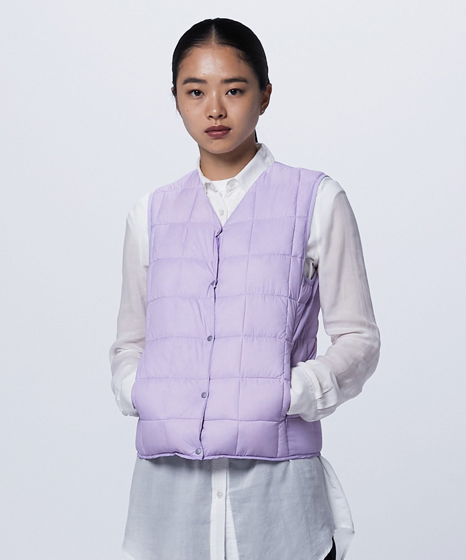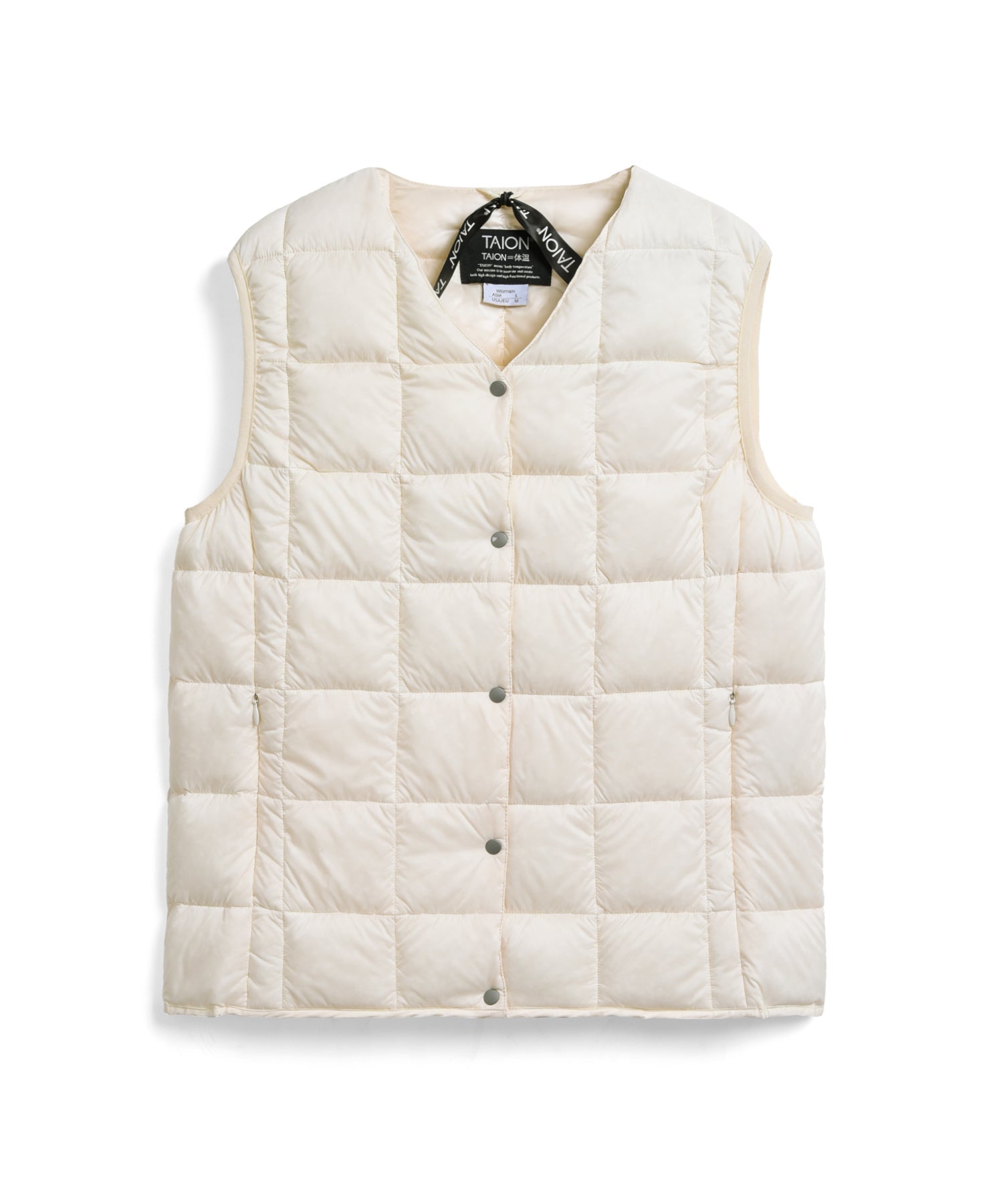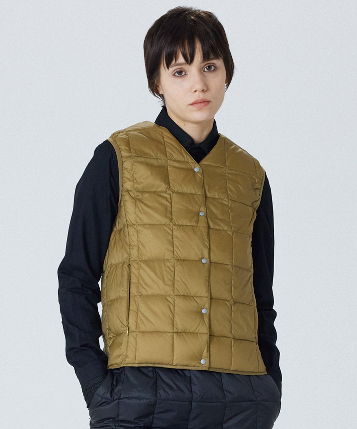타이온의 베이직 이너 다운으로 가볍고 따뜻하며 입기 쉬운 디자인으로 재킷과 코트는 물론 타셔츠, 후드티 위에 입을 수 있습니다. 허리부분을 약간 강조하여 여성스러운 실루엣입니다. 이너다운의 특성으로 약간 타이트하게 만들어졌습니다. 여유롭게 착용하고 싶다면 한 사이즈 업을 추천합니다.