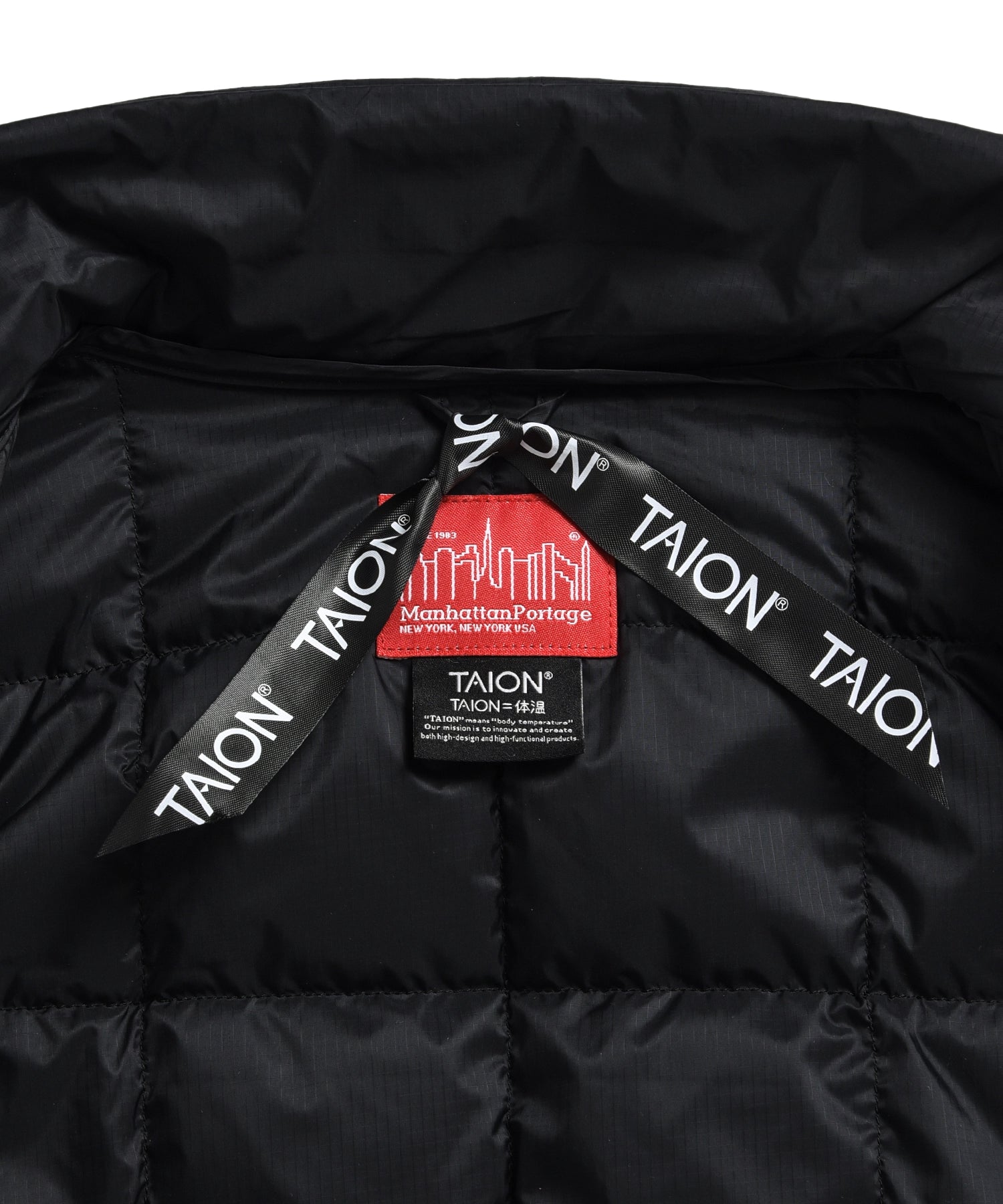 왼쪽 밑단의 ‘Manhattan Portage’ 붉은색 피스 네임 과 ‘TAION’ 검정색 피스 네임 이 포인트로 들어가 있습니다.
