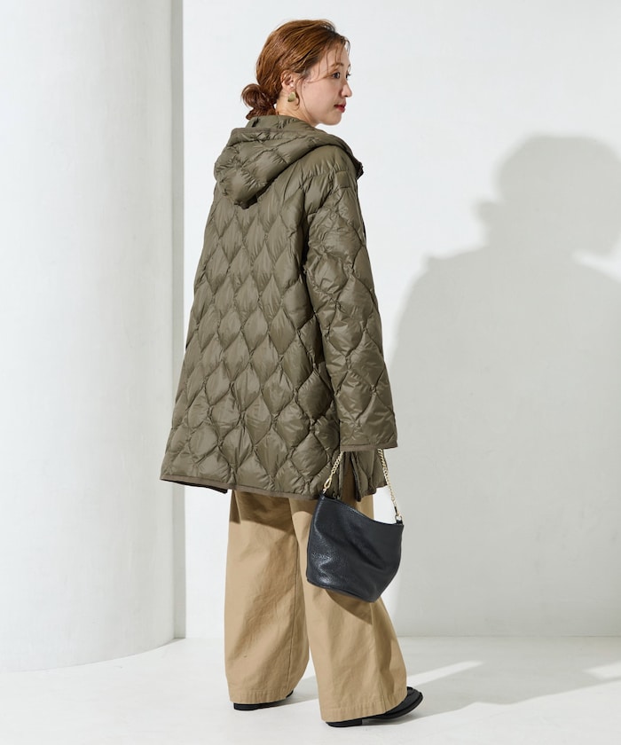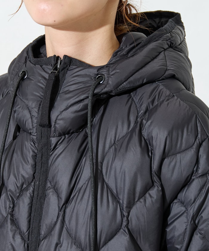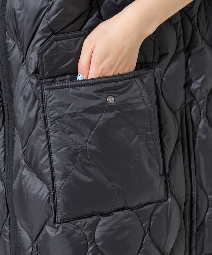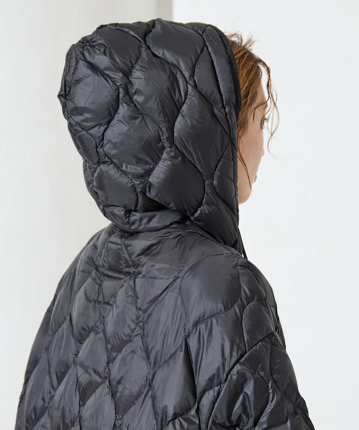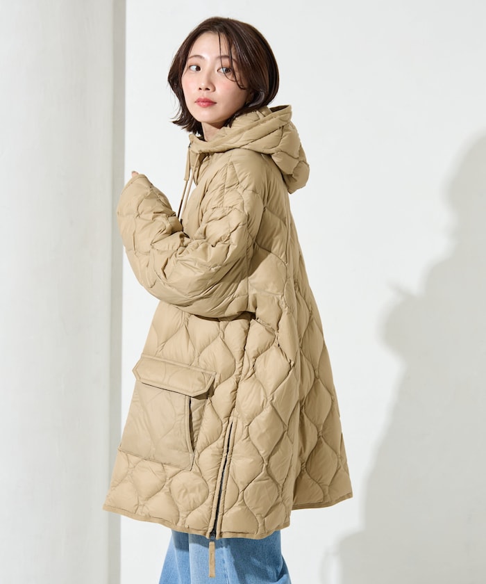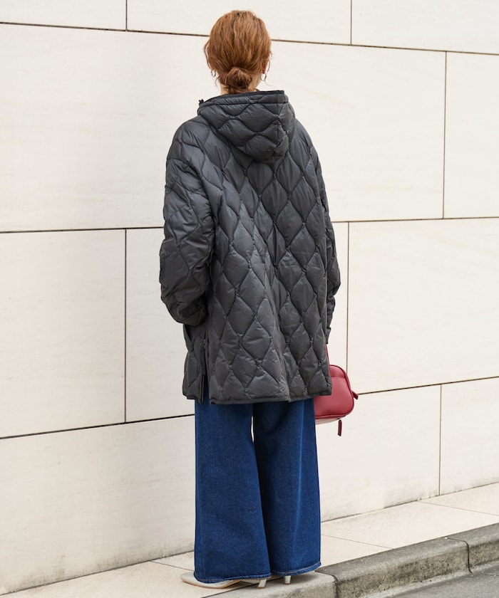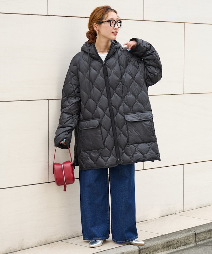 800FP 프리미엄 다운 충전재로 보온성이 뛰어난 다운 코트. 체형을 자연스럽게 커버하는 빅 실루엣입니다. 사이드 지퍼, 플랩 포켓, 핸드워머 포켓이 있습니다.