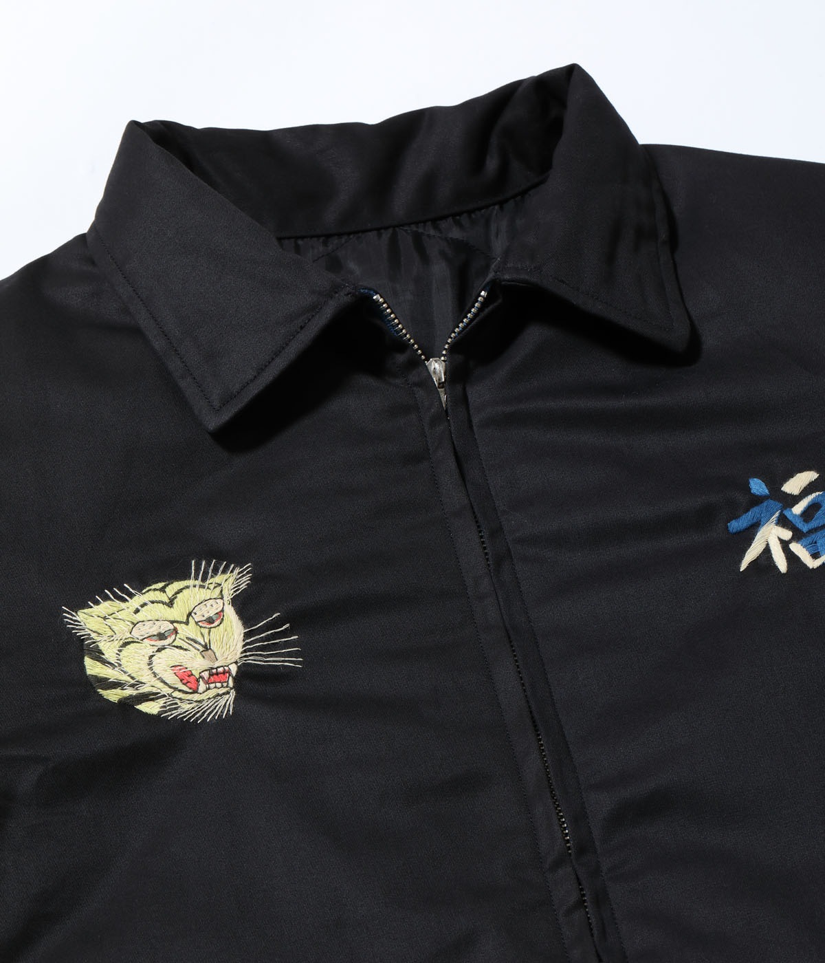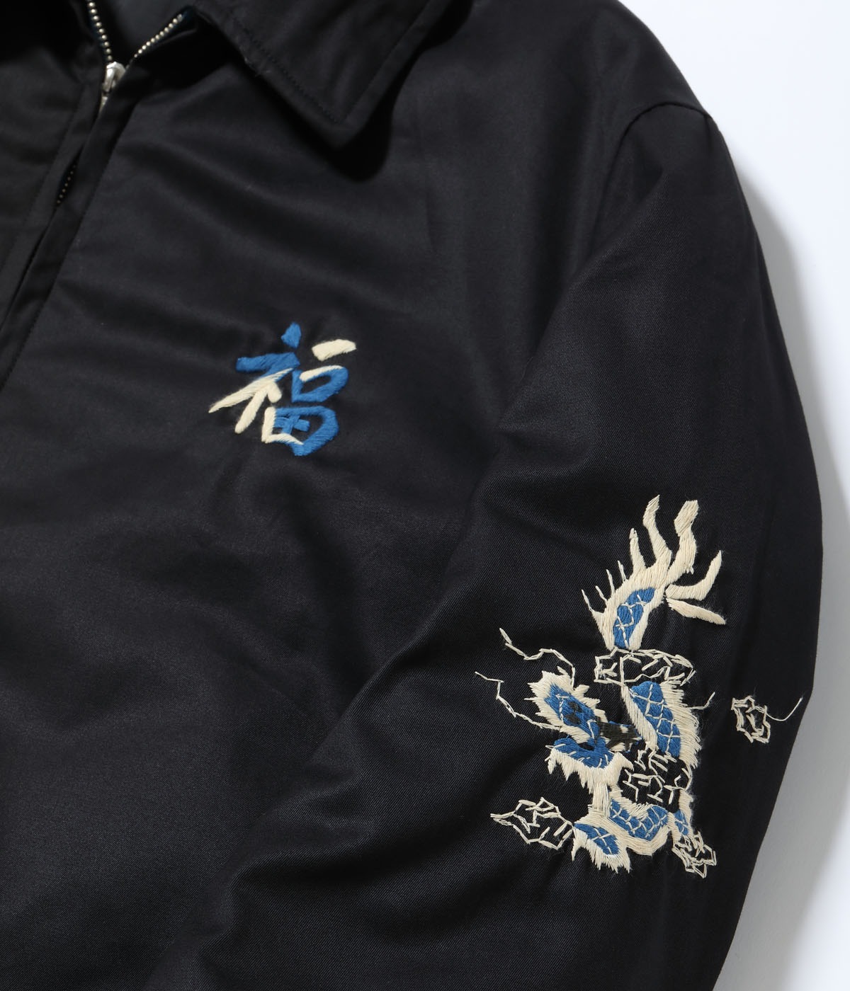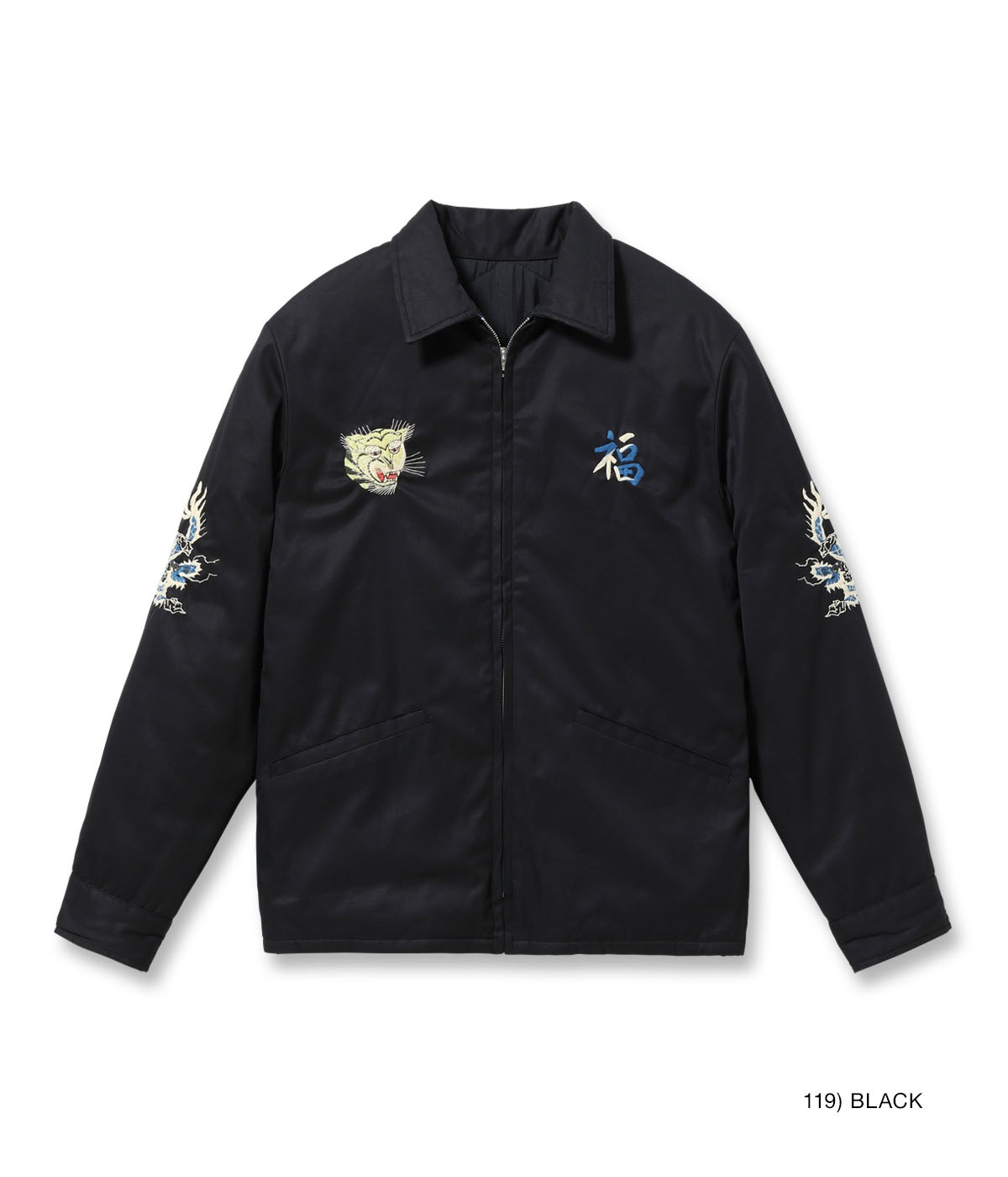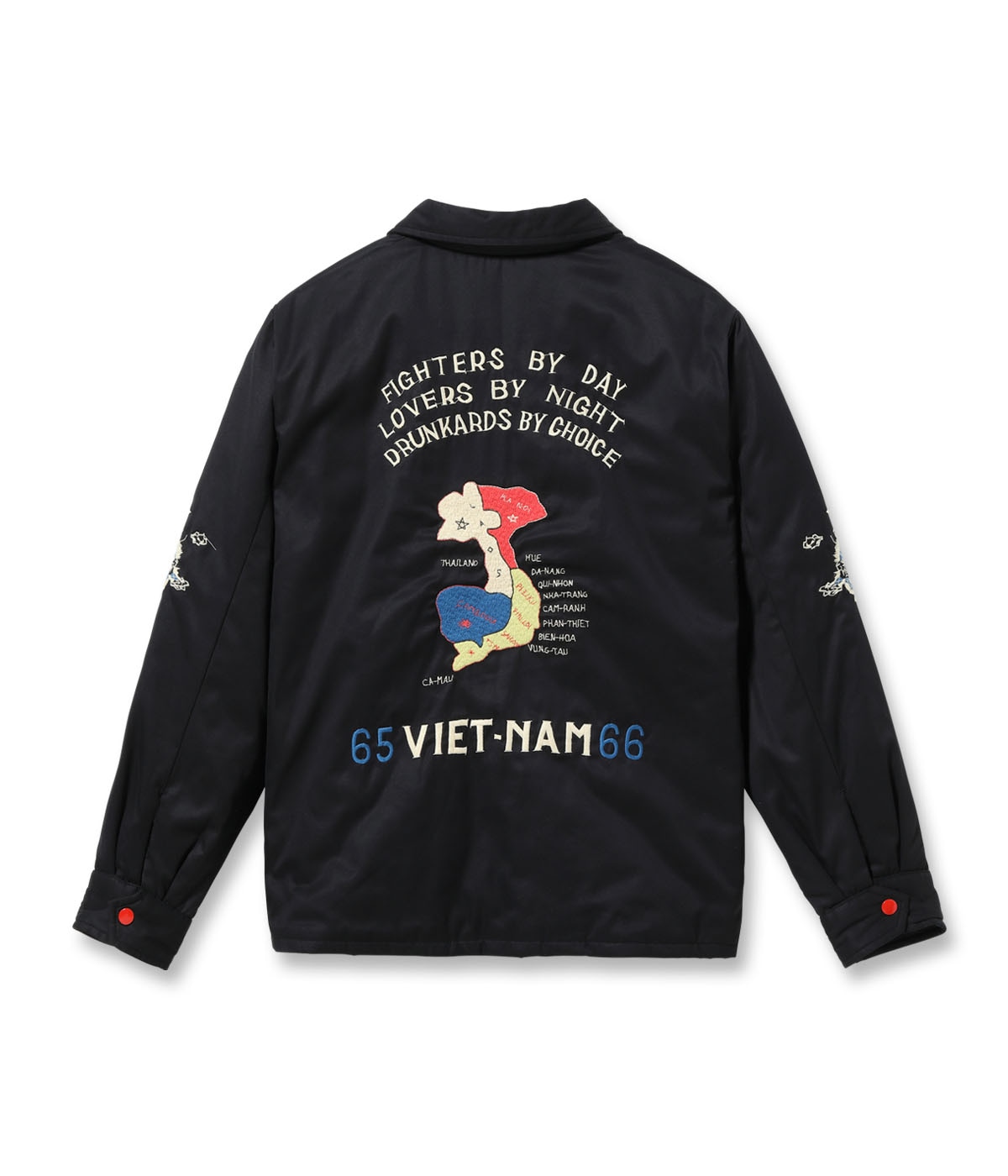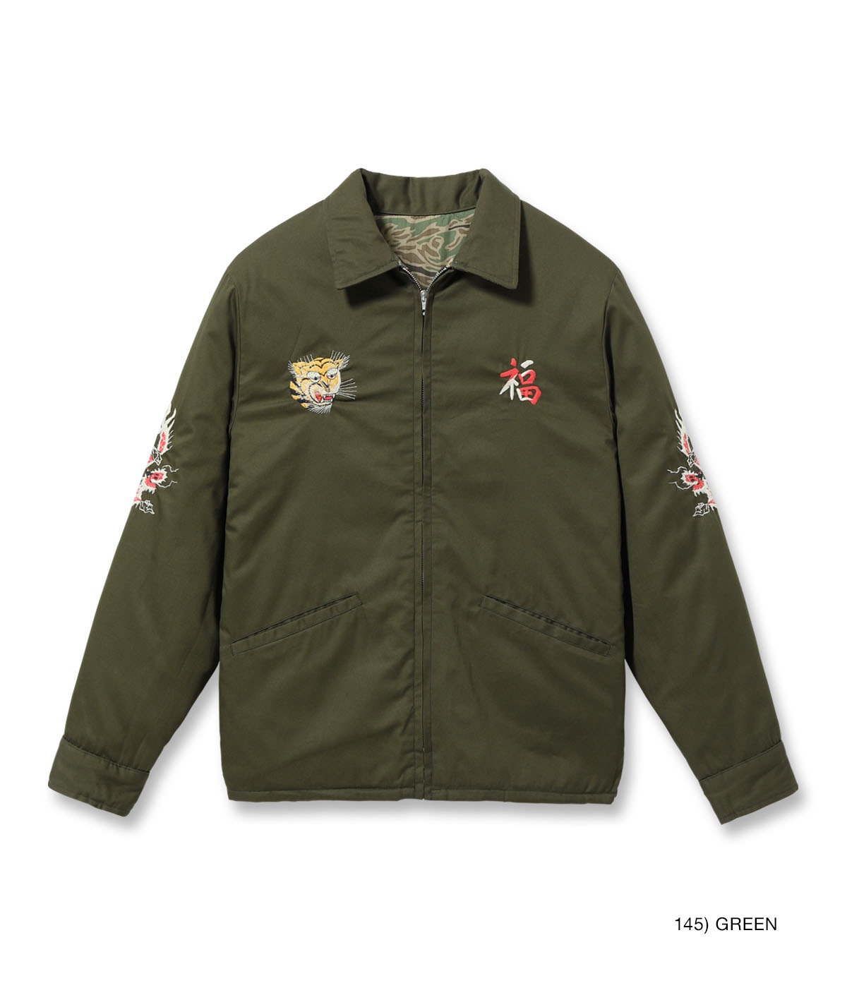 겉면의 코튼 트윌쪽에는, 가슴에 호랑이와 ‘복(福)’ 문자, 소매에는 용 문양, 등에는 베트남 지도 자수가 새겨진 클래식한 디자인의 리버시블 베트남 재킷.
