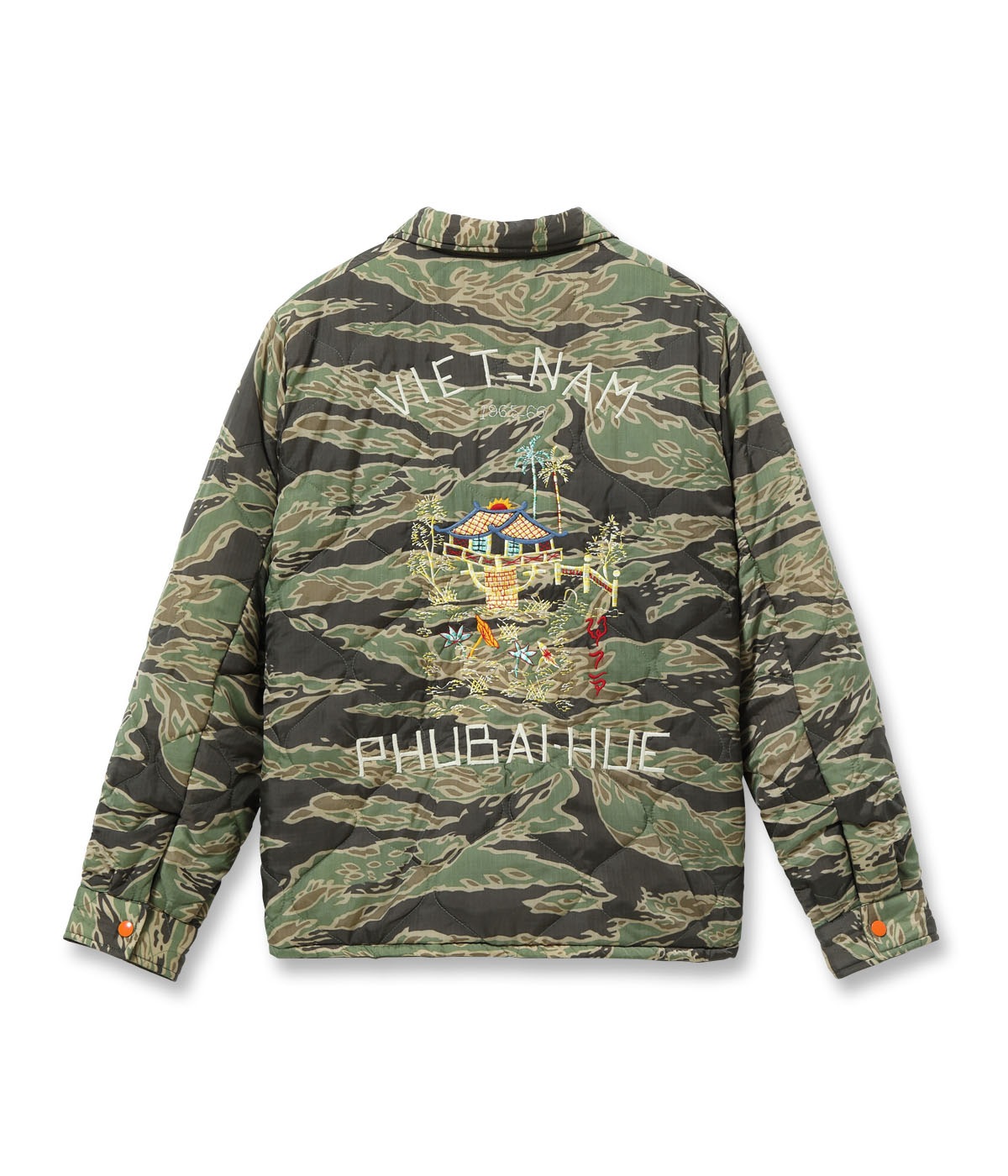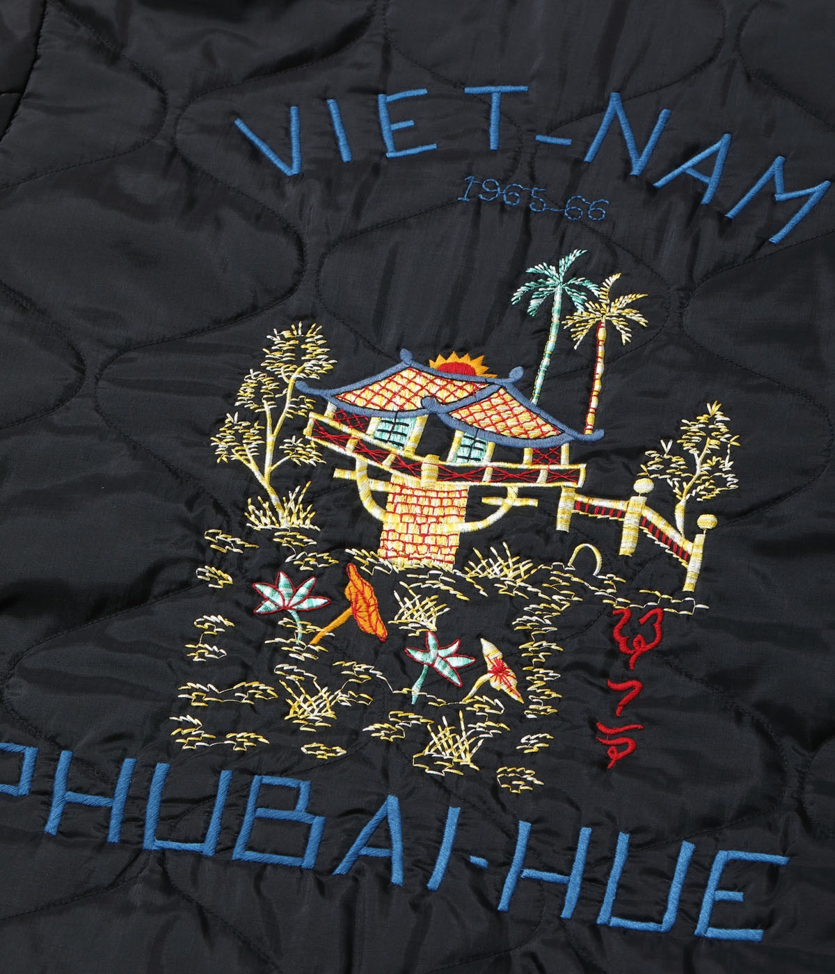 리버서블 안쪽의 나일론 립스톱 면에는 가슴에 성조기와 남베트남군 국기가 자수로 표현되어 있으며, 등에는 풍경 자수가 새겨져 있습니다.