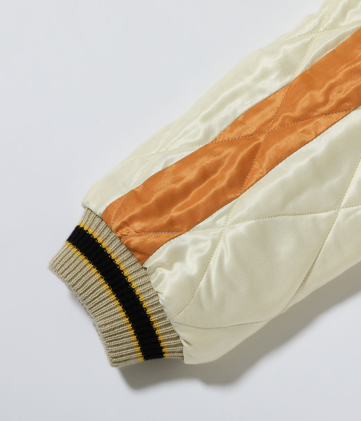 초기 스카쟌 대부분은 아세테이트 원단의 리버시블 사양이었지만, 이 제품은 벨벳 원단을 사용한 프리미엄 버전입니다. 기모감이 살아 있는 부드러운 촉감과 중간 두께의 충전재가 있어 보온성이 우수합니다.