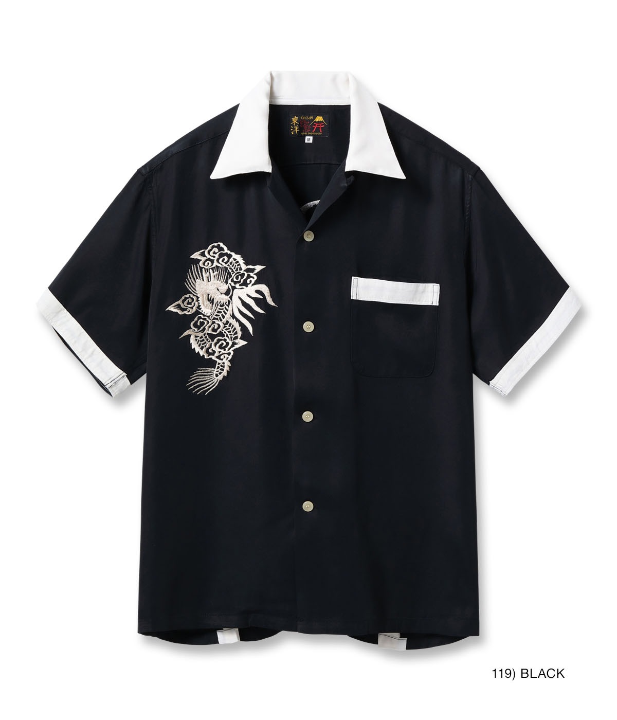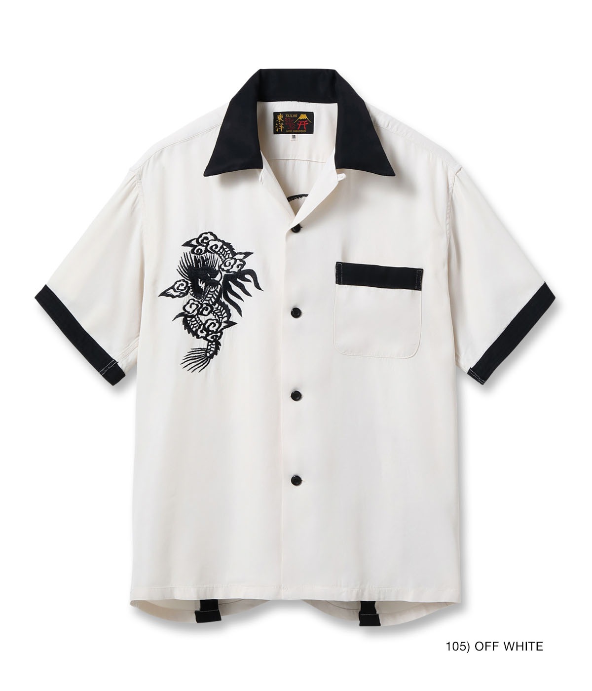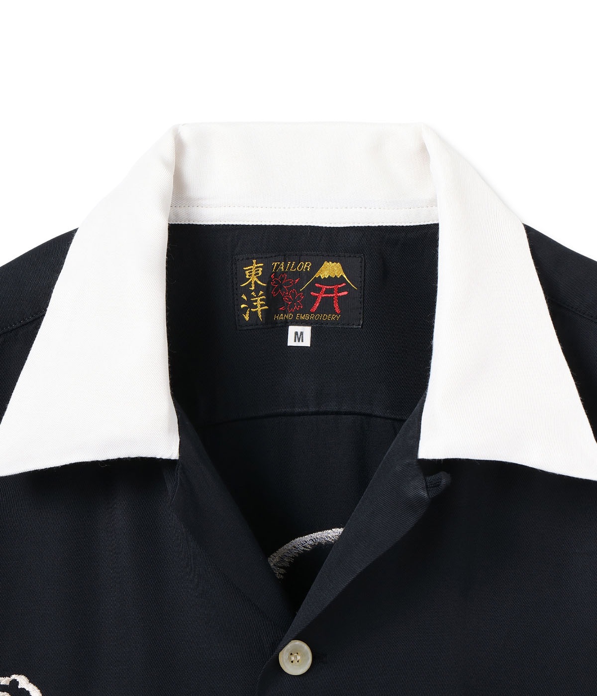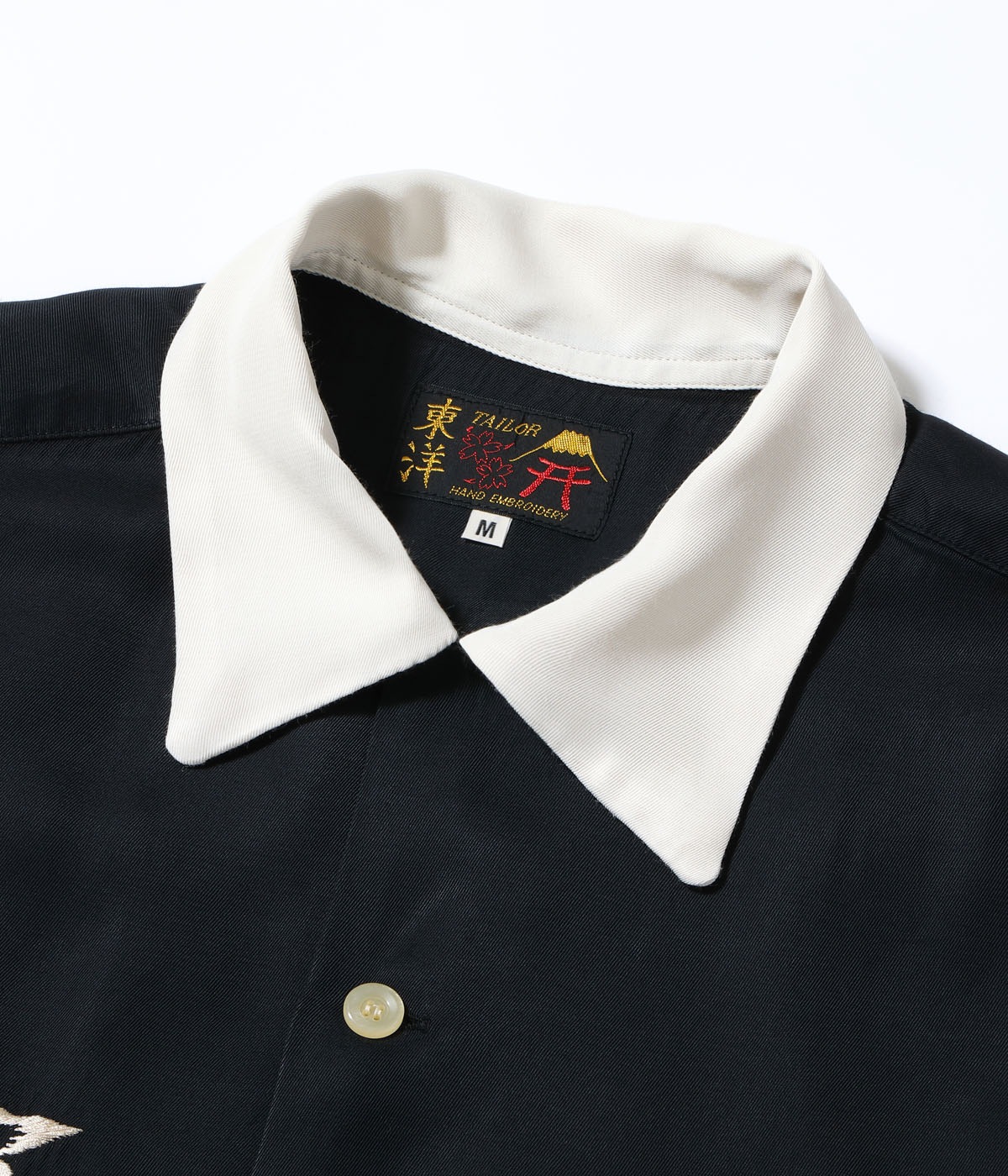 바늘땀의 방향을 자유자재로 조절하여, 입체적인 자수만으로 용의 위엄과 파도 물보라 를 섬세하게 표현한 1950년대 작품을 바탕으로 제작한 셔츠입니다.