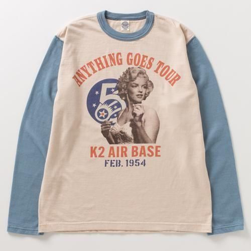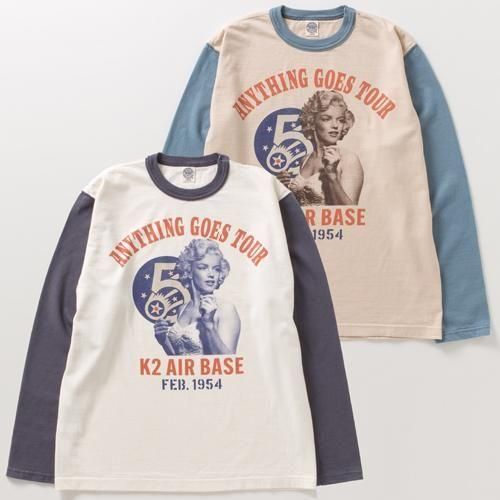 왼쪽 가슴에는 B-15C 커스텀 모델 재킷에 수놓아졌던 마릴린 먼로의 실제 사진을 프린트로 옮긴 투톤 컬러의 롱슬리브 티셔츠 입니다.