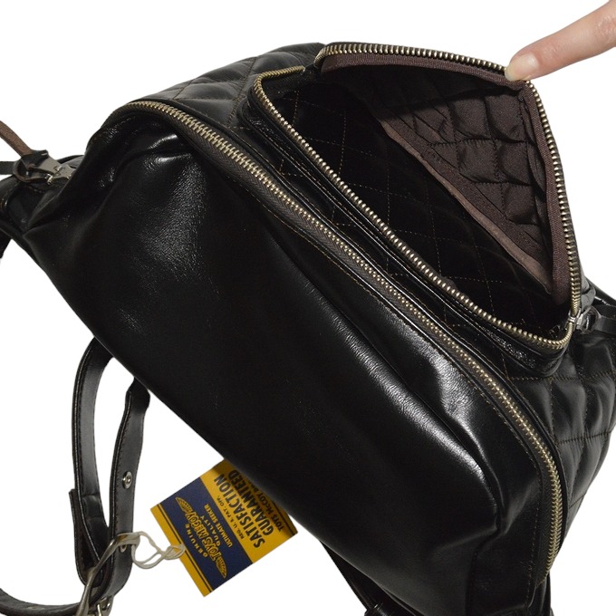 안쪽에 몸에 닿는 퀼팅 패드가 있어 장시간 사용해도 불편하지 않습니다. 전면 패널 전체에는 다이아몬드 모양 퀼팅 패드, 대형 지퍼 포켓이 있습니다.
