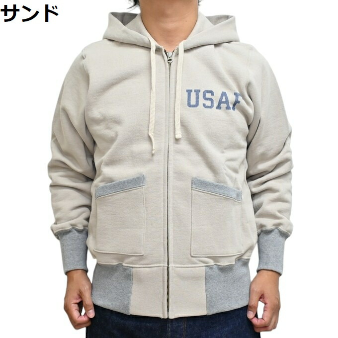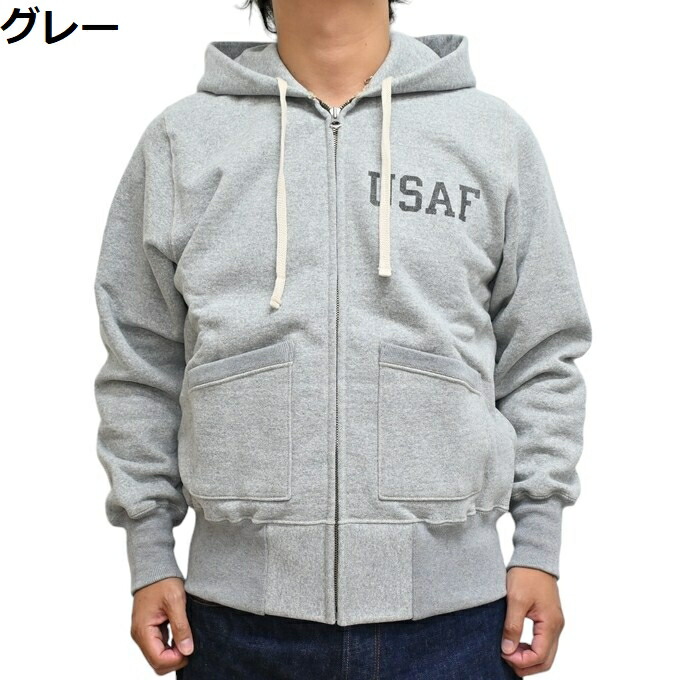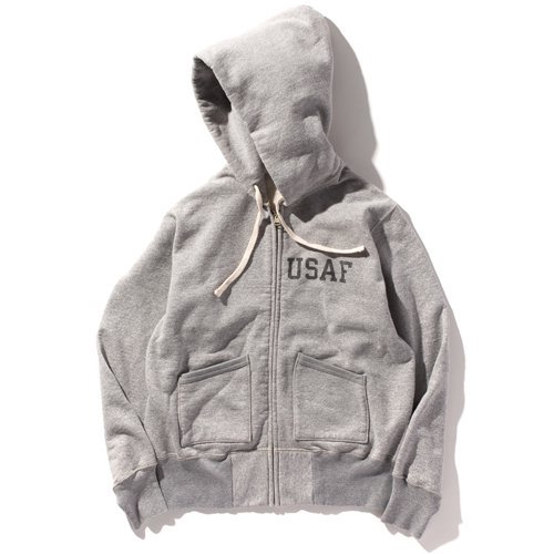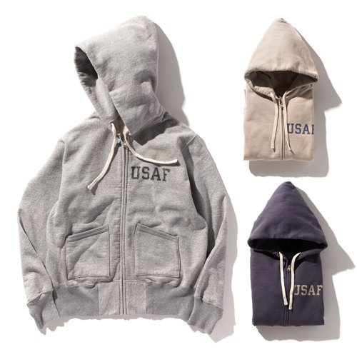 군인들은 출격 명령을 받았을 때 언제든지 신속하게 작전을 수행할 수 있도록 몸을 훈련합니다. 그들에게 튼튼하고 보온성이 뛰어난 풀 지퍼 스웨트셔츠 파카는 좋은 운동복이었습니다. 토이즈 맥코이는 오래된 빈티지 스웨트셔츠의 예를 따라 브러시드 패브릭, 두 개의 바늘 재봉, USAF 스텐실로 디자인되었습니다.