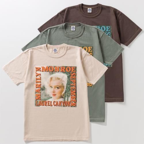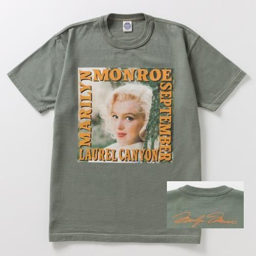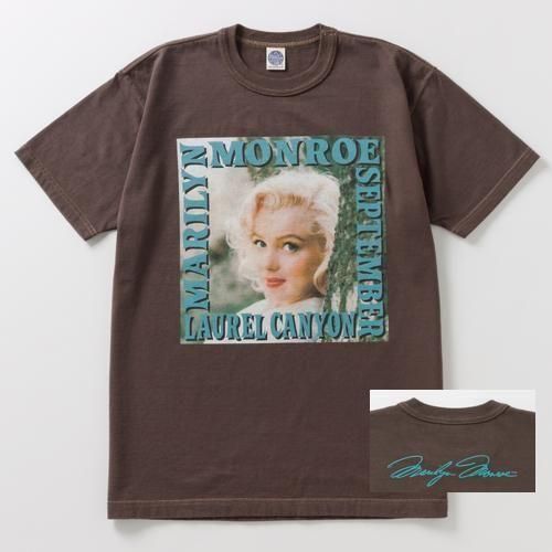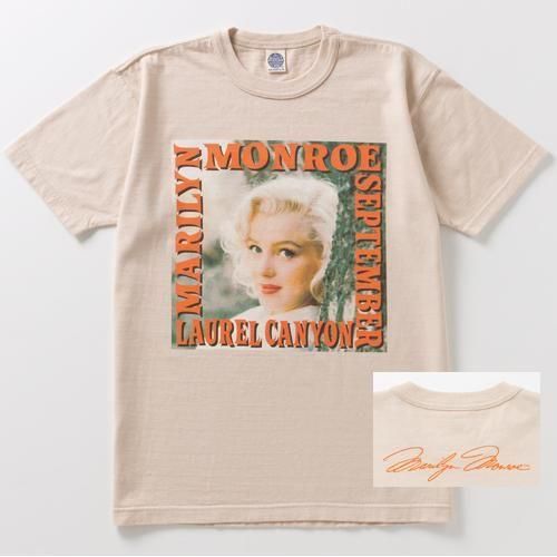 캘리포니아주 L.A. 교외의 로렐 캐니언에서 촬영된 마릴린 먼로의 사진을 프린트 한 티. 내추럴한 아메리칸·티를 느끼게 하는 디자인입니다.