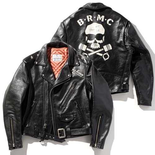 「THE WILD ONE」의 촬영으로부터의 희귀한 스틸 컷이나 정지 이미지, 그리고 현존하는 빈티지 피스를 꼼꼼히 조사하여 복각한 스페셜 라이더스 재킷. 신비한 가죽 브랜드 DURABLE의 CODE 33을 기반으로 합니다. 토이즈 맥코이는 같은 모델의 플레인 버전을 재현해, 재킷을 베이스로 한 스컬과 피스톤 ‘B.R.M.C.(Black Rebels Motorcycle Club)’의 스컬과 피스톤, ‘쟈니’ 페인트의 독특한 터치, 그리고 영화와 같은 나사로 잠그는 스타 스터드 등 같은 모델의 코스튬을 세세하게 재현했습니다.