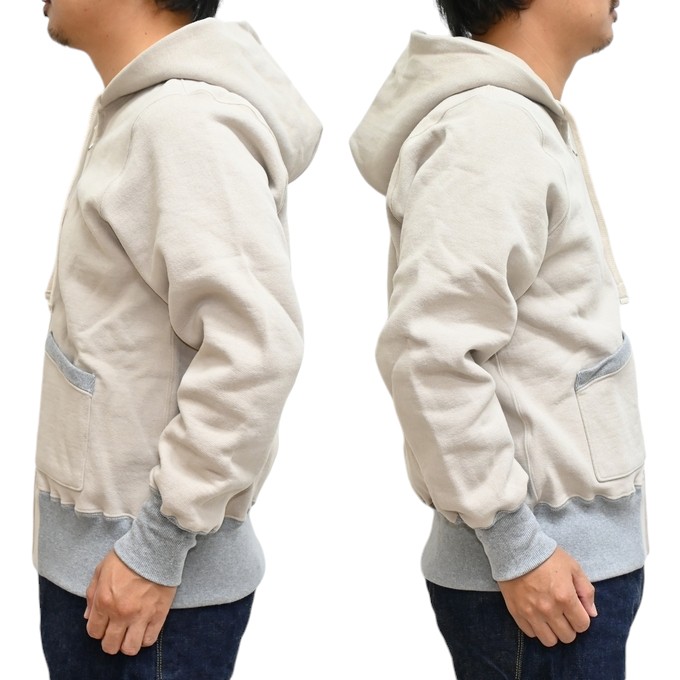 MCHILL SPORTS WEAR의 이름이 새겨진 헤비웨이트 브러시드 스웨트 후디. 본체는 빈티지 스웨트 셔츠를 본뜬 2 개 바늘 재봉틀로 꿰매어 착용과 세탁을 반복하는 것으로 질감이 늘어납니다. 후드는 양면이며 머리는 따뜻하게 유지됩니다.