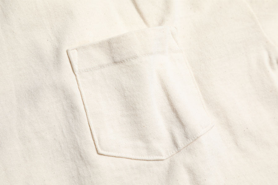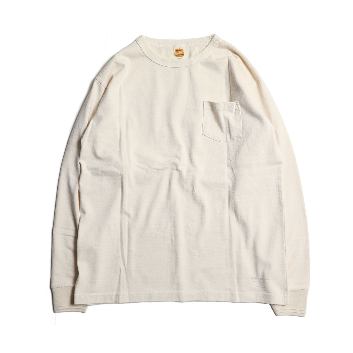 9.5oz 오리지널 천축 원단을 사용한 포켓 롱슬리브 티셔츠. 목 둘레는 내구성이 뛰어난 바인더넥 사양이며 소매 끝과 밑단은 더블 스티치 처리 되었습니다.