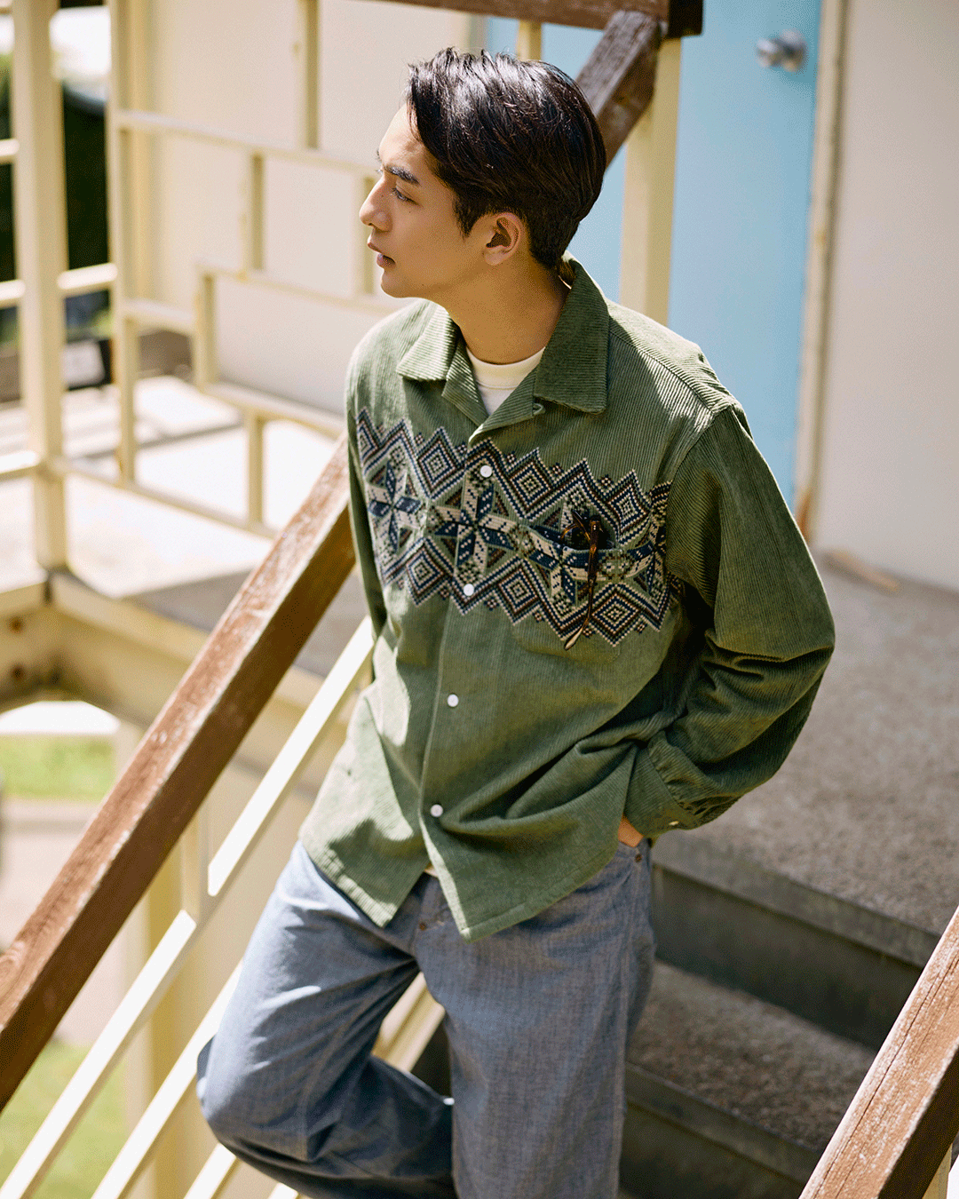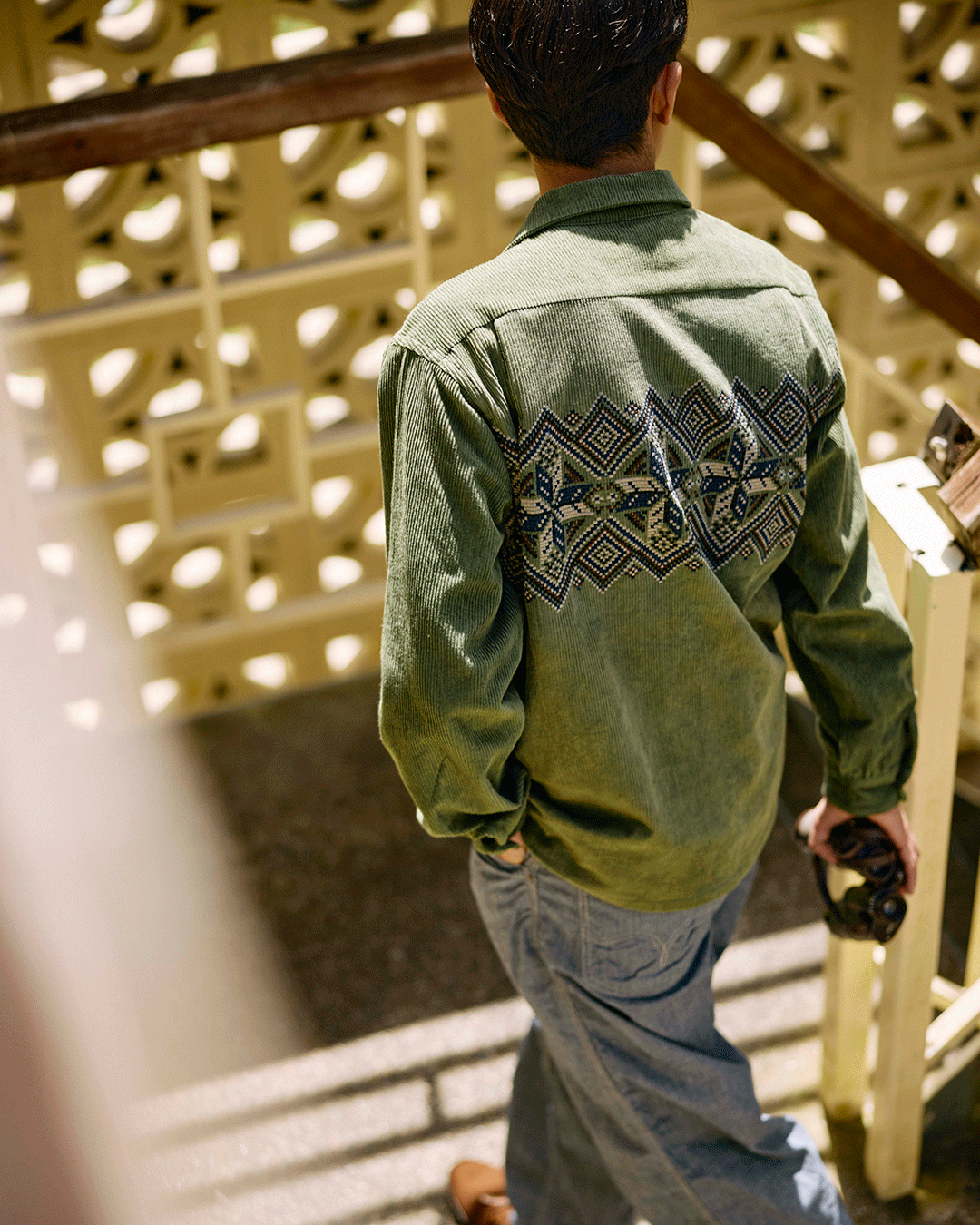 1950년대 프린트 코듀로이 셔츠를 기반으로 자수 디자인으로 재해석한 셔츠
