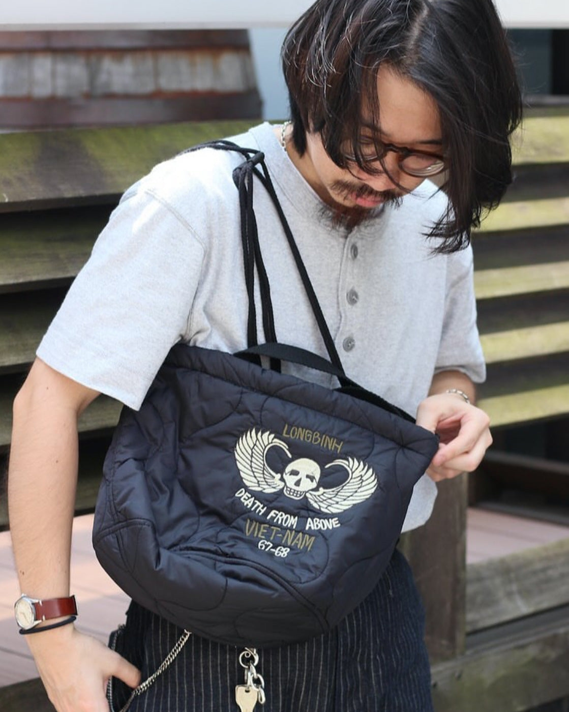 베트남 전쟁 중에 기념품으로 만들어진 재킷의 자수를 디자인에 도입했습니다.