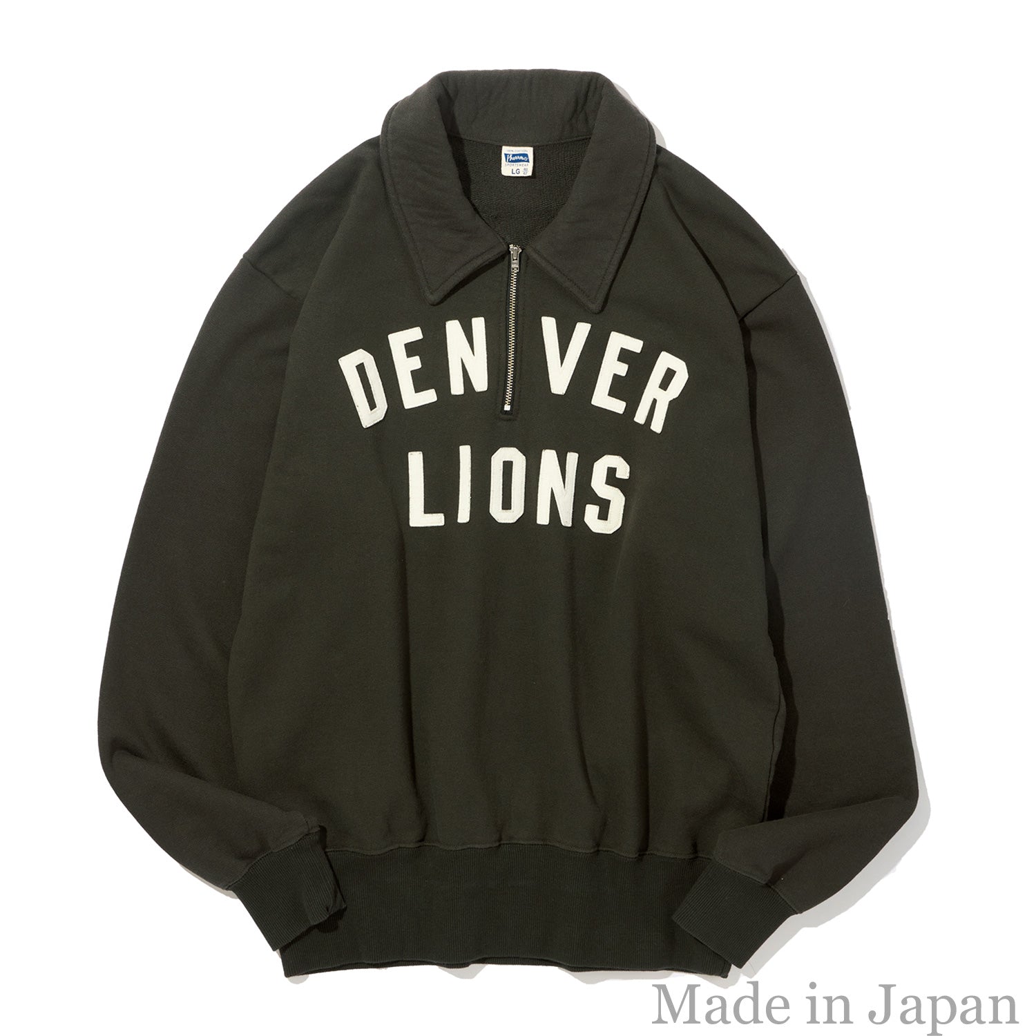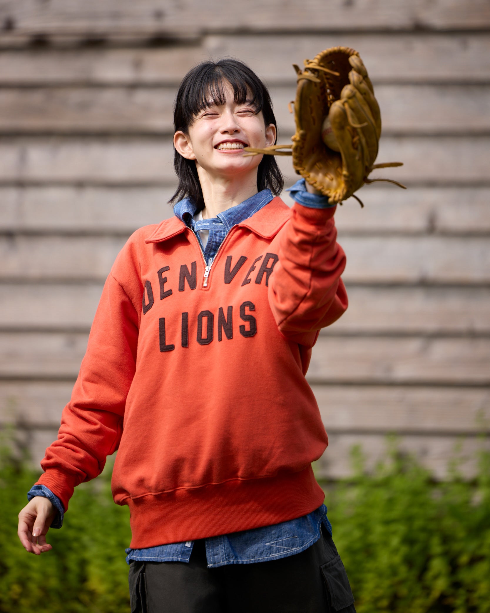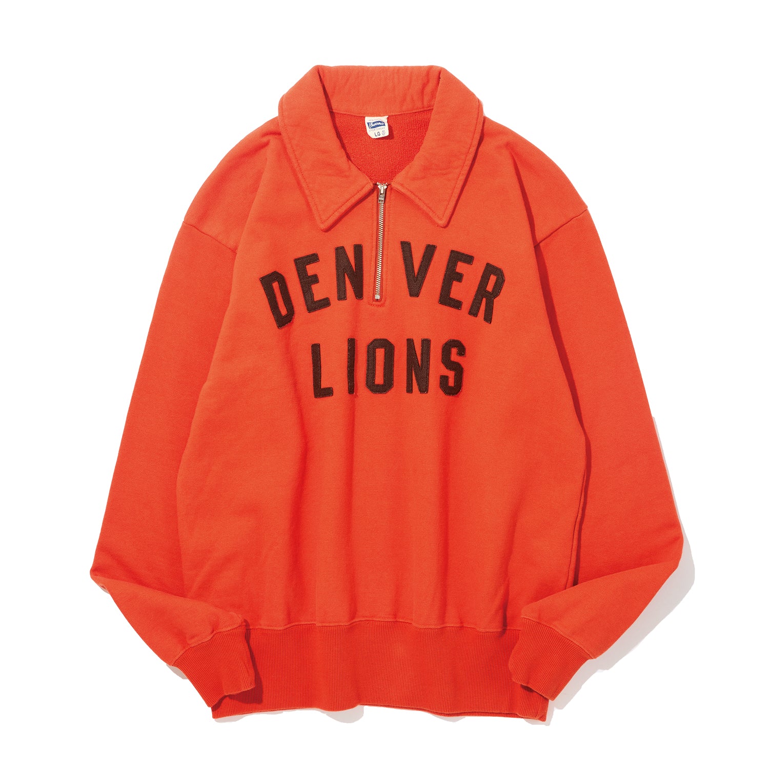 빈티지 특유의 분위기를 살리기 위해 넓은 칼라 형태와 길게 설정된 밑단 리브를 적용했습니다. 가슴에는 가상의 스포츠 클럽 DENVER LIONS의 아플리케 자수가 있습니다.