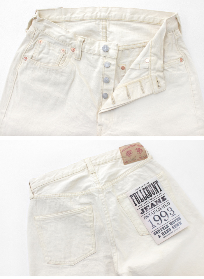 풀카운트 와이드 에크루 셀비지 데님 팬츠
