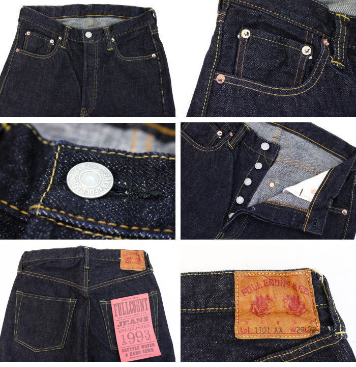 풀카운트 스탠다드 진 중에서도 백 실루엣으로 정평이 나있는 1101 모델입니다. 밑 위를 깊게 잡은 착용감과 실루엣이 특징입니다.