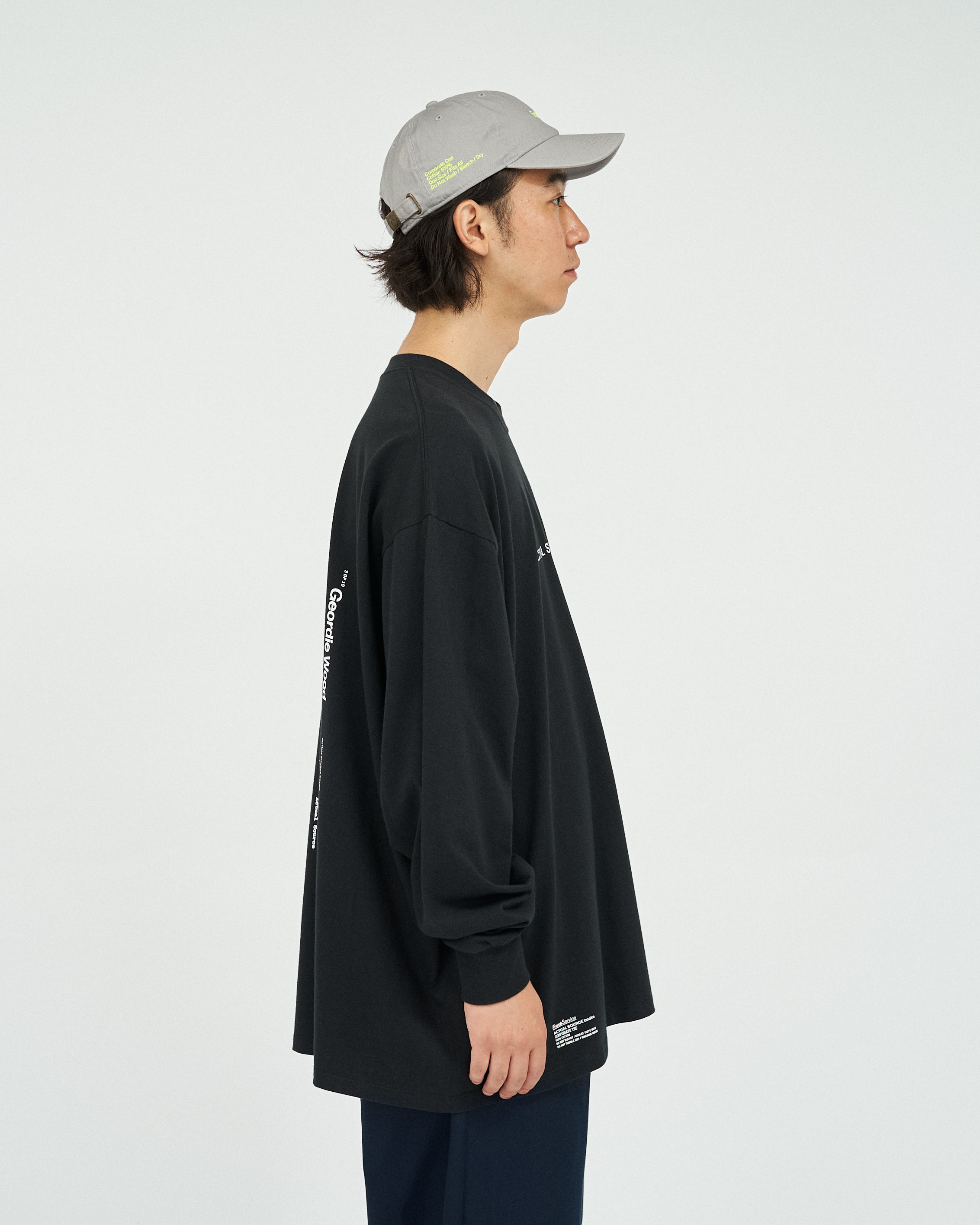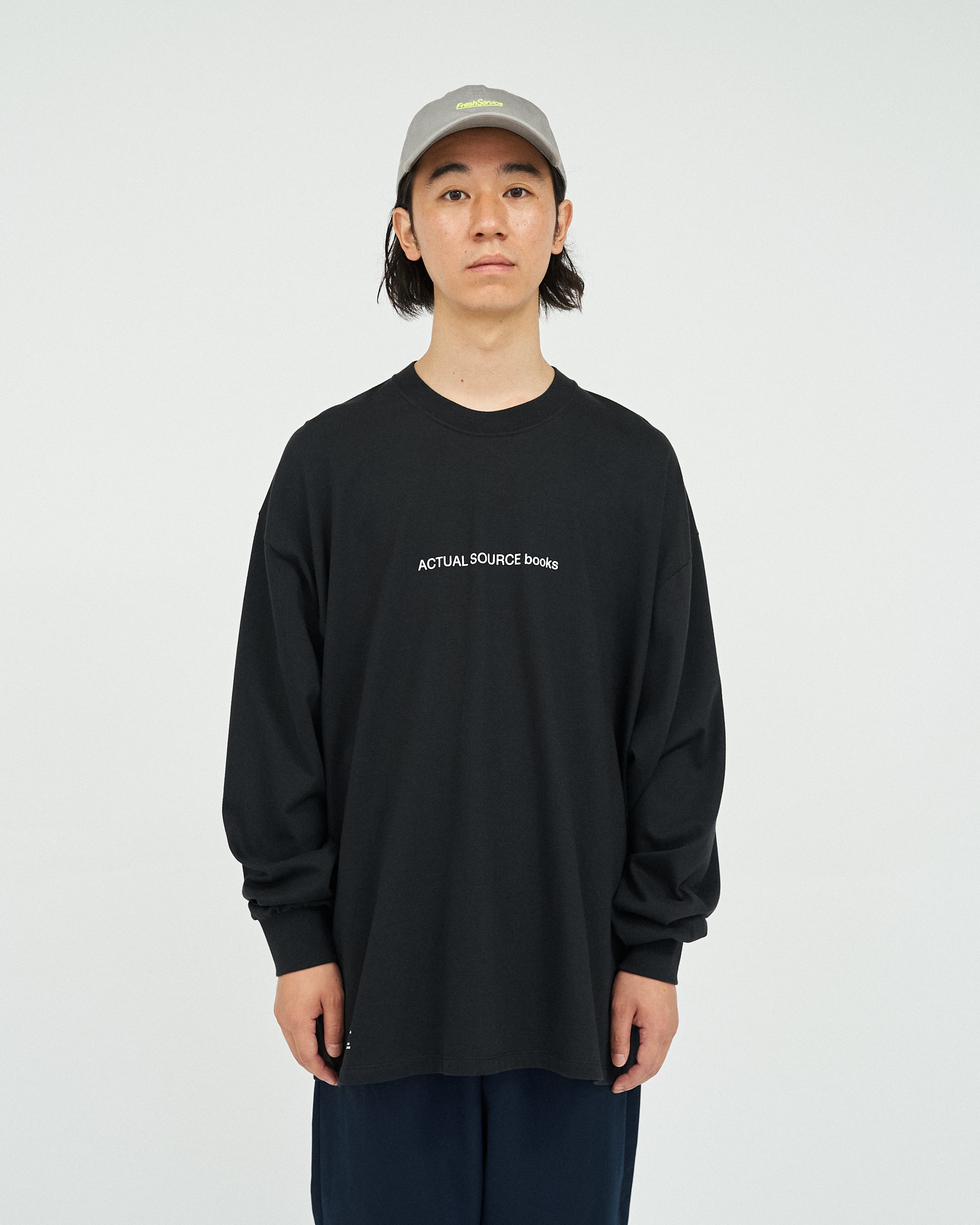 현대 아티스트와 디자이너들과 협업하며 출판물, 웹 디자인, 비주얼 제작부터 의류까지 다양한 영역을 다루는 디자인 스튜디오 “Actual Source” 와의 협업 컬렉션입니다. 드롭 숄더 디자인으로 여유로운 오버사이즈 실루엣입니다.