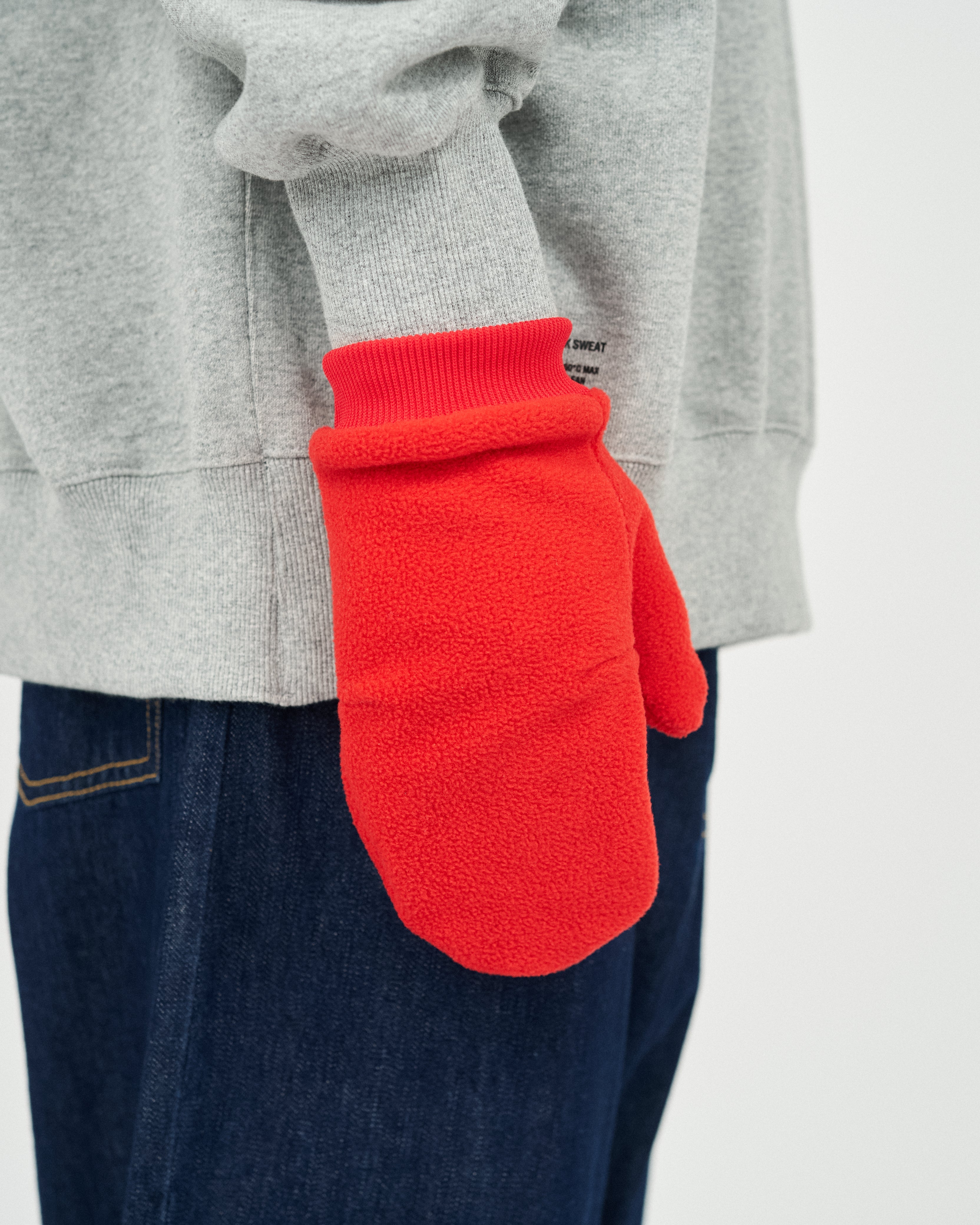 부드러운 마이크로 플리스 소재의 벙어리 장갑입니다. 좌우는 스냅 버튼으로 연결할 수 있어 분실을 방지할 수 있습니다. 상단은 접어서 손끝을 드러낼 수 있습니다.