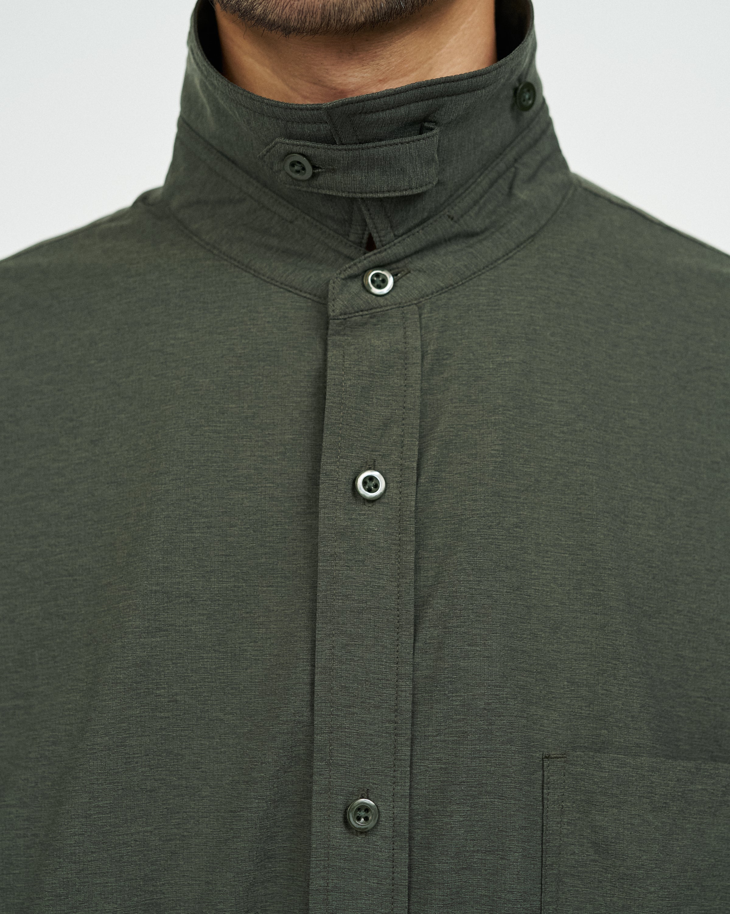 PERTEX® EQUILIBRIUM 소재를 사용한 테크 셔츠. 초경량, 속건성 소재를 사용하며 신축성 있는 메쉬 안감을 사용하여 움직임이 편안합니다. 앞면 허리 포켓, 스냅버튼의 플래킷이 있습니다.