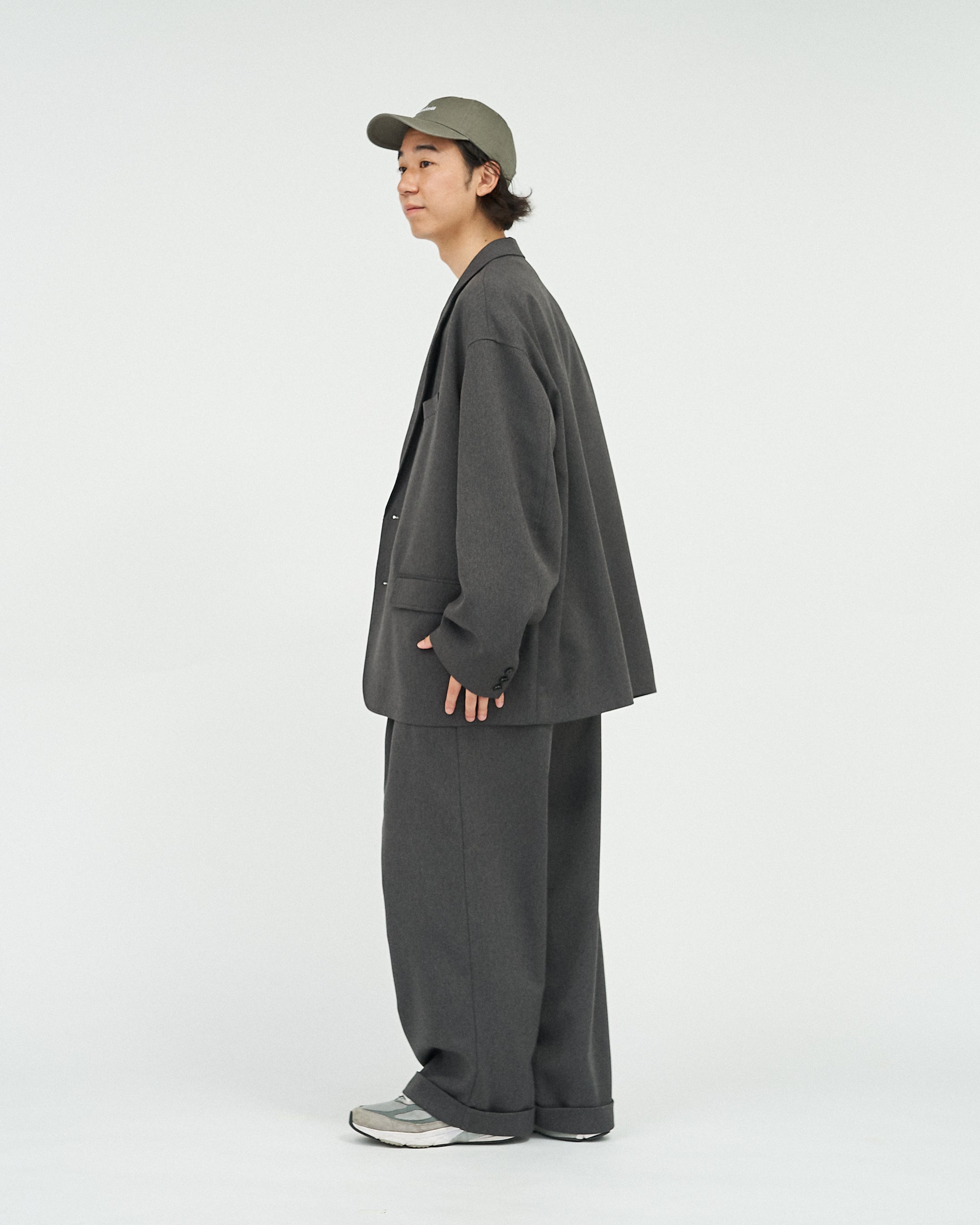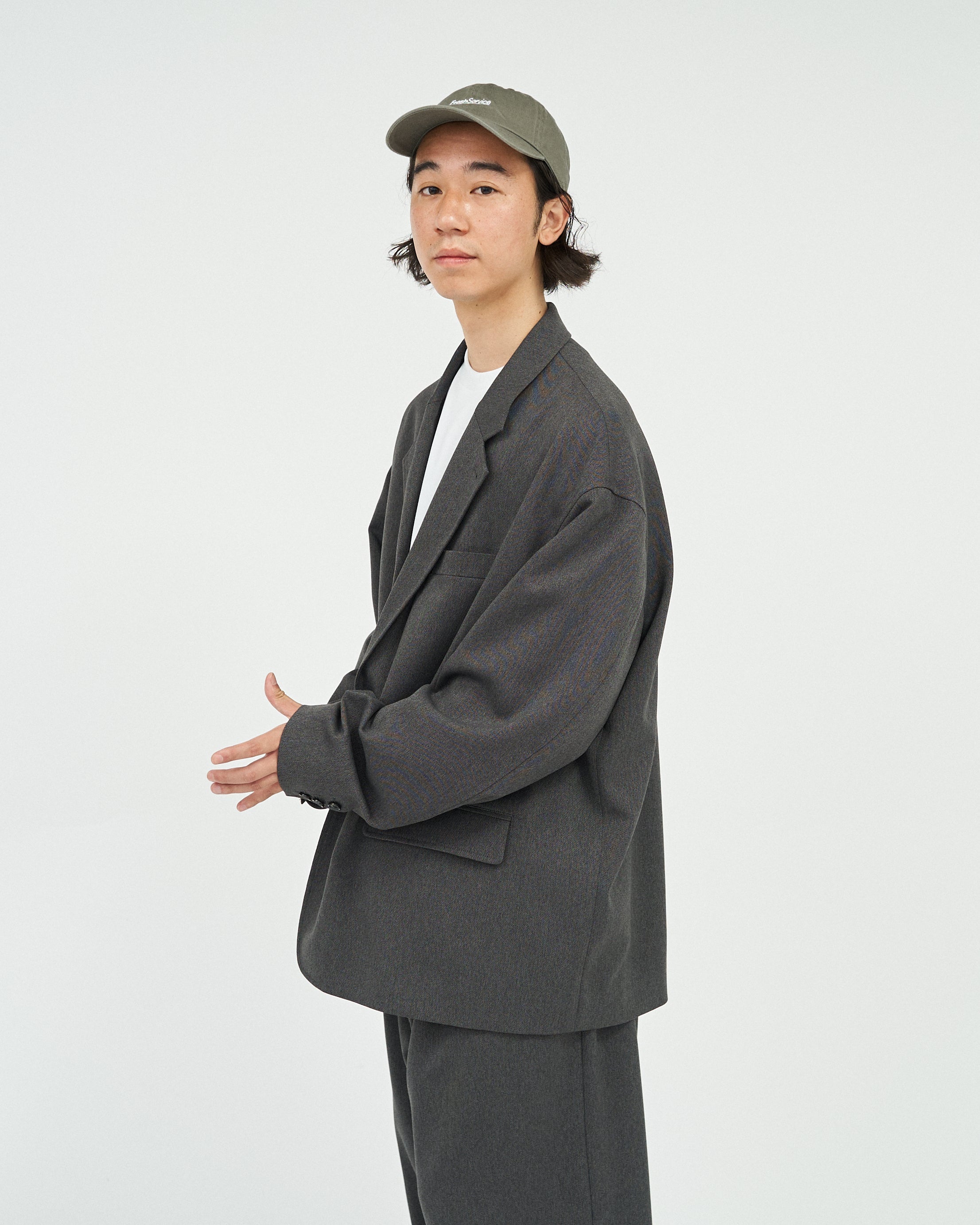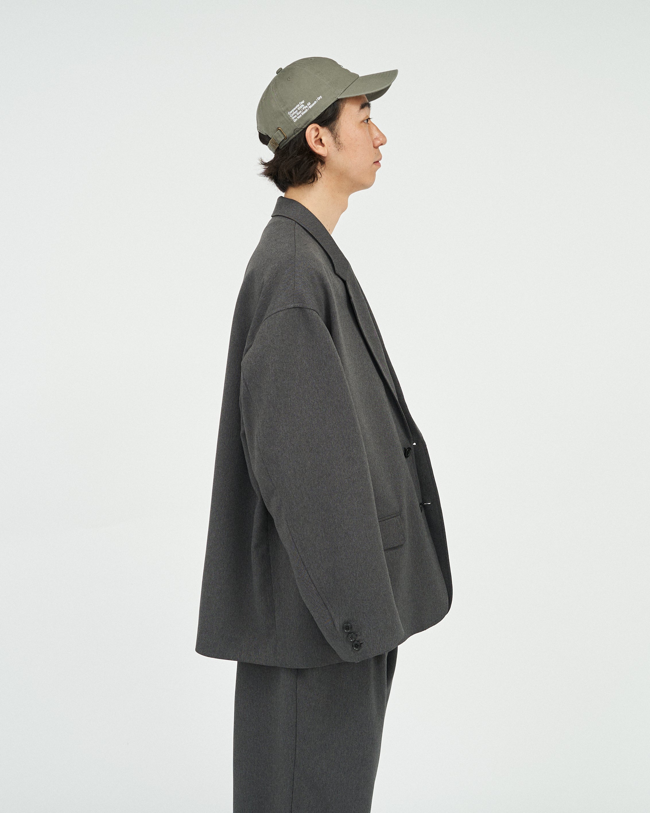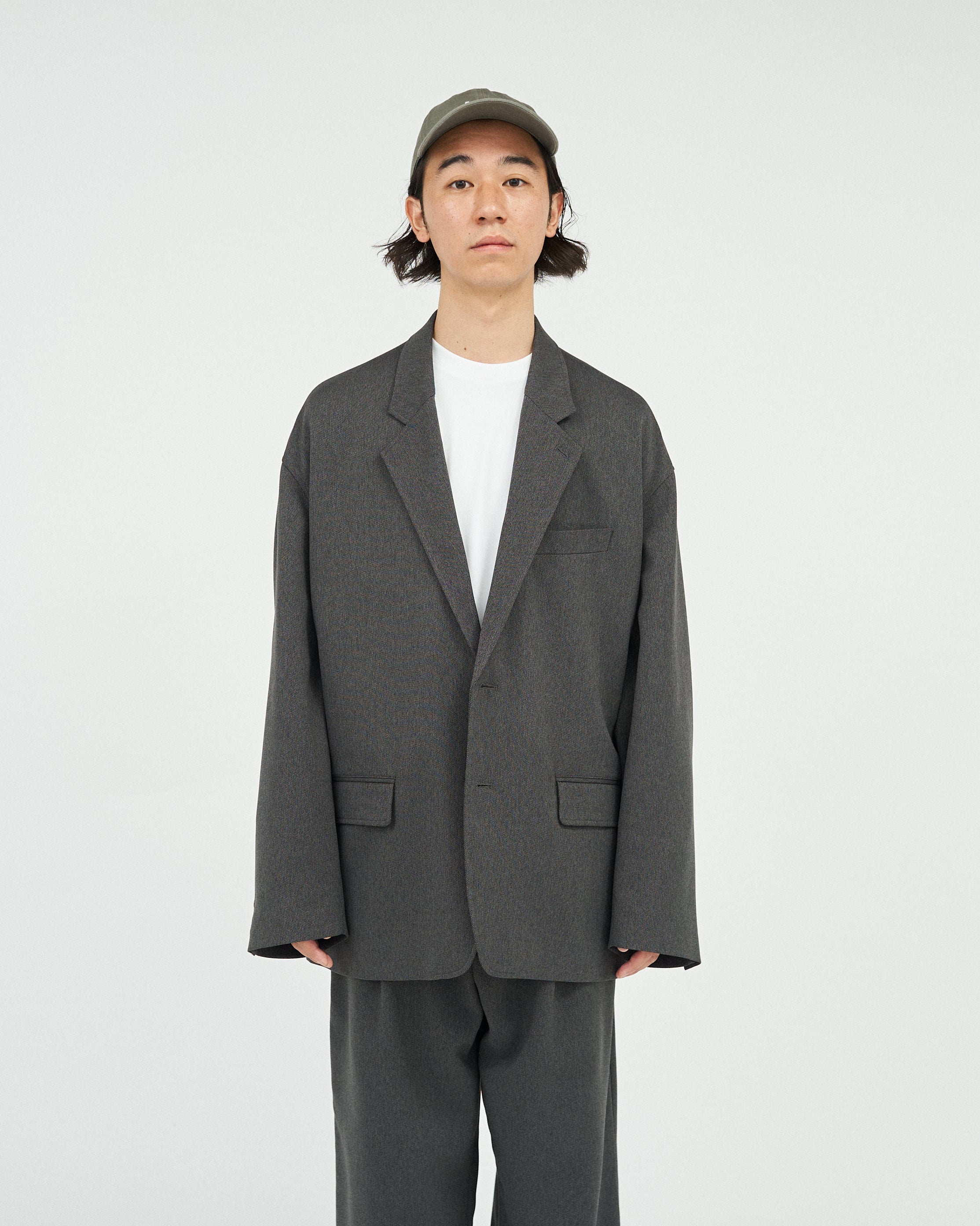 루즈한 실루엣의 테일러드 재킷. 안쪽에는 클래식한 안주머니 디테일이 더해졌습니다. 안감에 메쉬 소재를 사용하여 통기성이 뛰어나며, 울과 같은 질감을 가진 솔로텍스 풀플란 원단을 사용해 클래식함과 모던함이 조화를 이룬 한 벌입니다.