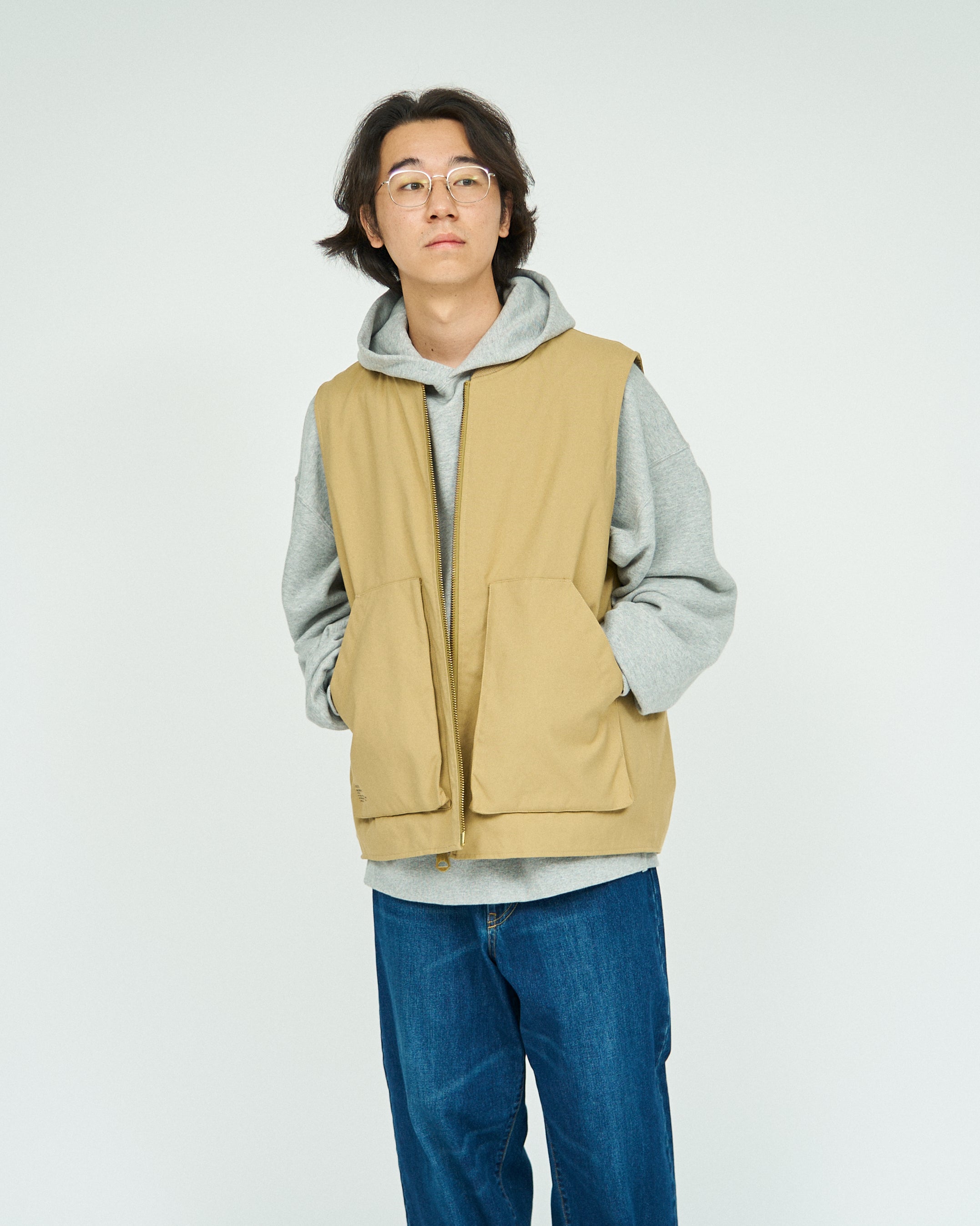 본체는 단면이 특수한 폴리에스터사로 만든 덕 소재로 제작되었으며, 드라이한 촉감과 합성섬유 느낌이 없는 면 같은 느낌이 있습니다. 뒷면에는 두꺼운 보어를 배치하여 촉감이 부드럽고 보온성이 뛰어나고 방한 기능도 뛰어납니다.