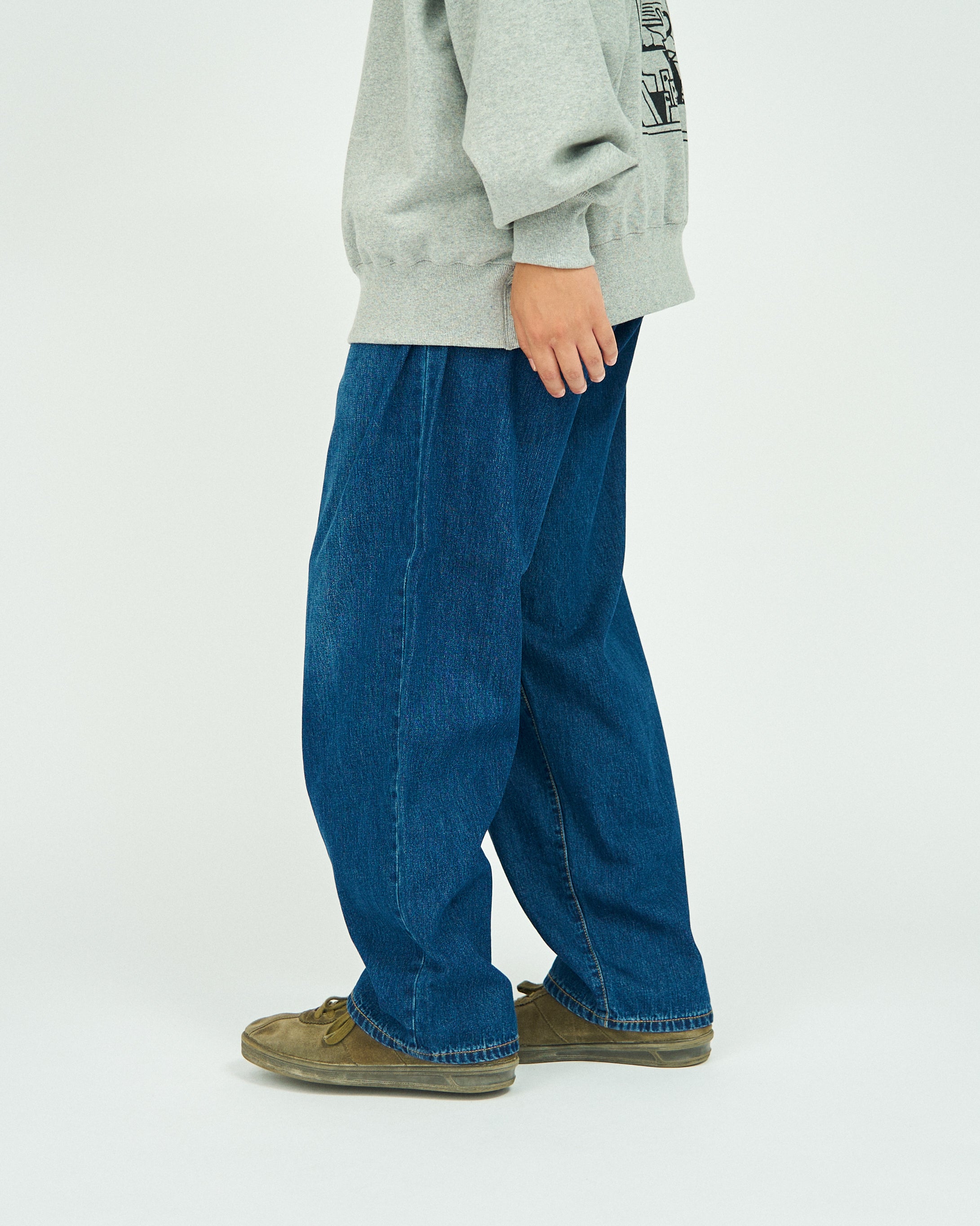 프레쉬서비스의 전형적인 디자인인 와이드 테이퍼드 실루엣의 5포켓 데님 팬츠. 볼륨감 있는 허 리 주위의 옷자락으로 갈수록 완만하게 가늘어지는 와이드 테이퍼드 실루엣은 개성적인 아이템에도 가을과 겨울 스타일에도 어울릴 수 있는 만능 아이템입니다.