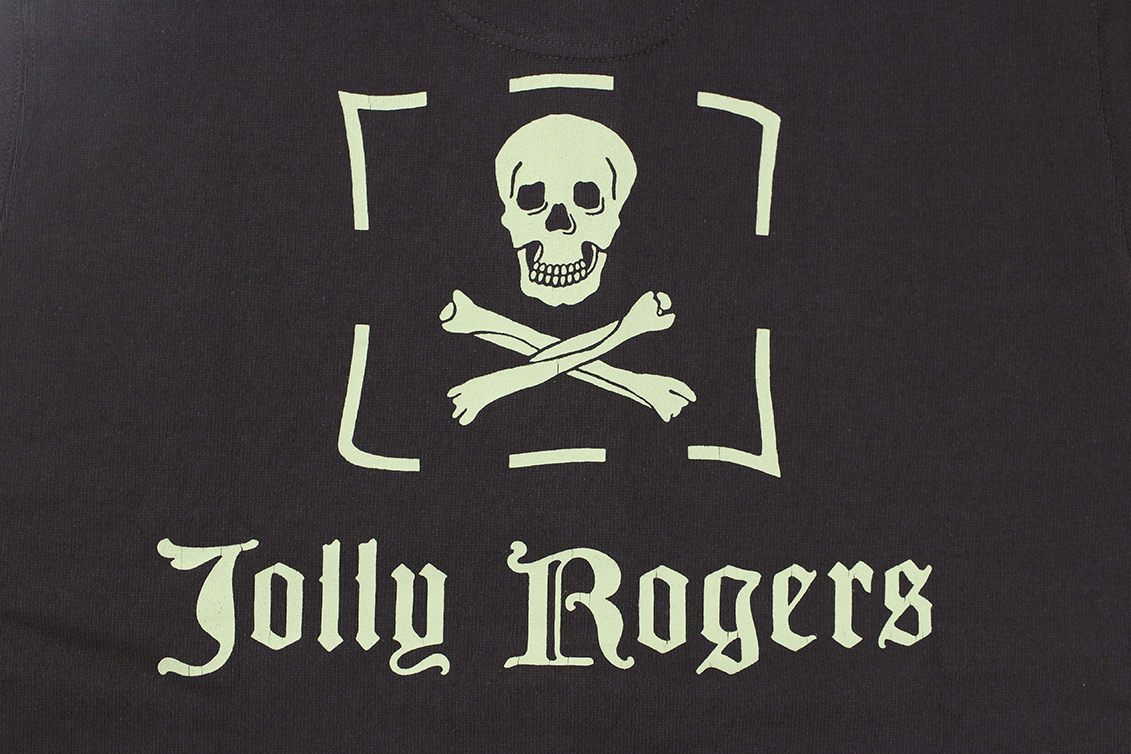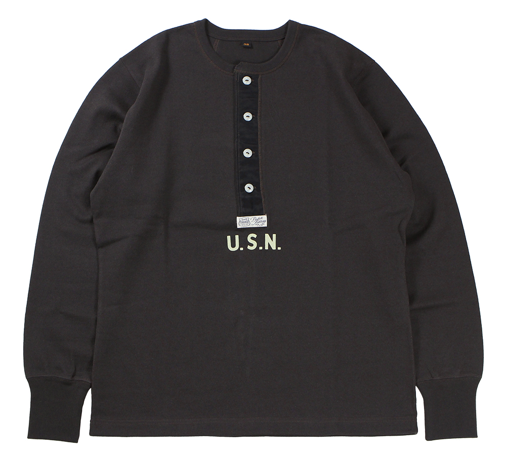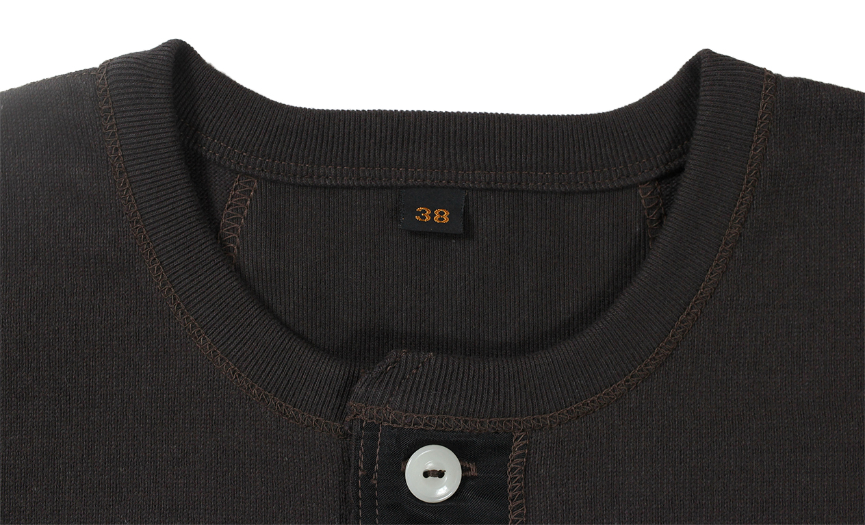 울퉁불퉁한 실을 사용한 넵 느낌의 헤비급 원단의 헨리넥 티. 프린팅은 균열이 발생하기 쉬운 고무 인쇄입니다.